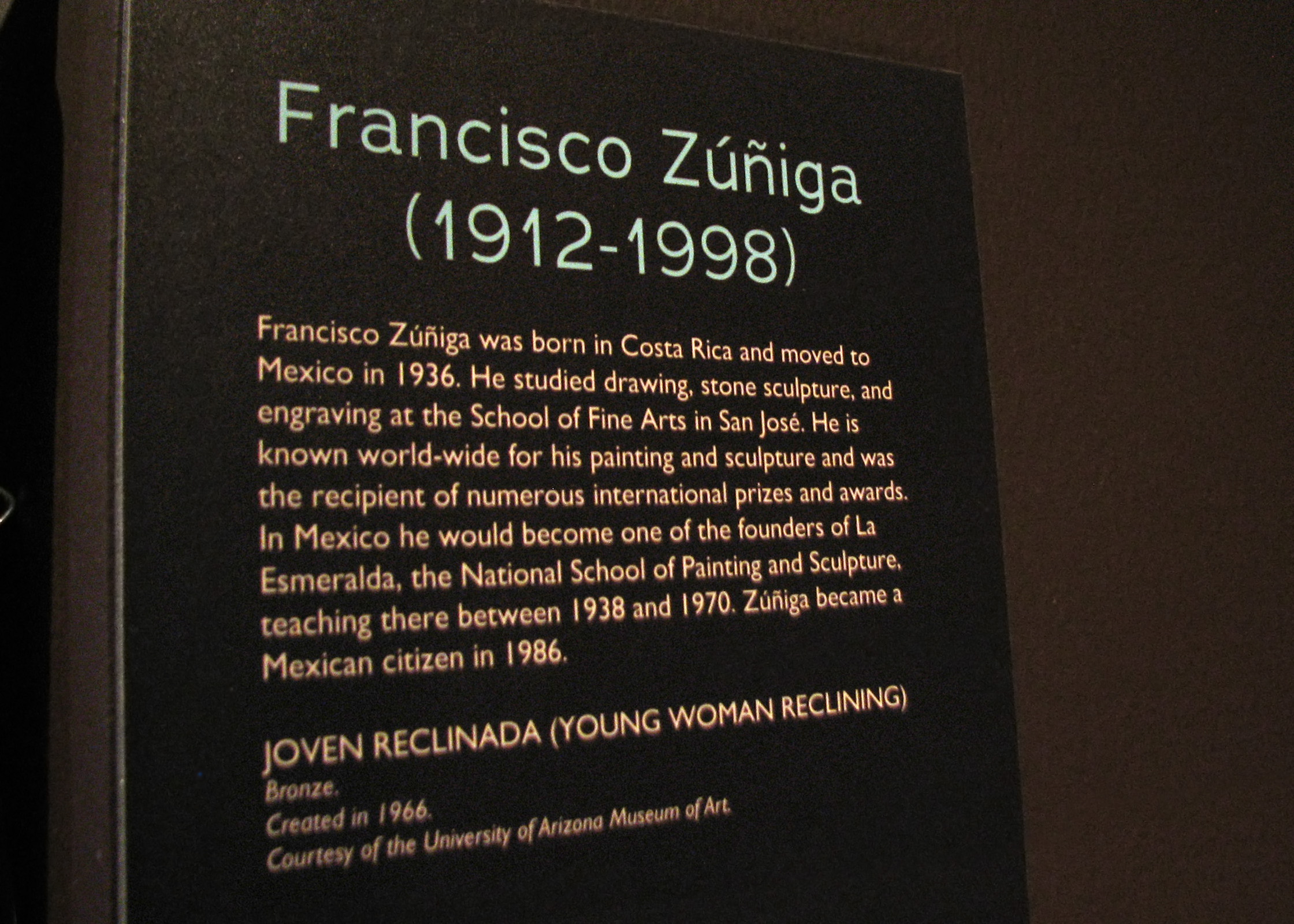 ![]() Francisco Zuniga (1912-1998) Joven Reclinada (Young Woman Reclining) Bronze, created in 1966 At Arizona State Museum, "Courtesy of the University of Arizona Museum of Art"