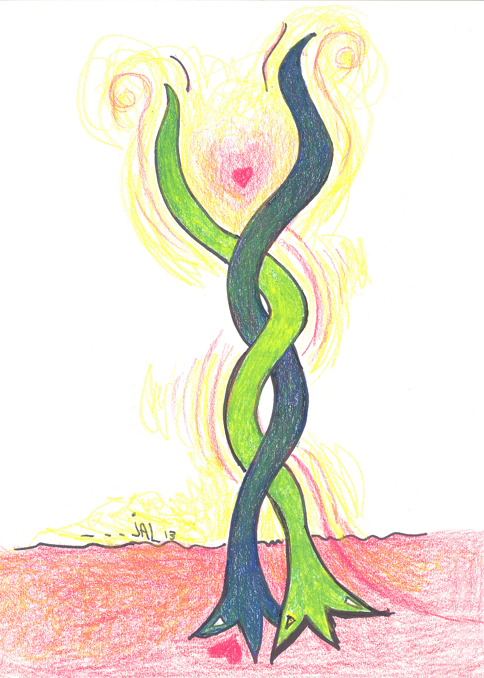 | I went to bed relatively early, but found myself restless. I decided to siphon off some of that restless mental energy into an intuitive drawing: |