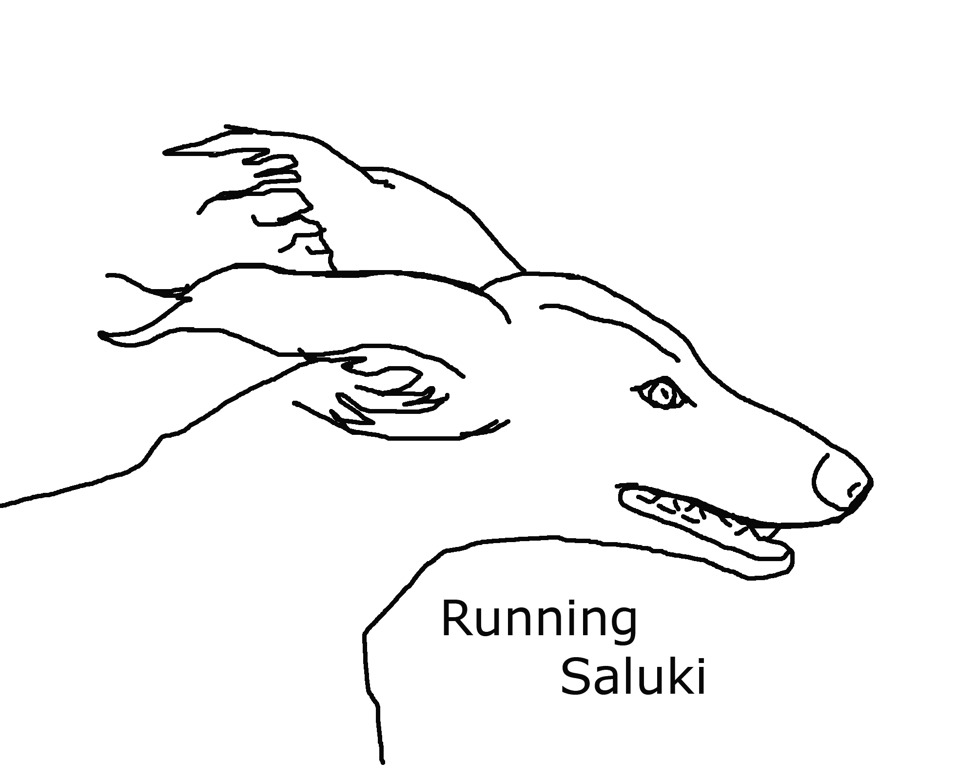 I tried to balance the realistic saluki with the stylized. Noting the upturned tail is often curved, I made it curved.