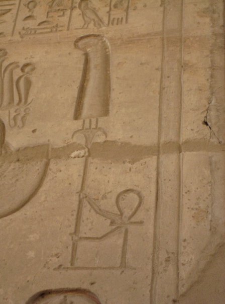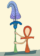 I've taken the example of personified ankh holding the feather of Ma'at, (who represents truth, justice and balance) from the one at the Ramesseum, photo by Hans Kontkanen, and flipped it to get a symmetrical view. (And, yes, I suppose I could of written the year number using hieroglyphs, but the year number is not one the ancient Egyptians would have recognized. Perhaps 'year six of the reign of Obama', except that he's not that sort of ruler, and....) So viola, the 'Roman' numerals! I liked the colors of my first adaptation of this, which I'd colored digitally, and which later went into the creation of a mandala. ![]()