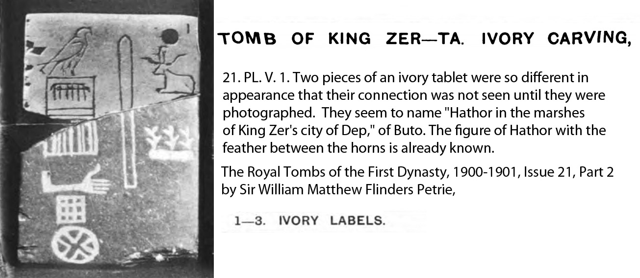 As a further thing to add to the mystery, First Dynasty King Djer had an ivory tablet of which Petrie wrote about and shared a photo: