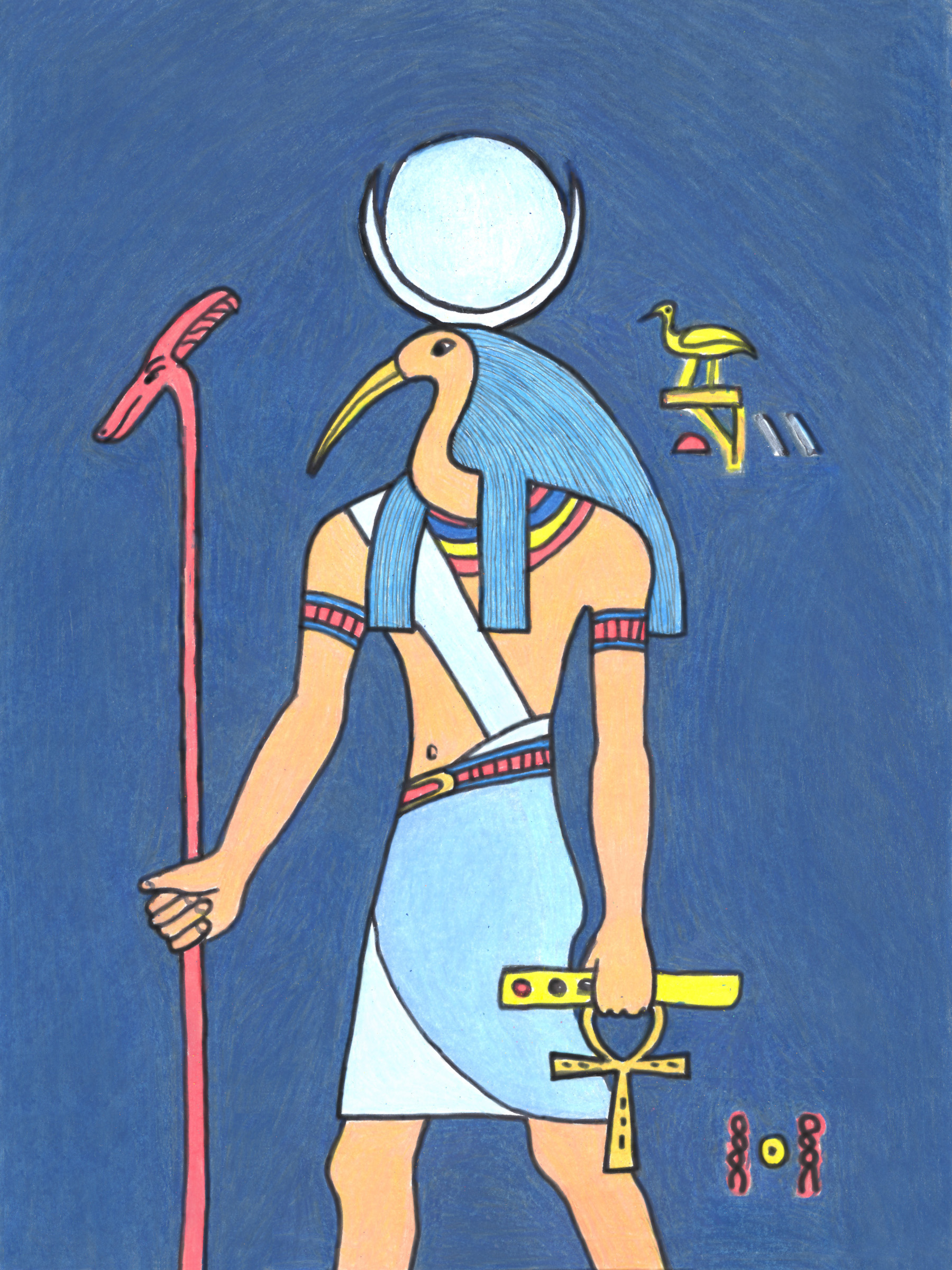Saturday, July 5, 2015 Colorful Thoth 7:19pm I got my line drawing of Thoth colored! And just because I can, a version facing the other way!