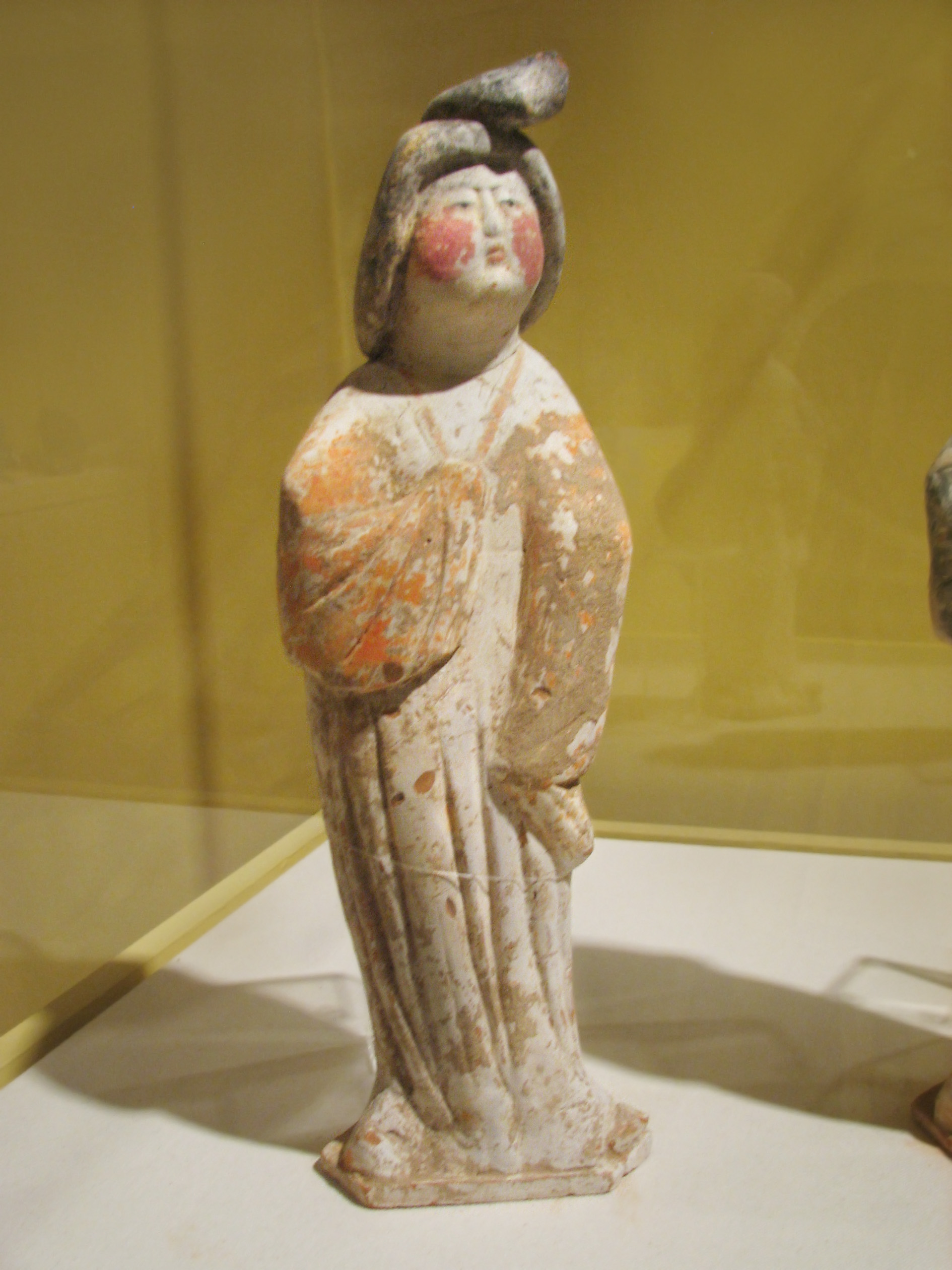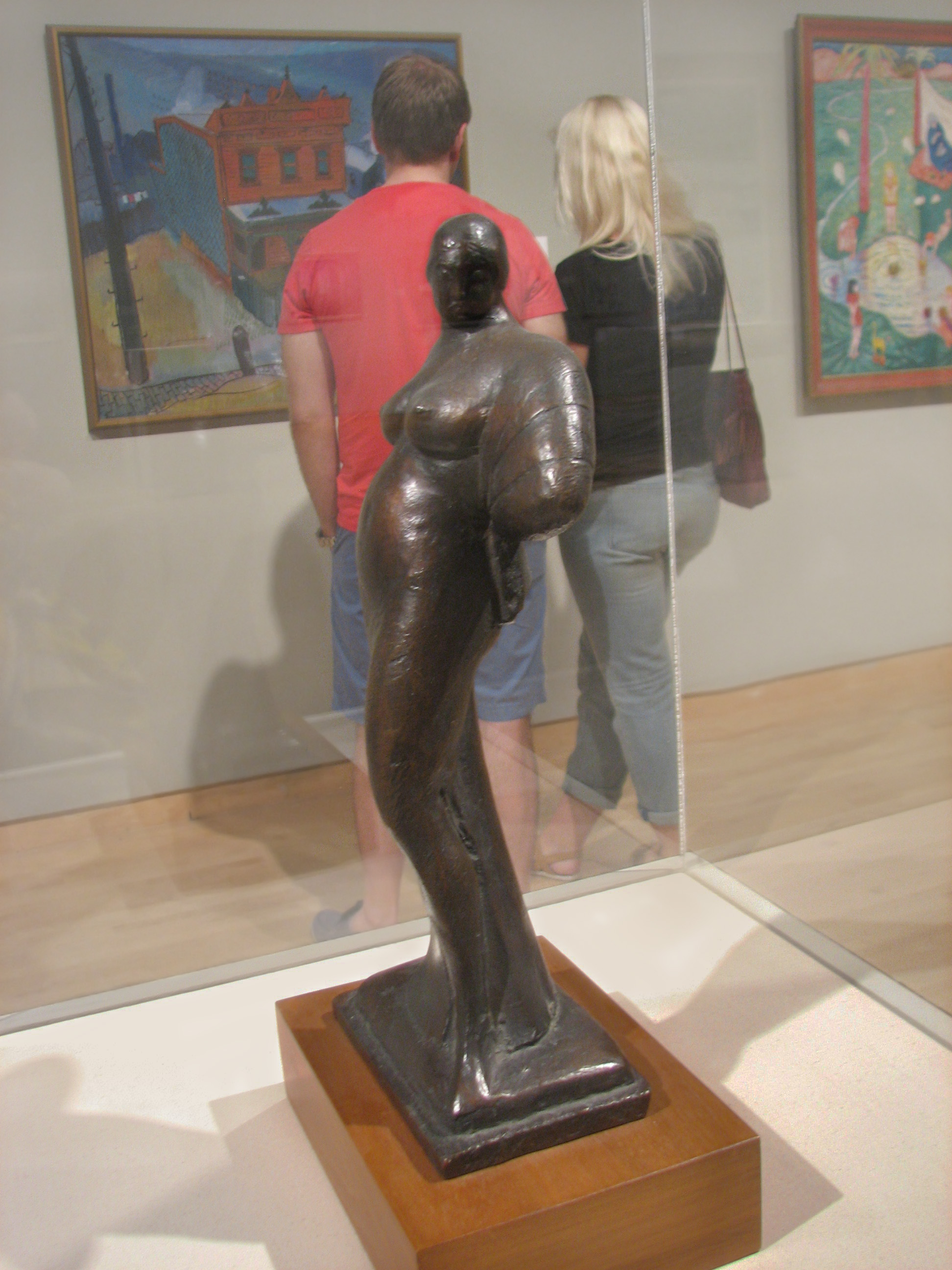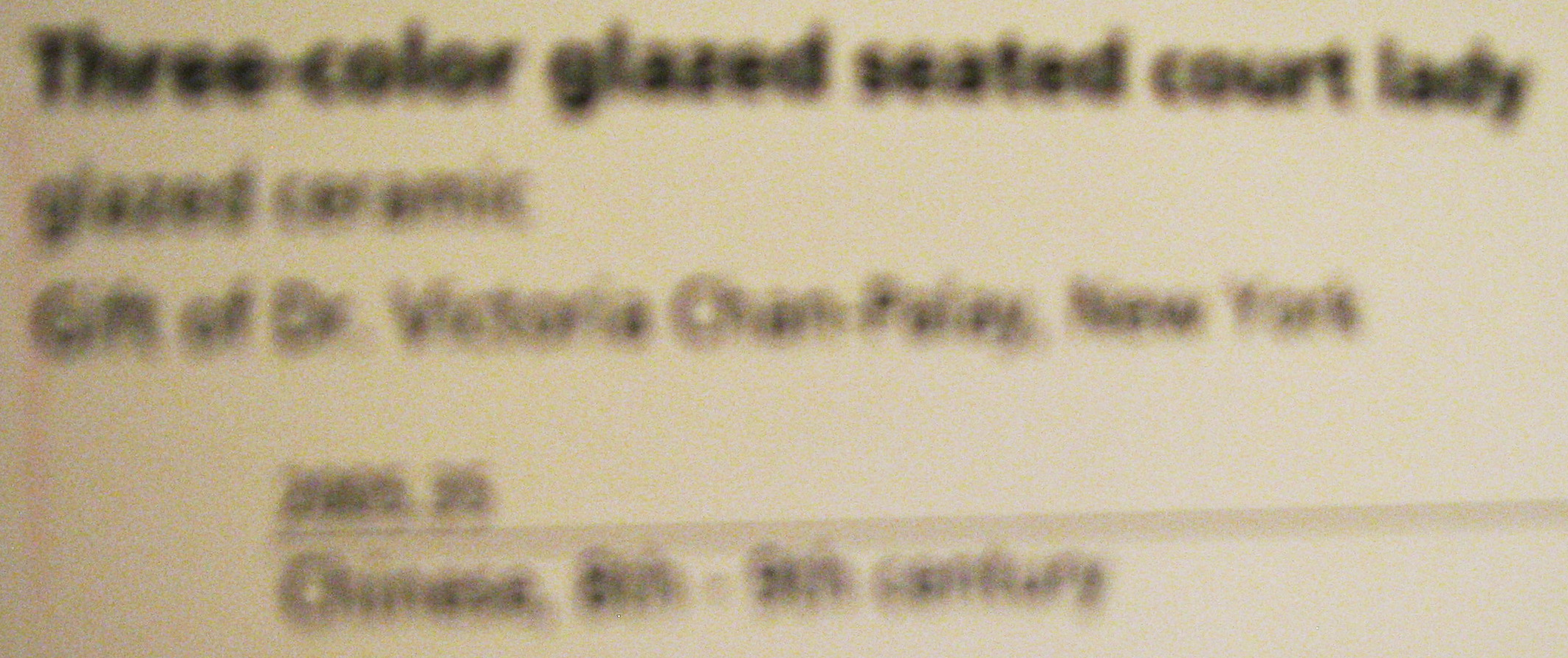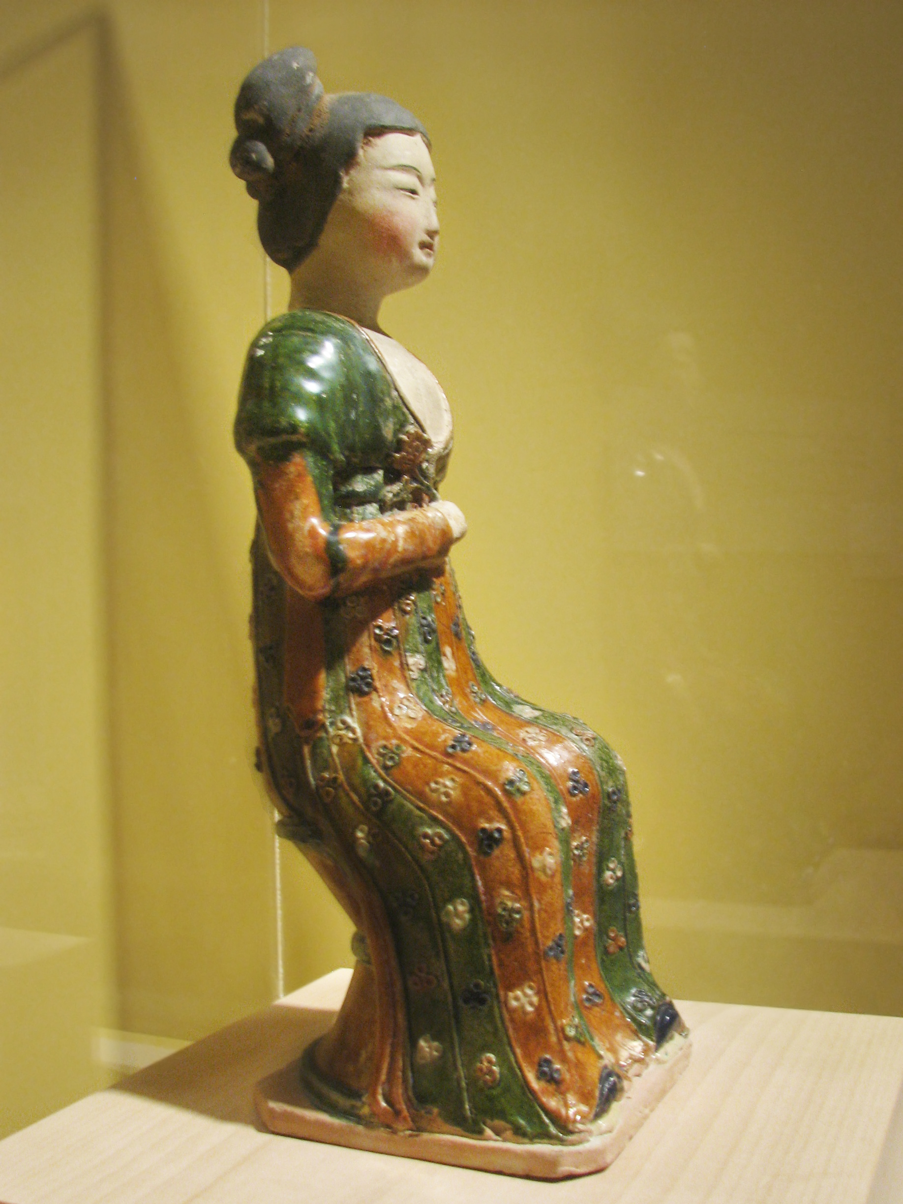 "The term 'fat lady' is used in both Chinese and English to identify this kind of sculpture. In the imperial Chinese capital of the Tang dynasty, the standard of feminine beauty changed between the seventh century and the eighth century. Emperor Tang Xuanzhong (r. 712-755) became extraordinarily infatuated with one of his concubines, Yang Guifei. She was reknown for her voluptious beauty. His subsequent neglect of political affairs led to the An Lushan revolt and his forced suicide, for which she was partially blamed." (From info card). But until that debacle, "Yang Guifei set the style for feminine beauty of her time." Gaston Lachaise's sculpture of his favorite plump model had Julia and I each aping her pose (I really should have taken photos of that).