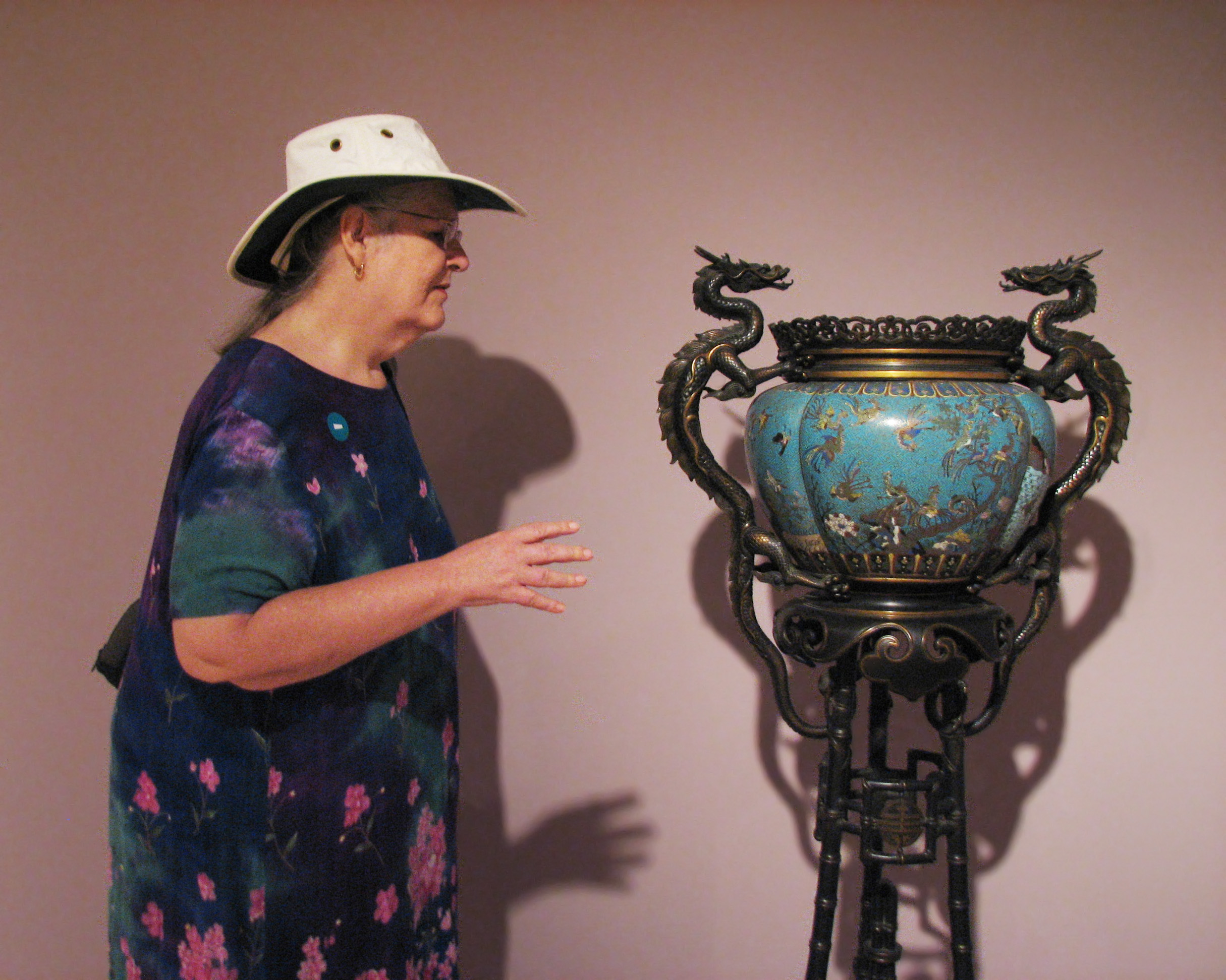 While I wish I had snapped Julia with this statue, I did capture her with a huge cloissonné vase: