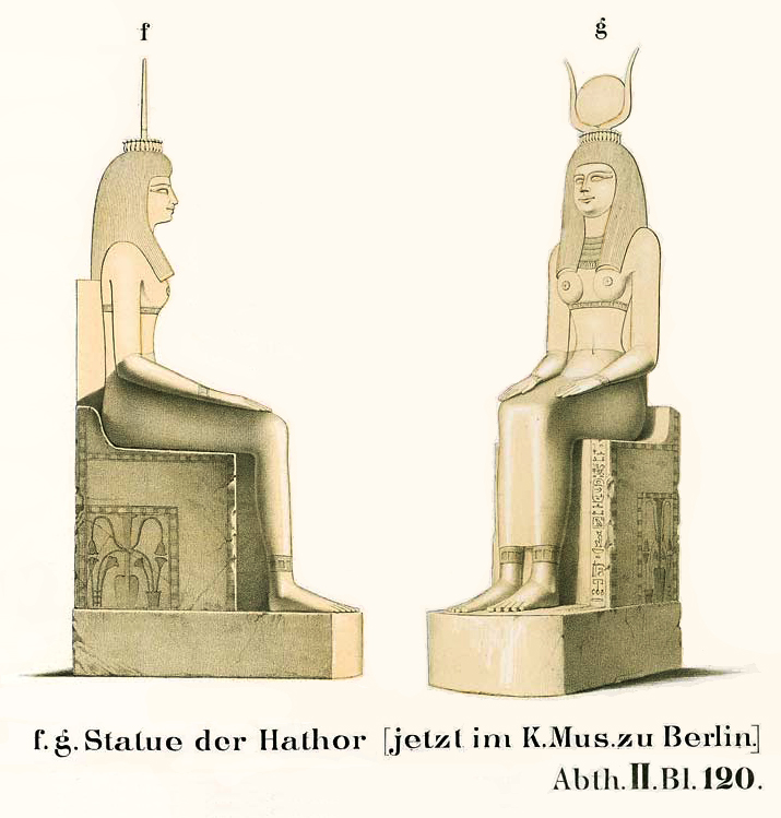 It's too bad I can't make out the details on the cartouche. Despite my best efforts, I couldn't find a modern photo of this piece. Thus I fear it may have succumbed during World War II. "The second World War had dire consequences for the collection. The 'Neues Museum' was much damaged and many objects were burned." (Source: http://www.egyptian-museum-berlin.com/c01.php) |