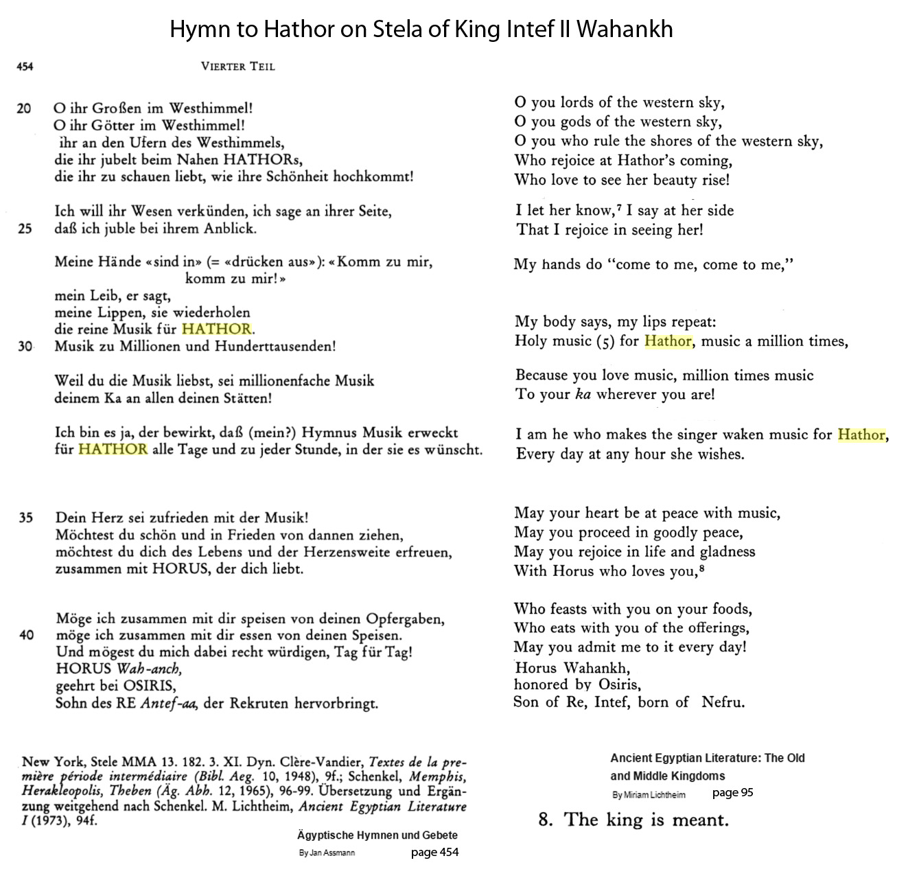 Oh you lords of the western sky, Oh you gods of the western sky, Oh you who rule the shores of the western sky, Who rejoice at Hathor's coming, Who love to see her beauty rise! I let her know, I say at her side That I rejoice in seeing her!