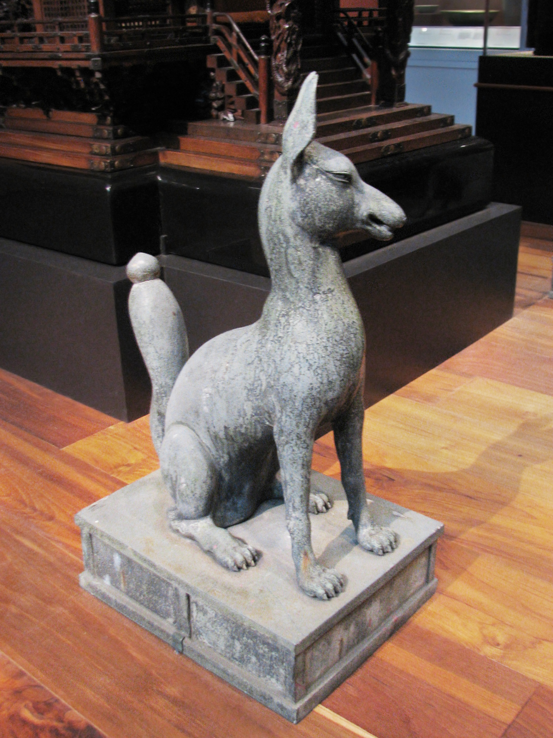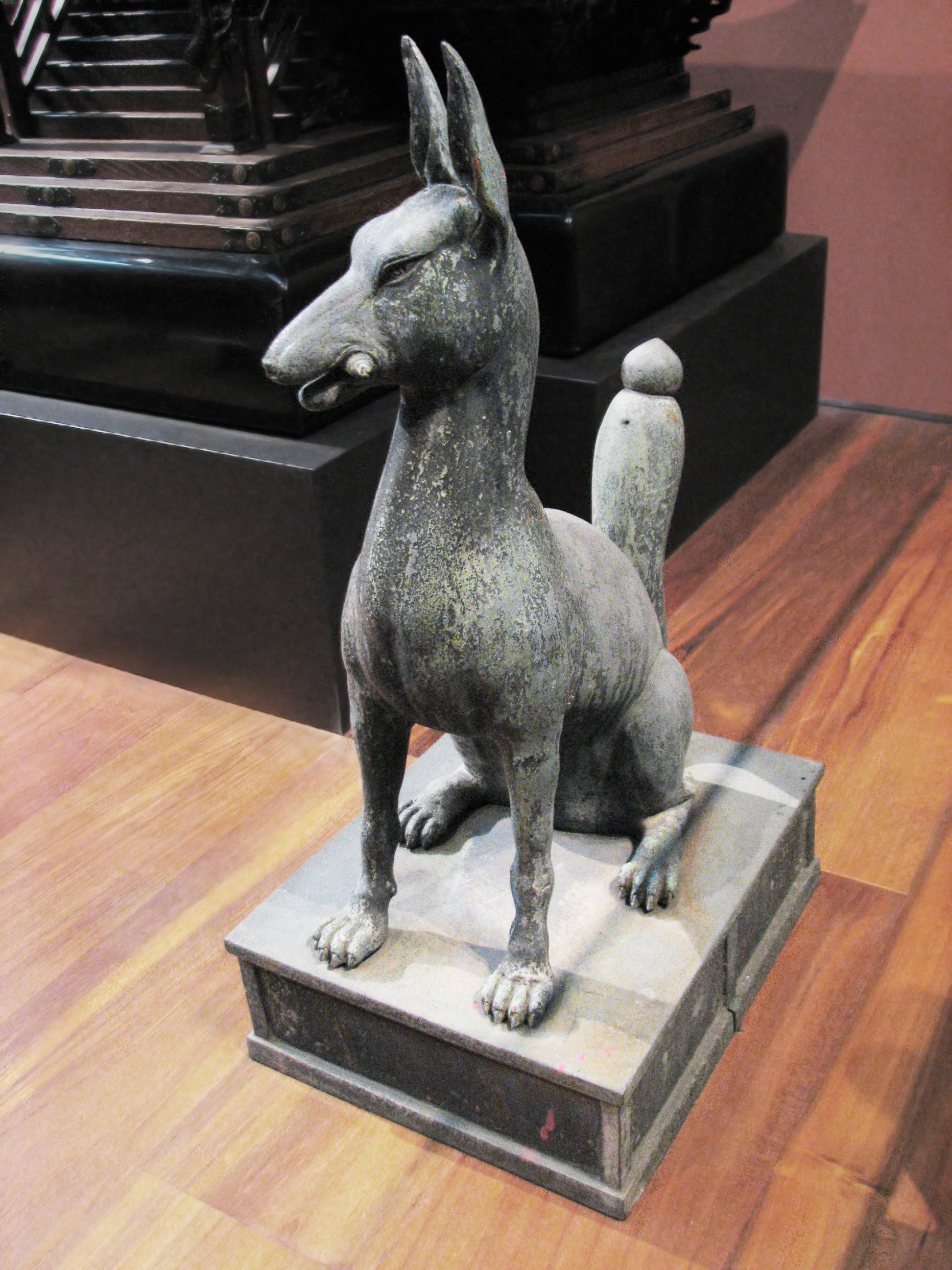 Two Shinto Shrine Foxes, 1912-1926 Shirai Nobutaro, Japanese, active early 20th century Bronze, 19 in. x 8 5/8 in. x 10 5/8 in. (48.26 cm x 21.91 cm x 26.99 cm) San Diego Museum, Accession Number: 2001.10.1 and .2 Museum purchase with funds provided by the Barbara and William Karatz Fund in memory of Barbara L. Karatz |
