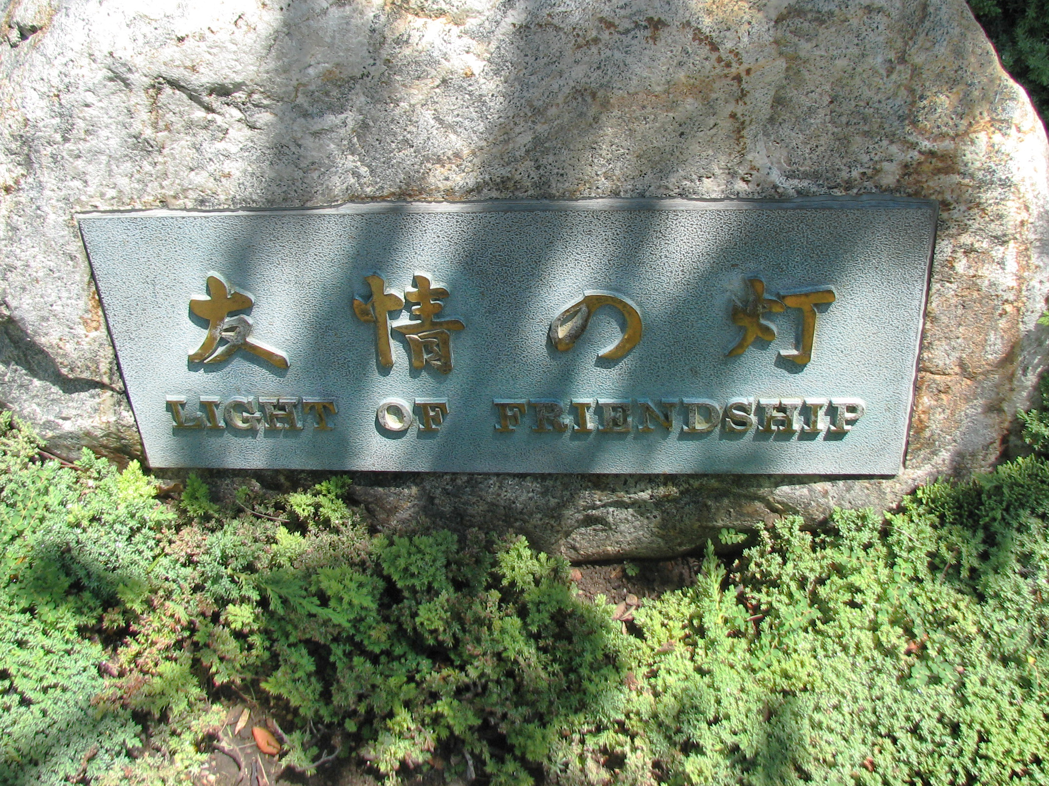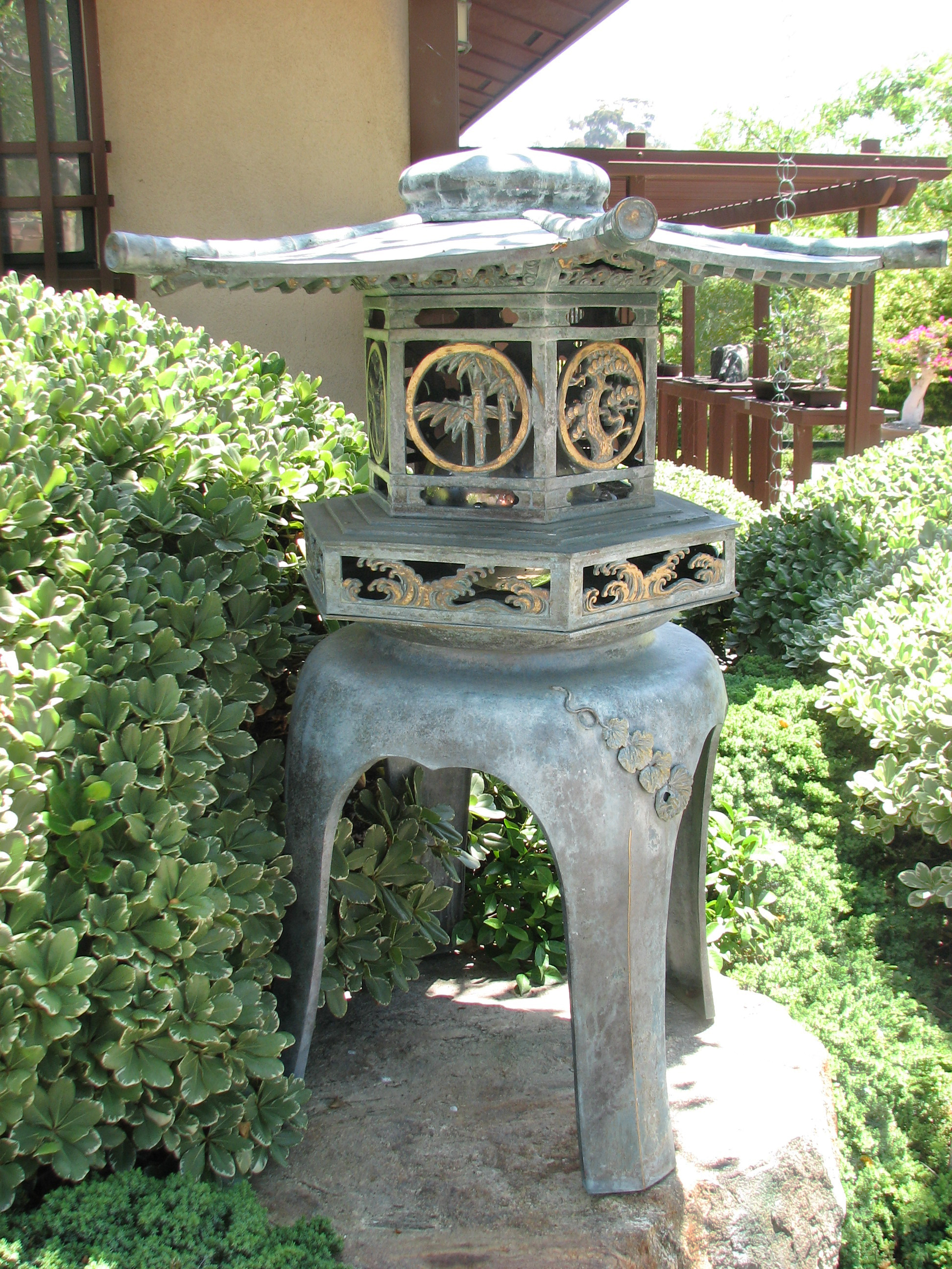 ![]() In 1955, interested citizens of San Diego gathered, and formulated a plan for restoring a Japanese garden in Balboa Park on an expanded site. In response, the City of Yokohama presented the City of San Diego with a lantern in 1956. This gift from the Boy Scouts and citizens of Yokohama is a symbol of continued friendship between the two cities, and thus is called "Light of Friendship". The chrome sphere inside the lantern contains the names of the people who helped send the gift to San Diego. The bronze lantern, called "yukidoro", has the typical broad roof of the snow lantern. (Sources, Wikipedia and Garden website)