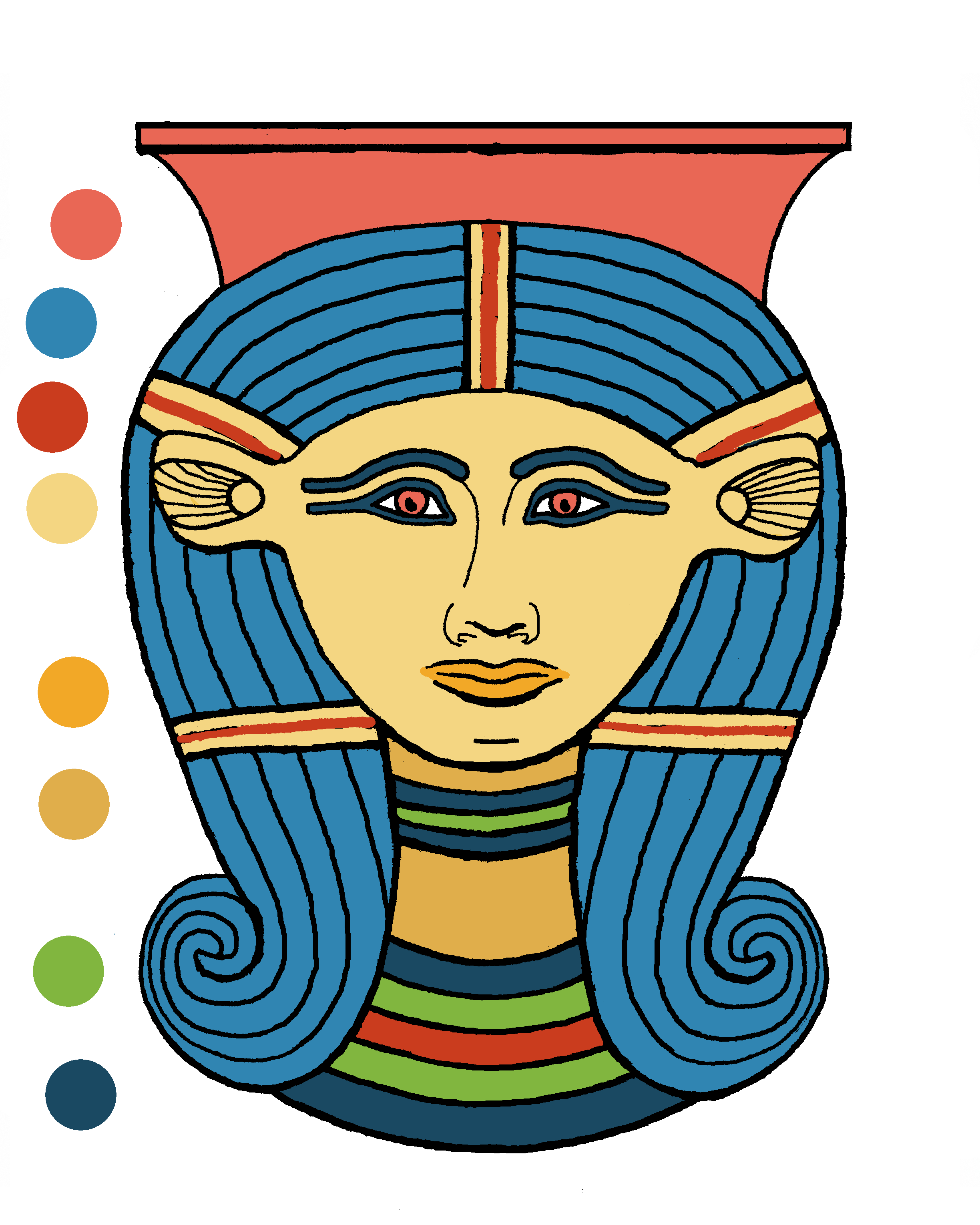 Although I did finish the color block border, otherwise I haven't made much progress on the Wepwawet needle point. That doesn't stop me from thinking to the next piece. I may possibly adapt this drawing for a needlepoint design. In addition to simplifying it a bit, I've also fixed the too skinny neck. It will print to 8x10 inches or you can keep it 8.5x11 inches. (October 22, 2016)
