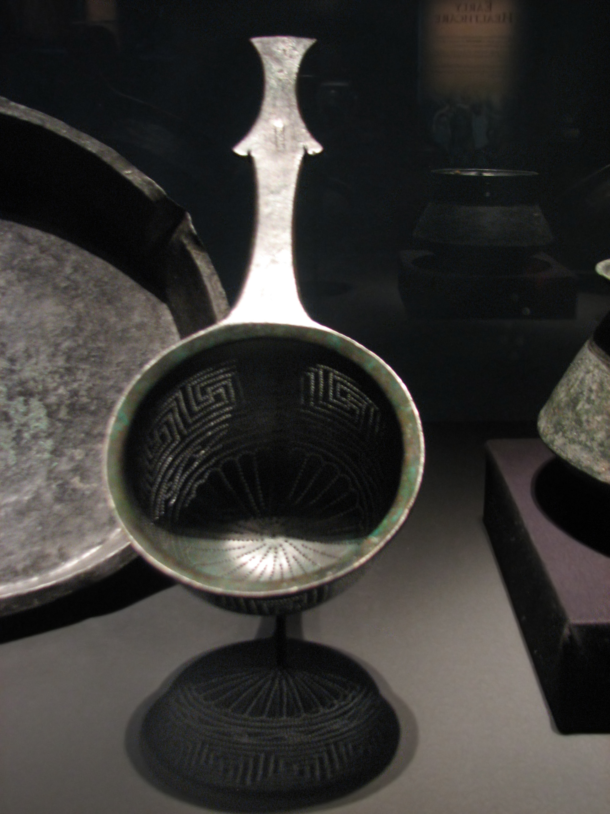 (From the info card): "Two busts, one male and one female, were found together at the House of the Citharist and likely portray the owners of the house, belonging to one of the oldest and most influential families in Pompeii. We cannot be sure whether this couple was still alive when this portrait was displayed in the atrium, but we do know that it would have been important to be lifelike. Roman portraits were made for reflection, and sculptors were to capture a person's character." They really showed how the people lived. Their cookware, even colanders, looked so similar to ours, except for more elaborately designed holes: