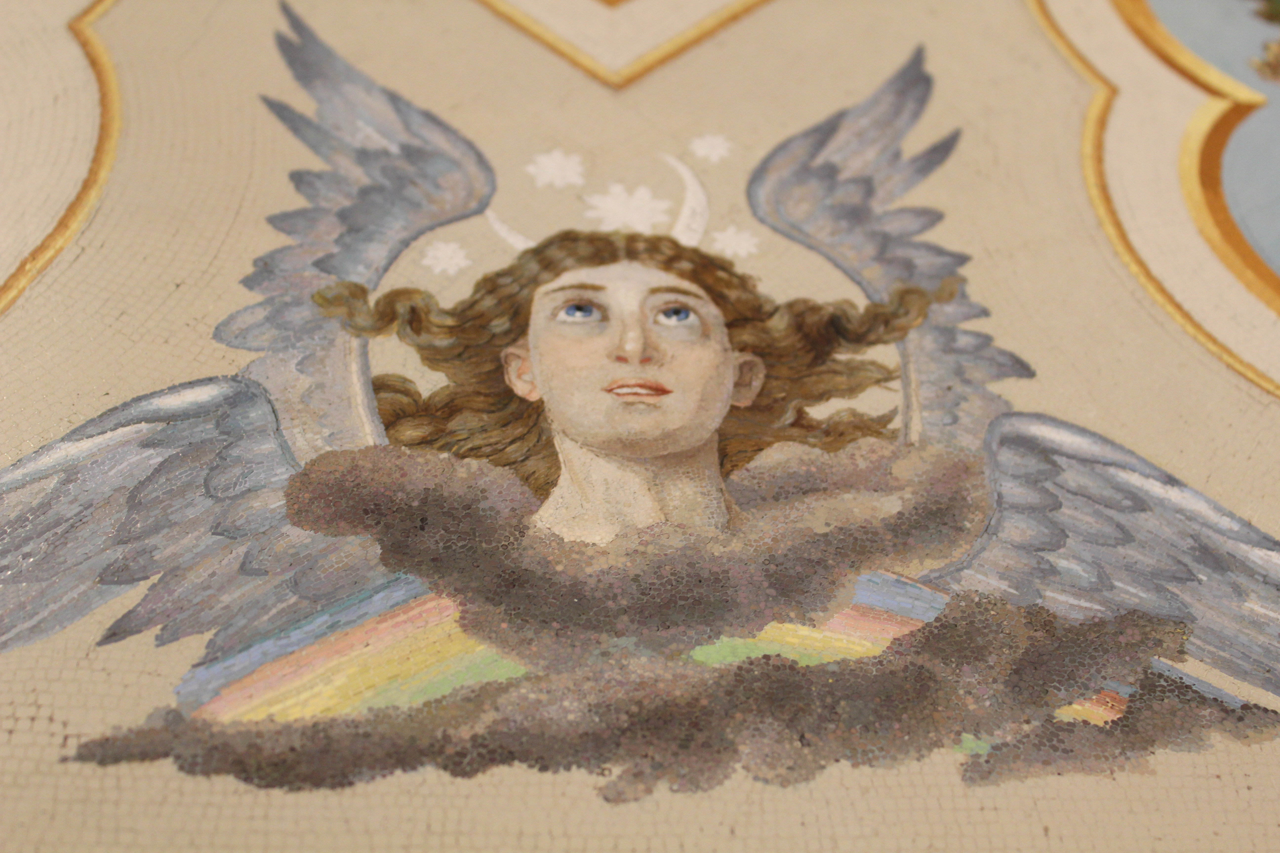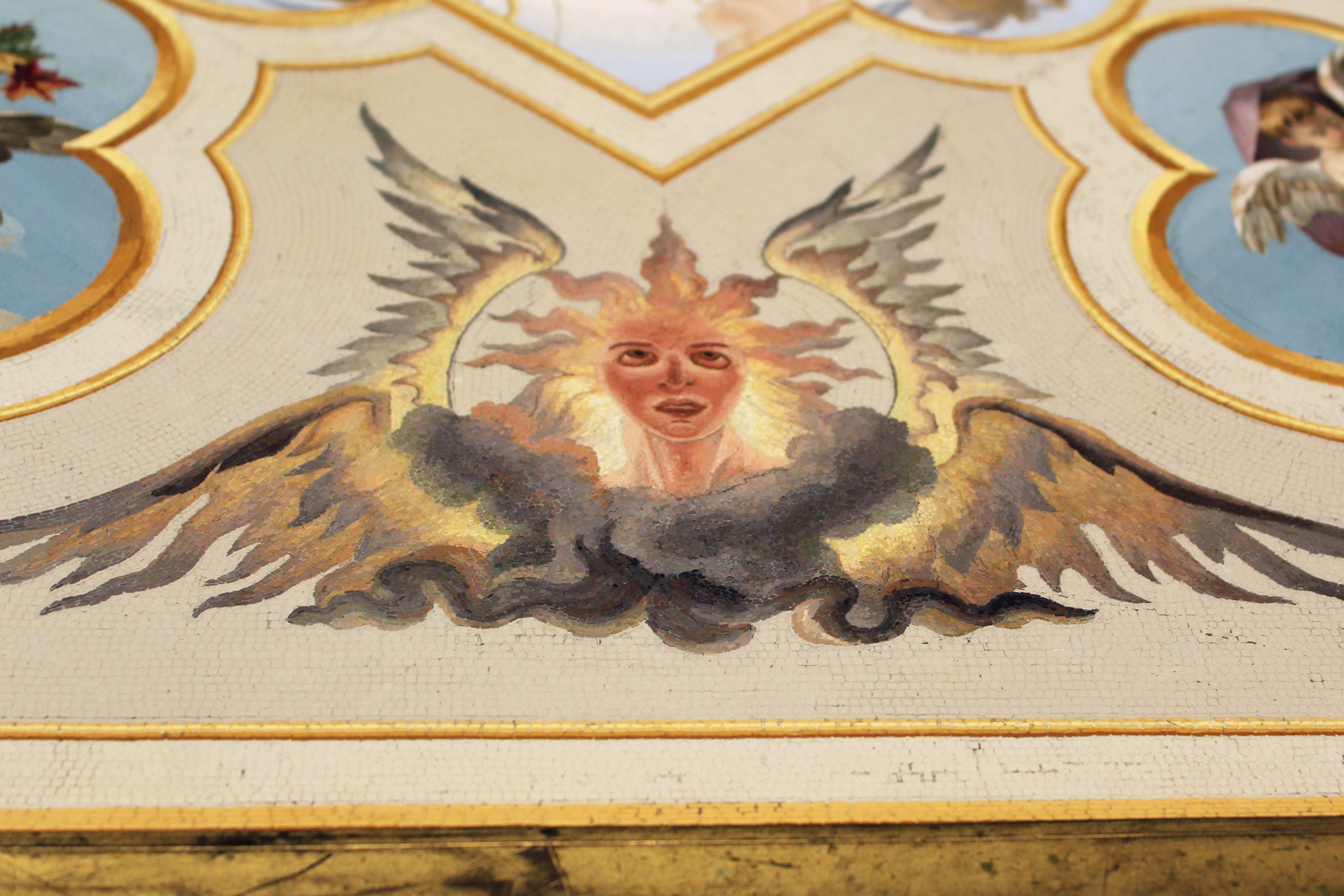 And a table amazingly illustrated with all sorts of angelic figures did not escape the camera lens: