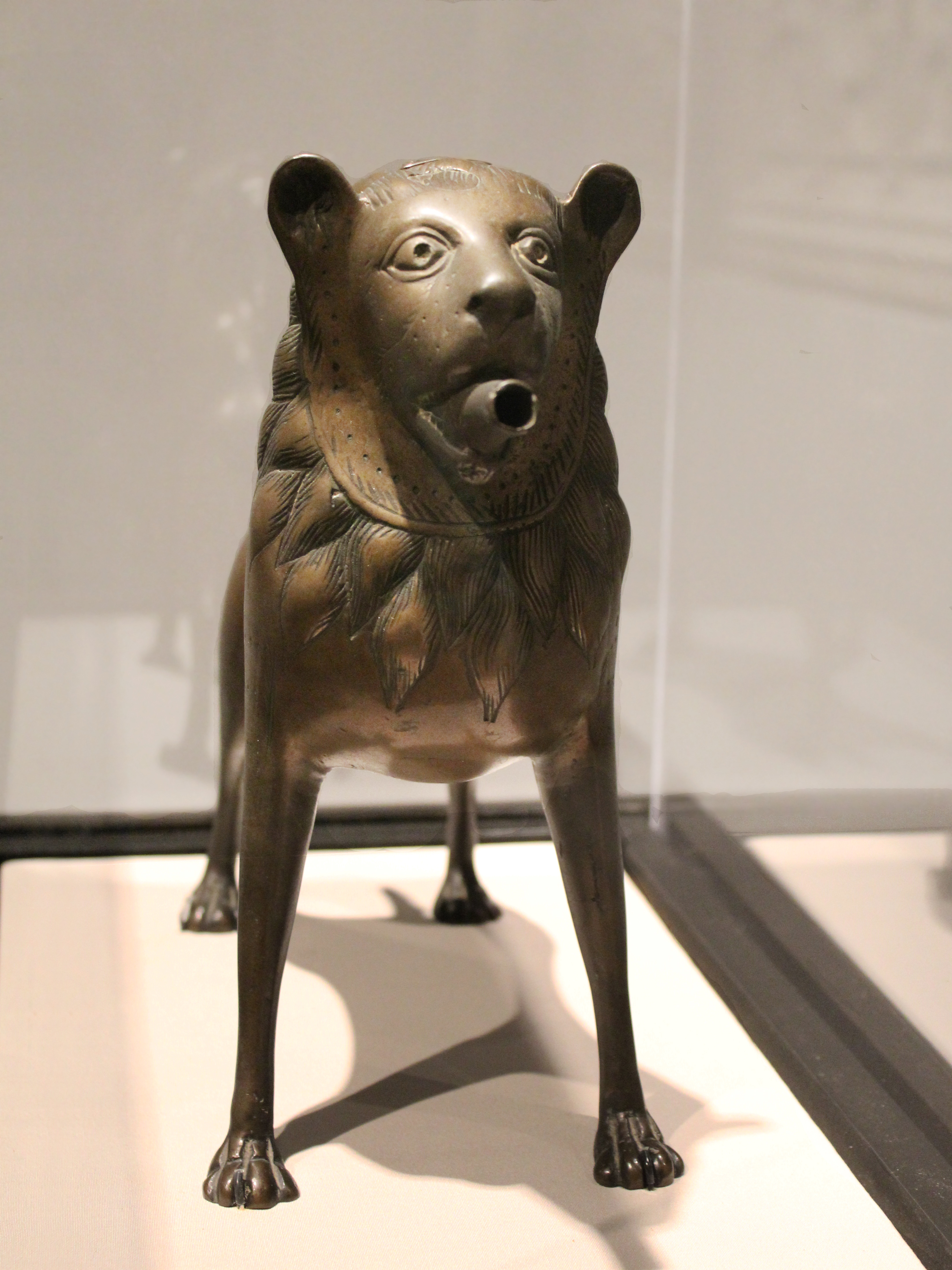 I can't see a clock in this hotel room. But I know it is still dark. Yesterday was such a full day. Julia and I arrived at our hotel around noon. A room wasn't available yet, but they let us stow our suitcase in a locked chamber. We headed off to LACMA. I'd studied the map and learned a bus at Fairfax and Beverly would take us very near LACMA. There's huge construction going on at LACMA, because they are building a new building to house their permanent collection. We could have entered in at Sixth St., where we exited the bus. But not knowing any better, we walked all the way around the construction. Later from the distance, I can see it is going to be a round building. Julia and I arrived very thirsty, so we stopped at the open air café. Comfy padded low chairs welcomed our weary bones. It's hard to imagine that nine years ago, we walked all the way to LACMA from the hotel! A tasty beet salad filled with all sorts of colorful fresh beets (I didn't know beets came in orange and pinkish lilac colors) and some fries revived us. That, and oceans of the tastiest iced tea restored us, while I studies the maps of what was available to see. I wanted not to miss the Matisses on display. European art is still in the Ahmanson building, so we headed there first. I saw all sorts of art I'd never seen on our two earlier visits! There was only one piece I remembered from before, an "old friend", the lion shaped aquamanile from the 12th Century.