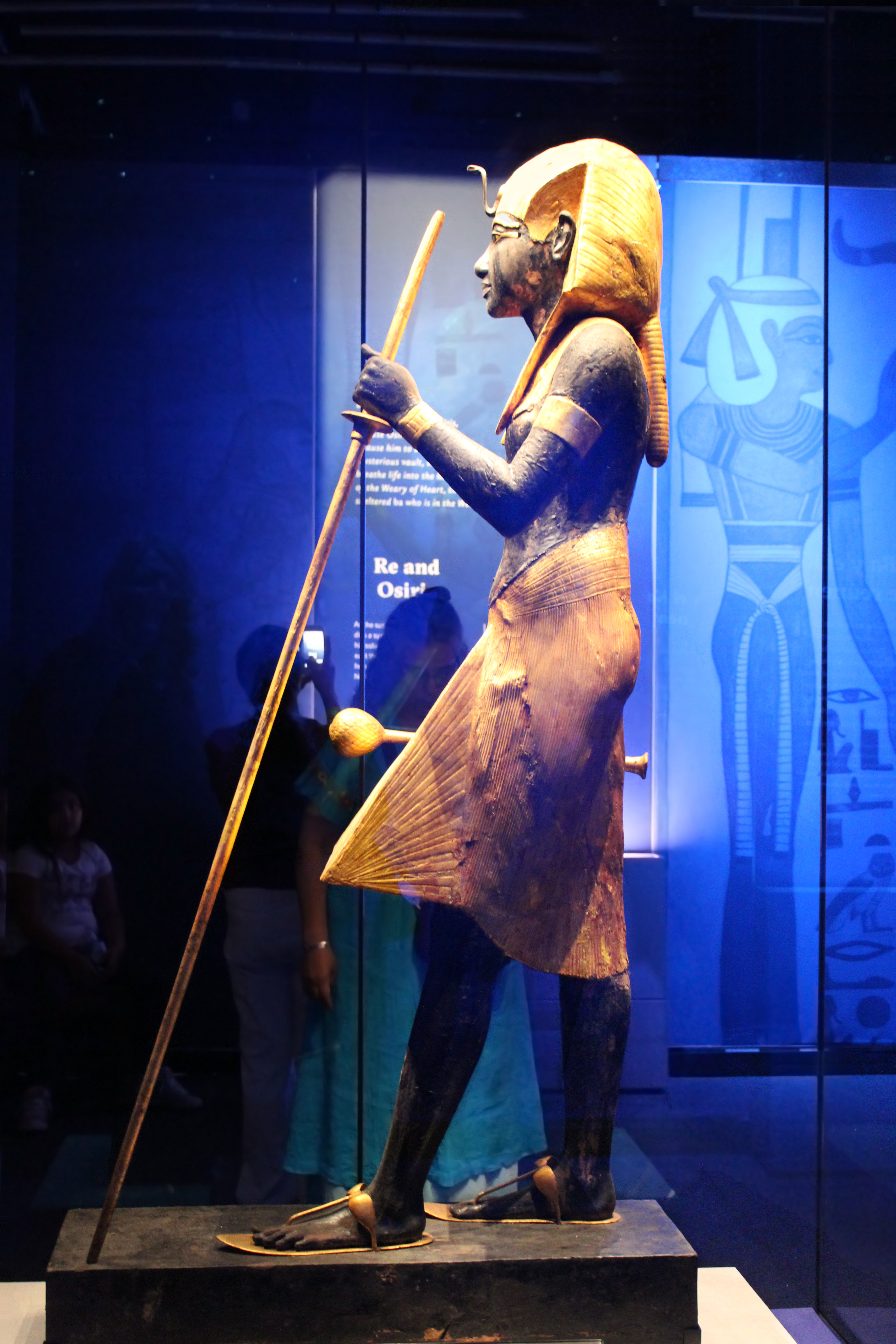"Both this crook and the flail were found in the cartouche-shaped box. Tutankhamun's name is inscribed on both. [These] and another royal crook and flail from the tomb are the only examples ever discovered."