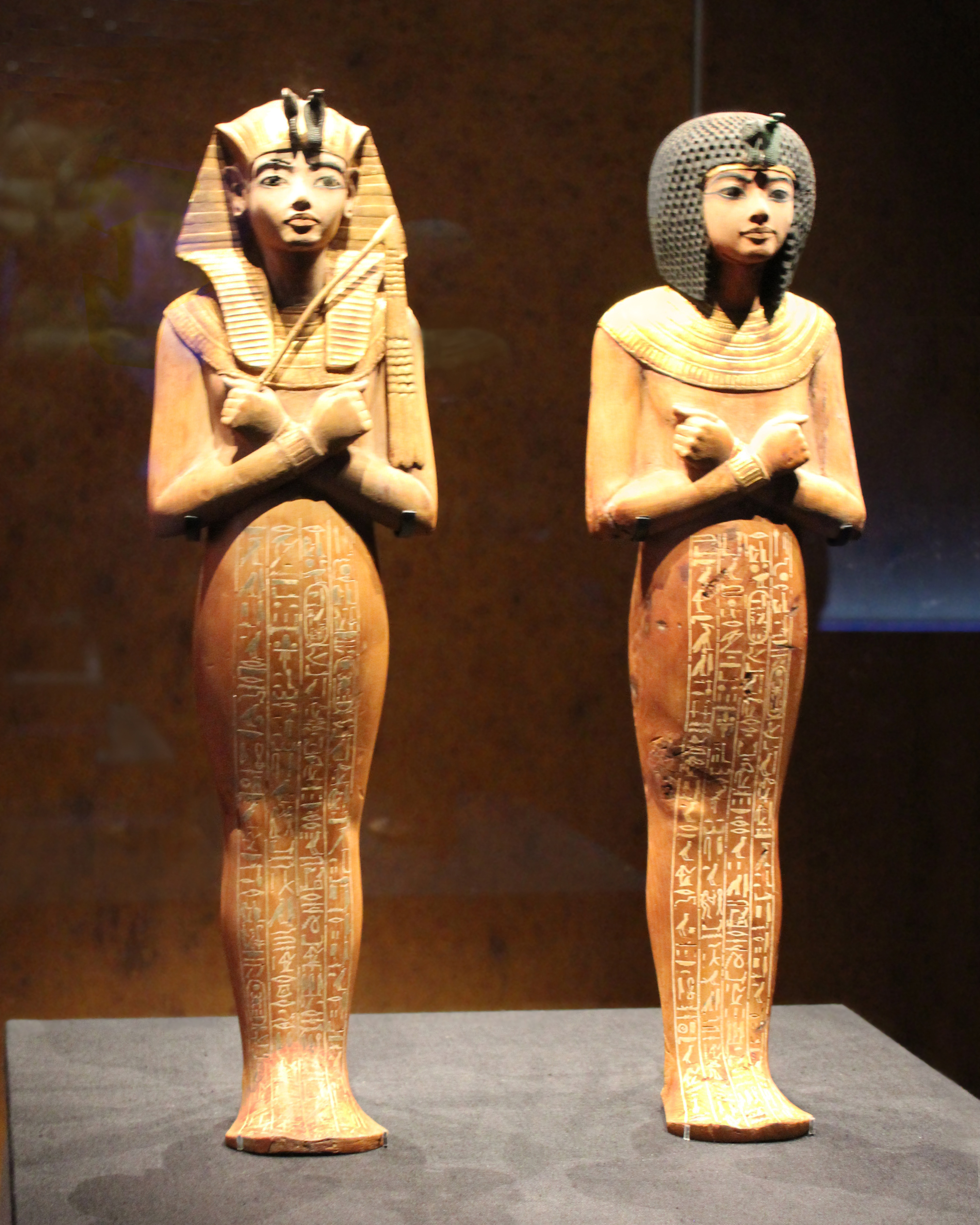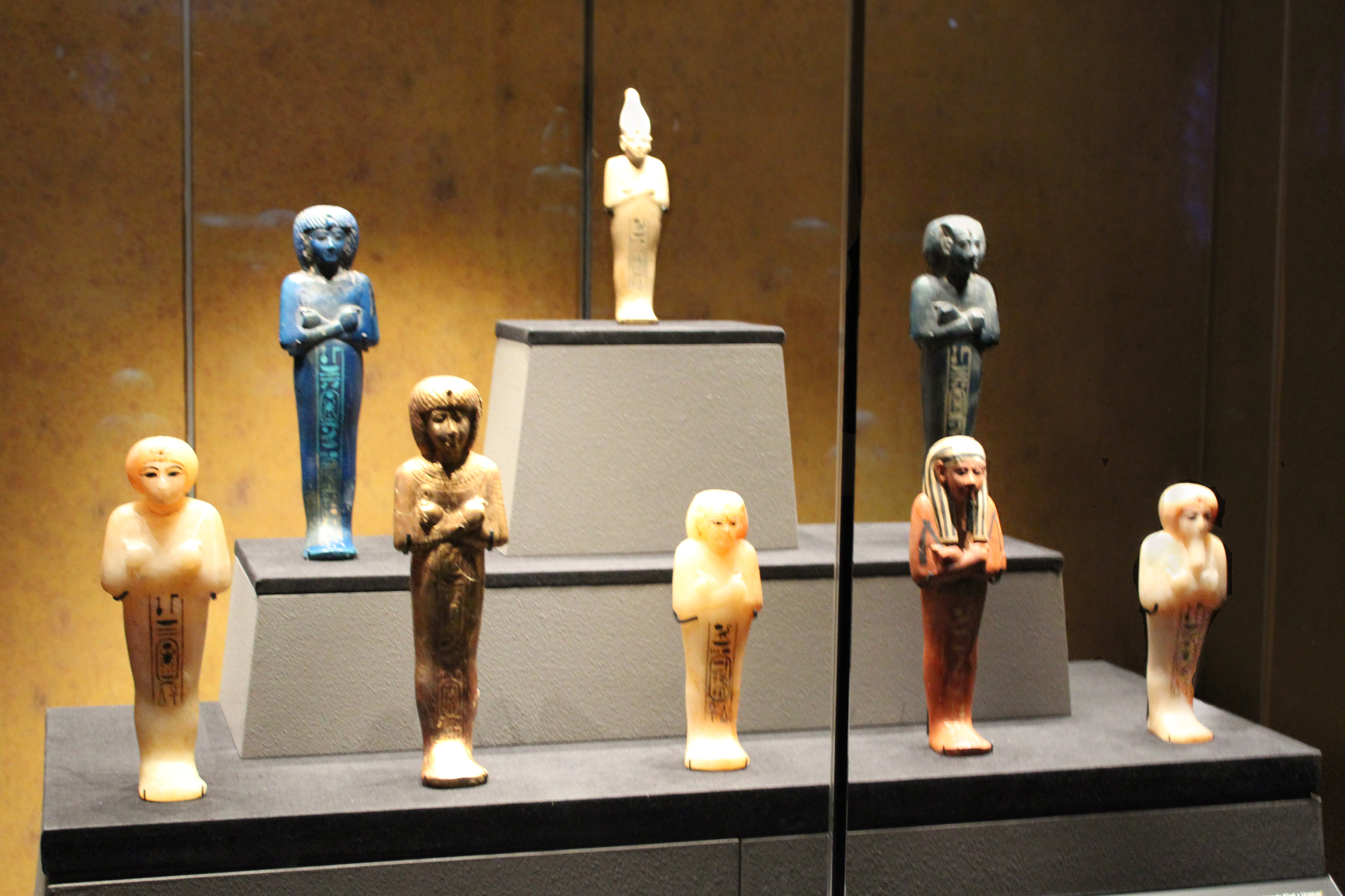 Before I get started on a new art project, I want to get some more of the Tutankhamun exhibit photos up. Tutankhamun had a wide variety of shabtis. Here is an overview photo of some of them: