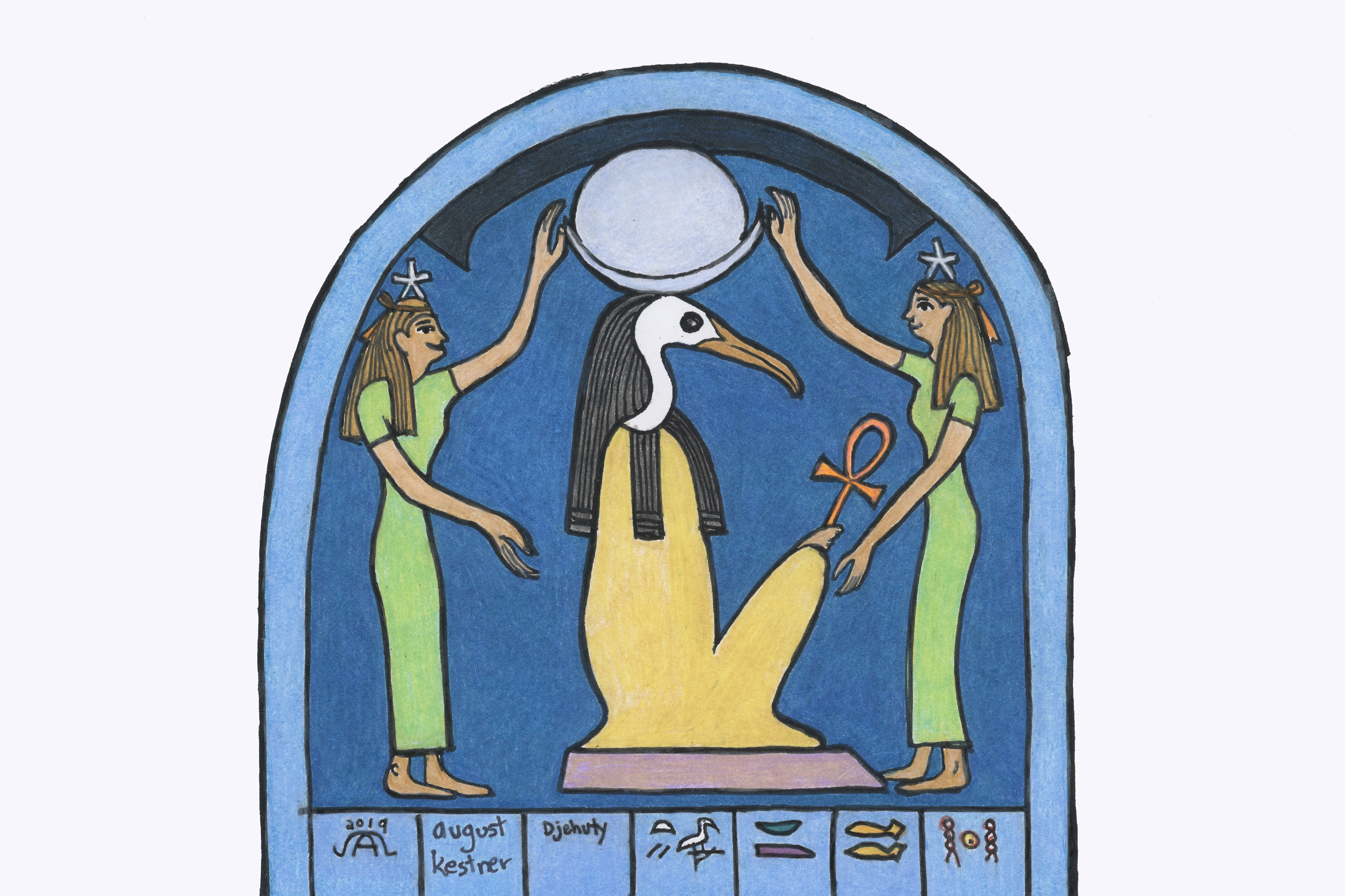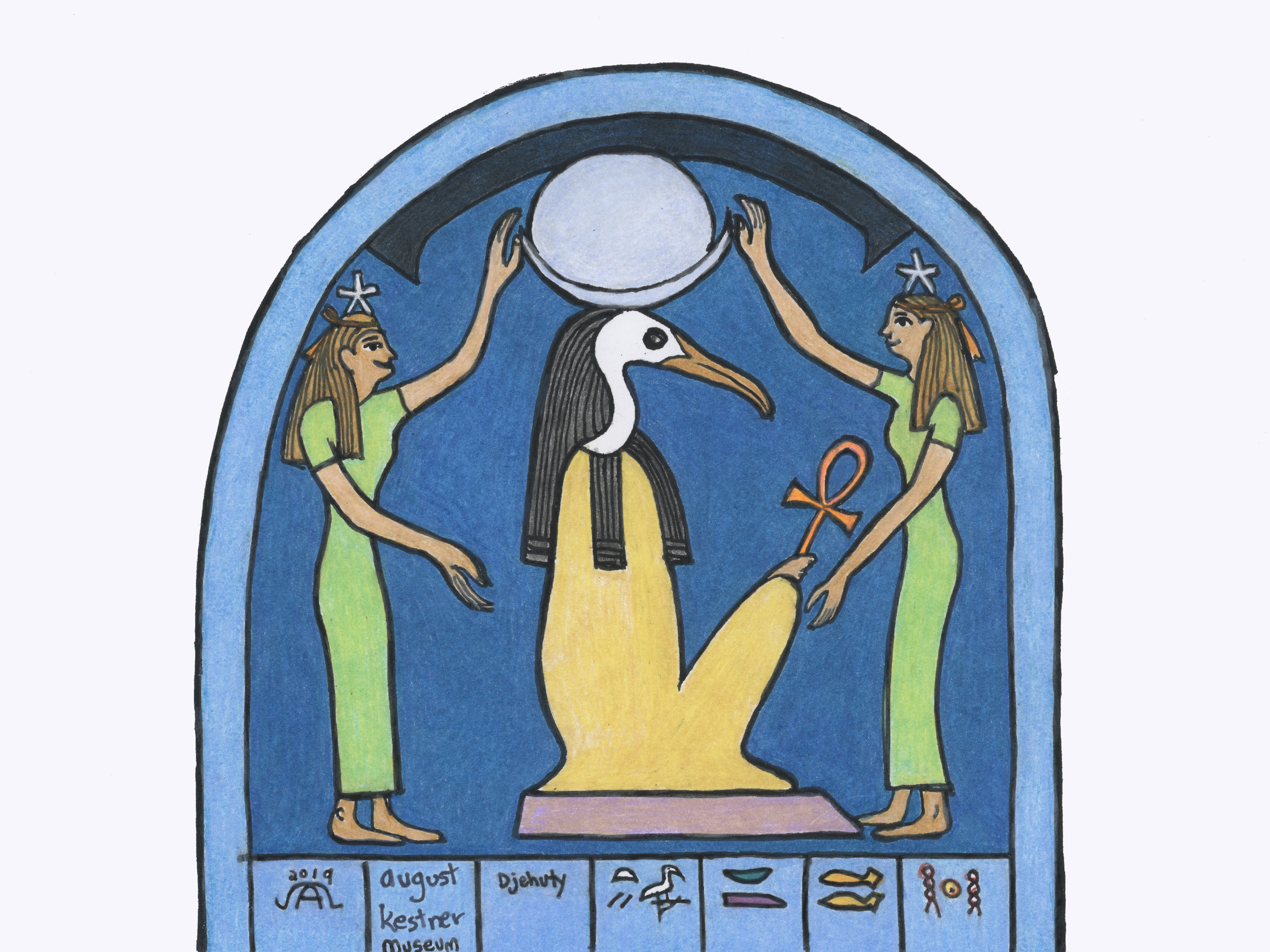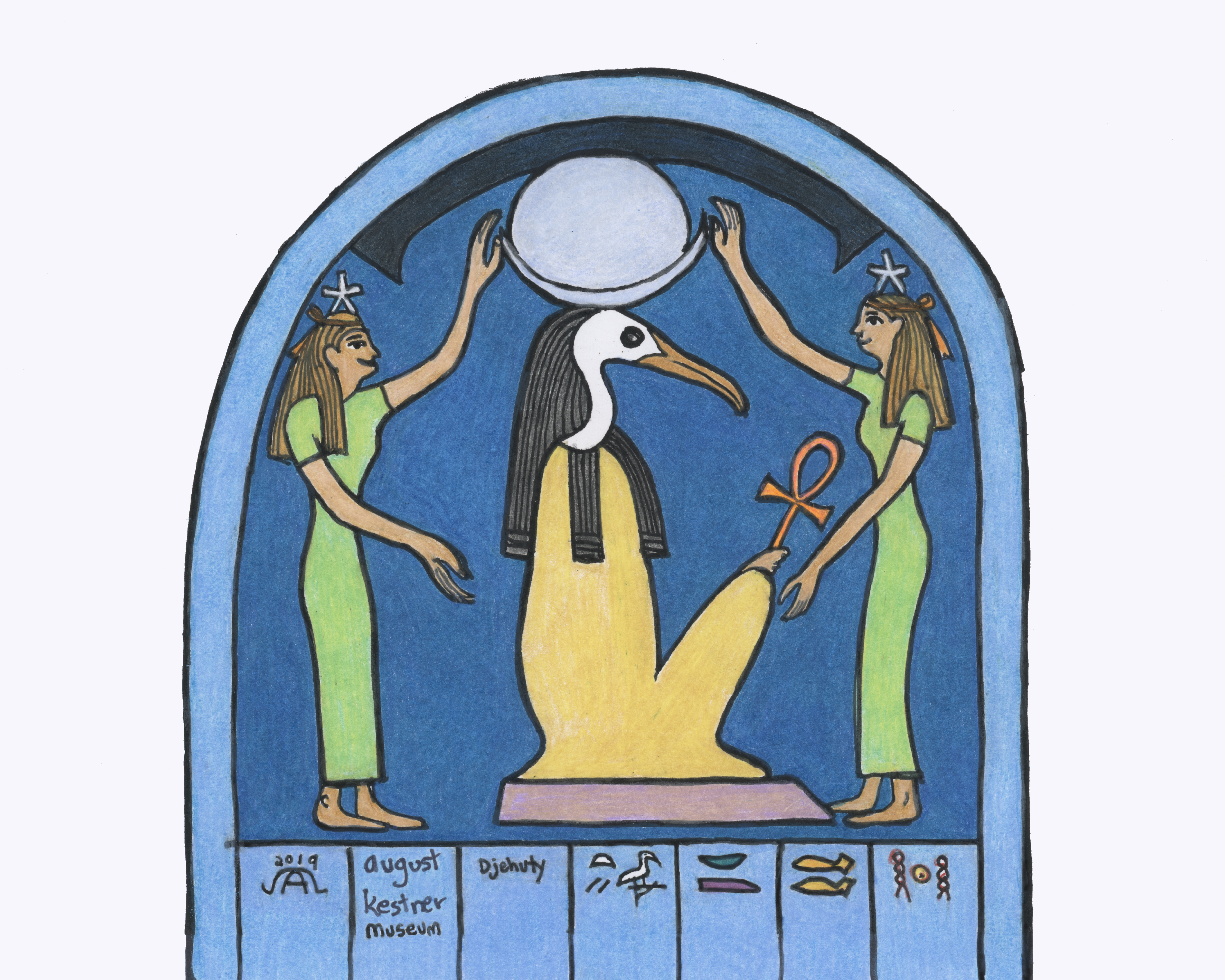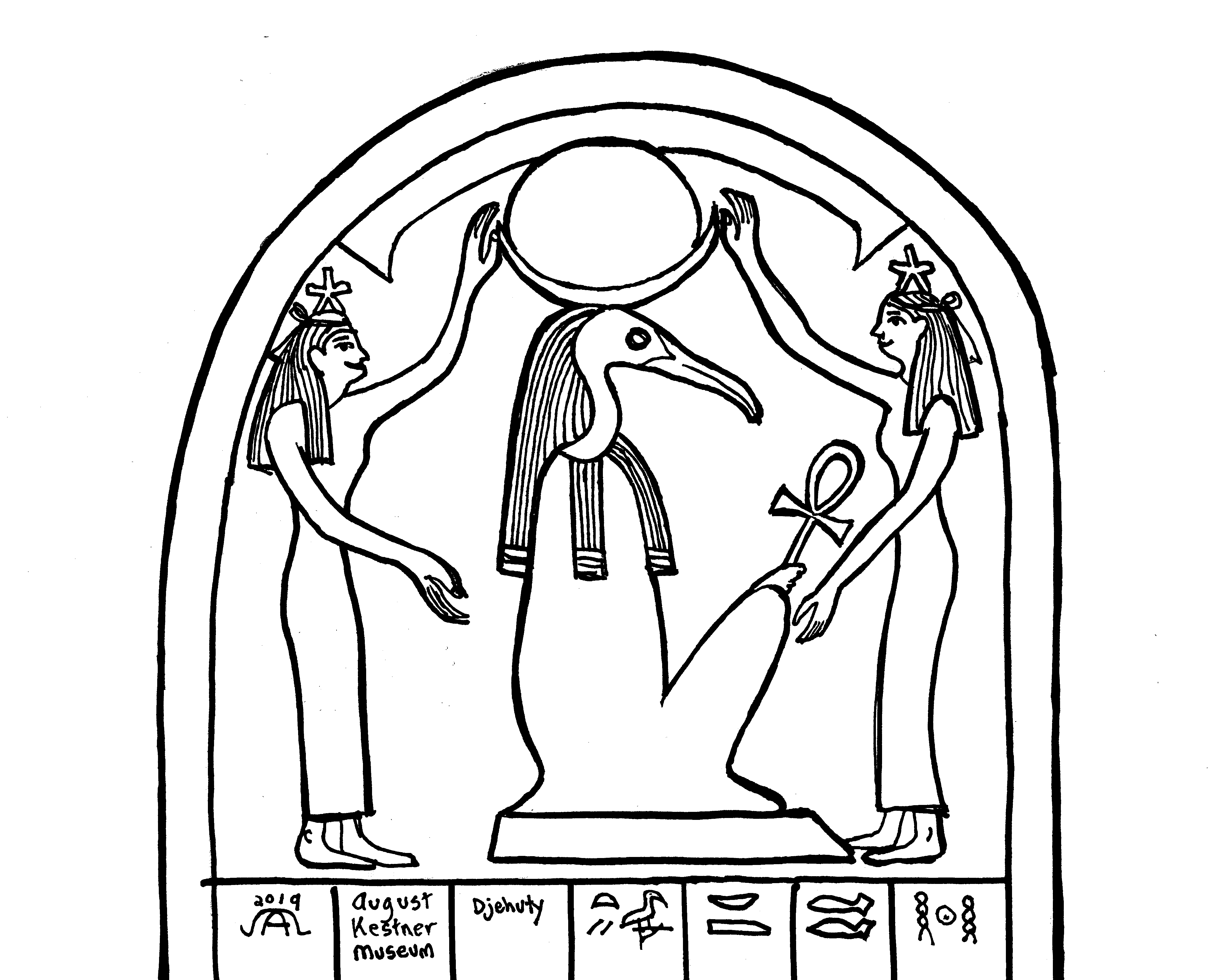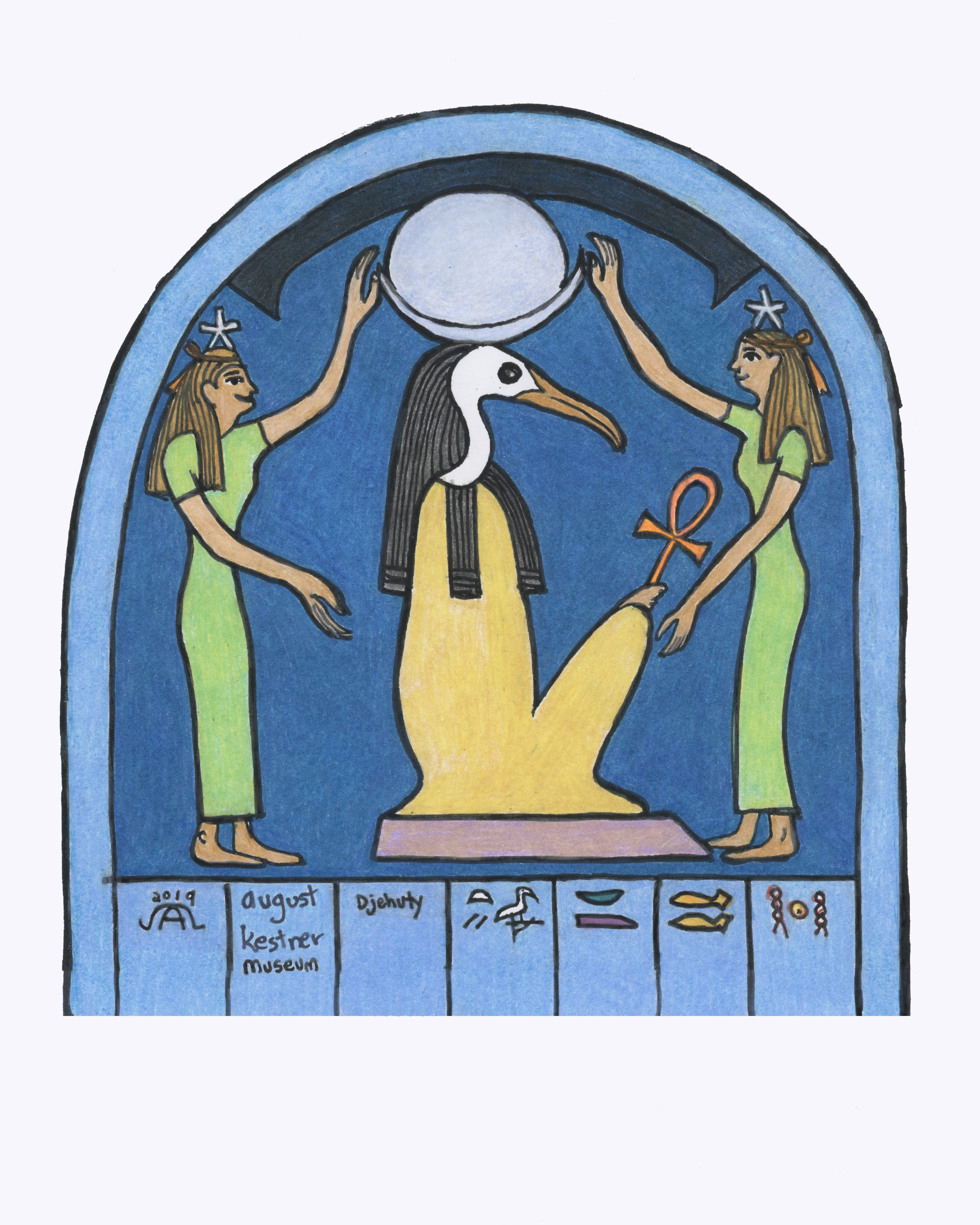 I saw this lovely photo of Djehuty with two adoring Star-Ladies and had to have a go at it. However, I was frustrated, and wanted to see the other half of the stela. What a struggle to learn more! At first I thought it was at the Leiden museum (Rikjs Museum). But I couldn't find it at their website. Then I learned there's a temporary exhibit at the Leiden museum, only there until the end of the month. I read on the museum website all the museums which have lended pieces to this exhibit. So it was a one by one, trying at each of the various museums' websites. I eliminated Allard Pierson, Roemer and Pelizaeus, Kunsthistorisches in Vienna, Museo Egizio, the Louvre and the British museum. That just left the August Kestner Museum in Hannover. I found their website difficult to navigate. So I looked through all their Facebook photos. I even listened to a lecture about their "forgotten" Egyptian art. Finally, I hit Flickr with just the right search term, to bring about ONE photo from the Hannover museum. This lovely piece shouldn't be forgotten, too. Meanwhile, that one lone photo was the photo I needed! (Furthermore, it is of the whole stela, which I'd dearly love to translate one day. Right now all I can make out is that it is likely from the New Kingdom and is of a scribe who is giving adoration (dua) to Thoth (Djehuty). I hope my colorful tribute does it justice. |