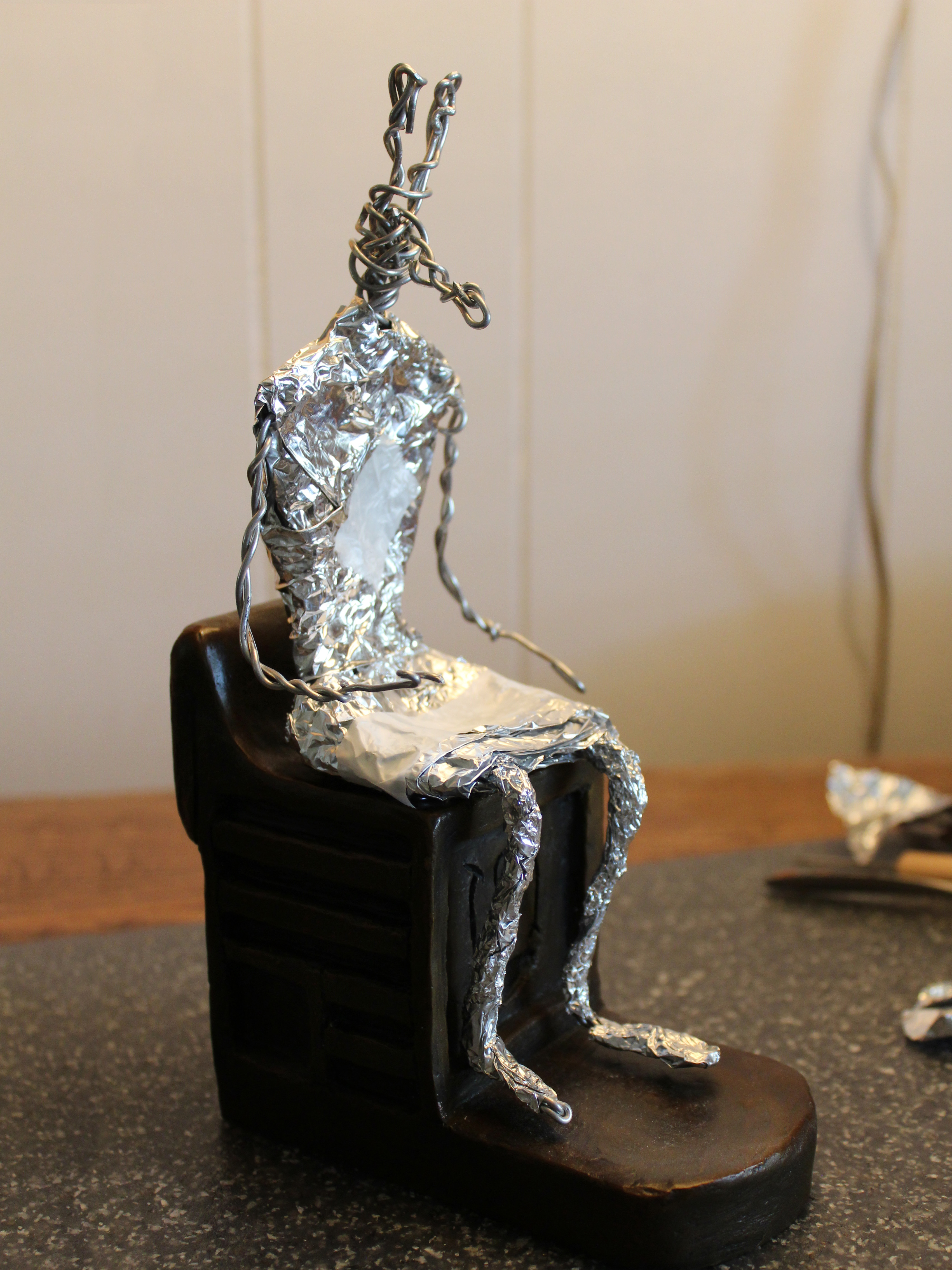I geared up for attempting a long neglected art project. It's been nearly TWO YEARS that this poor armature has sat, all "boney".