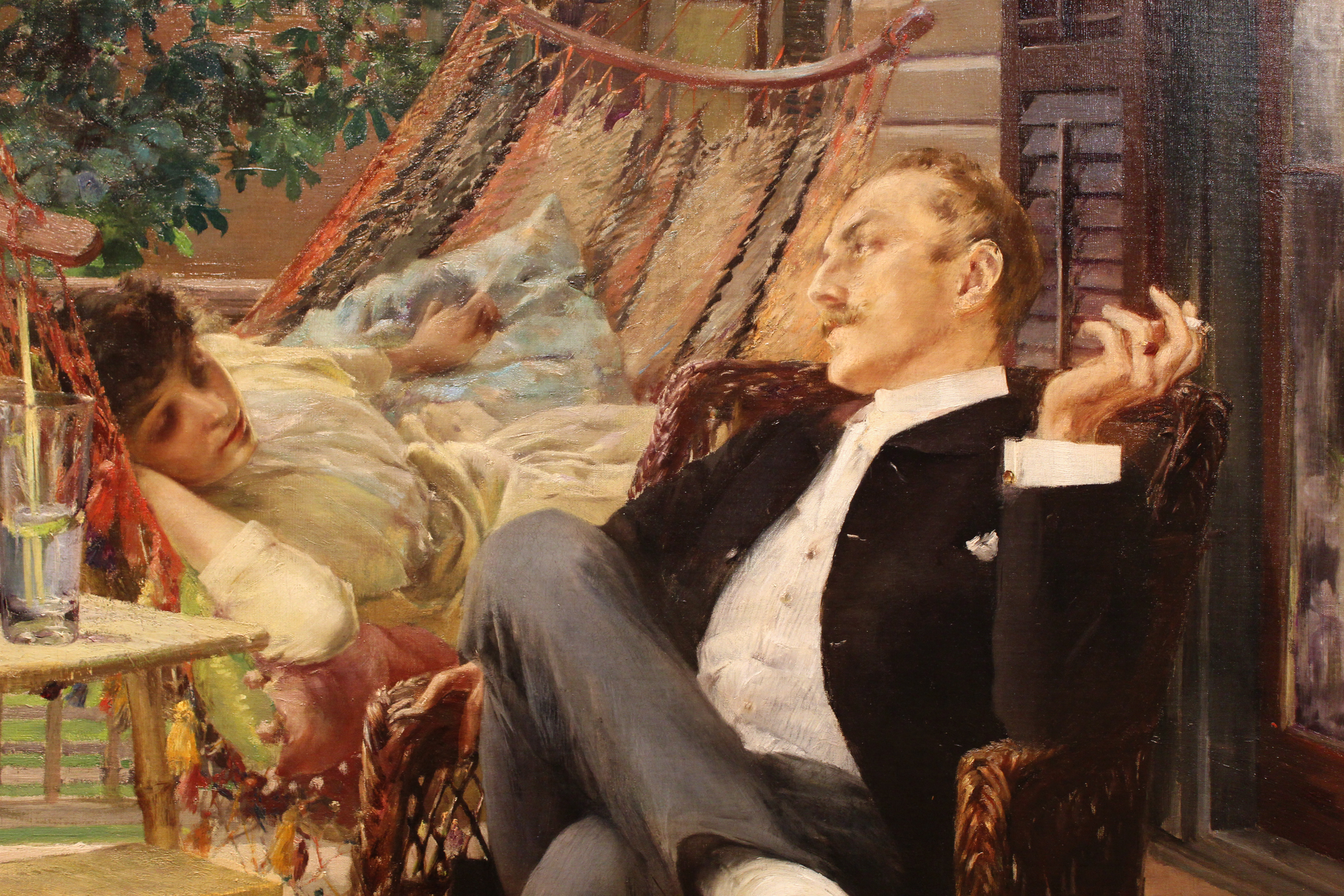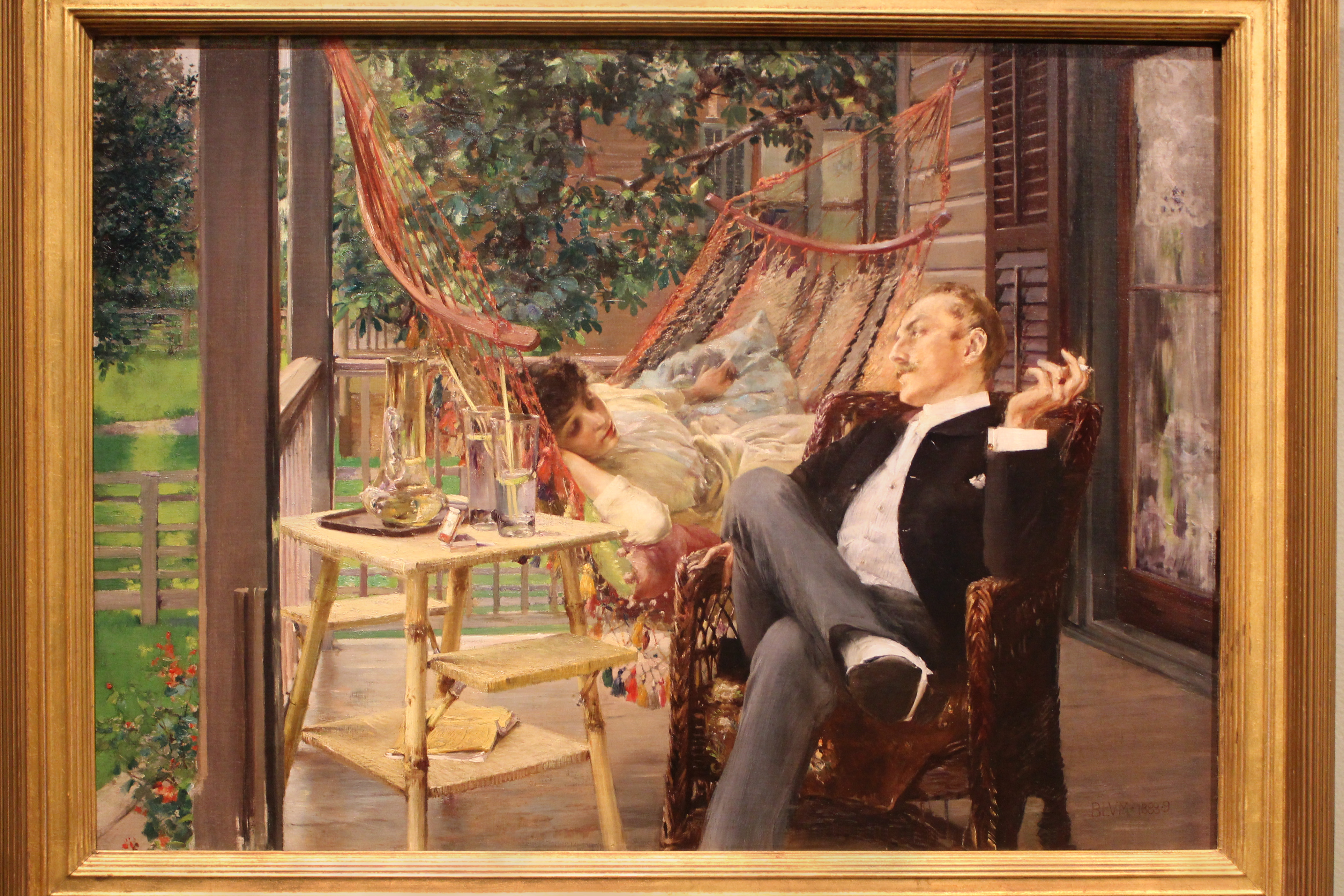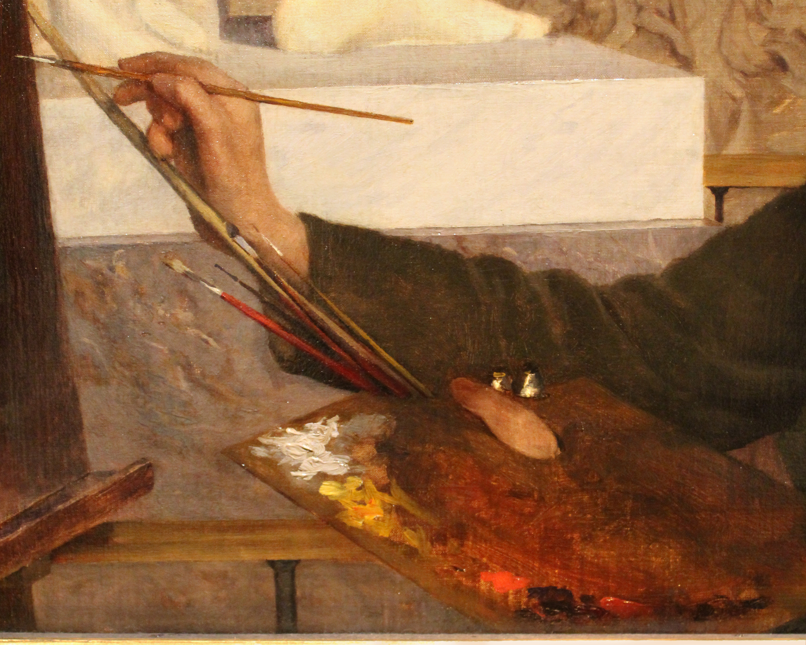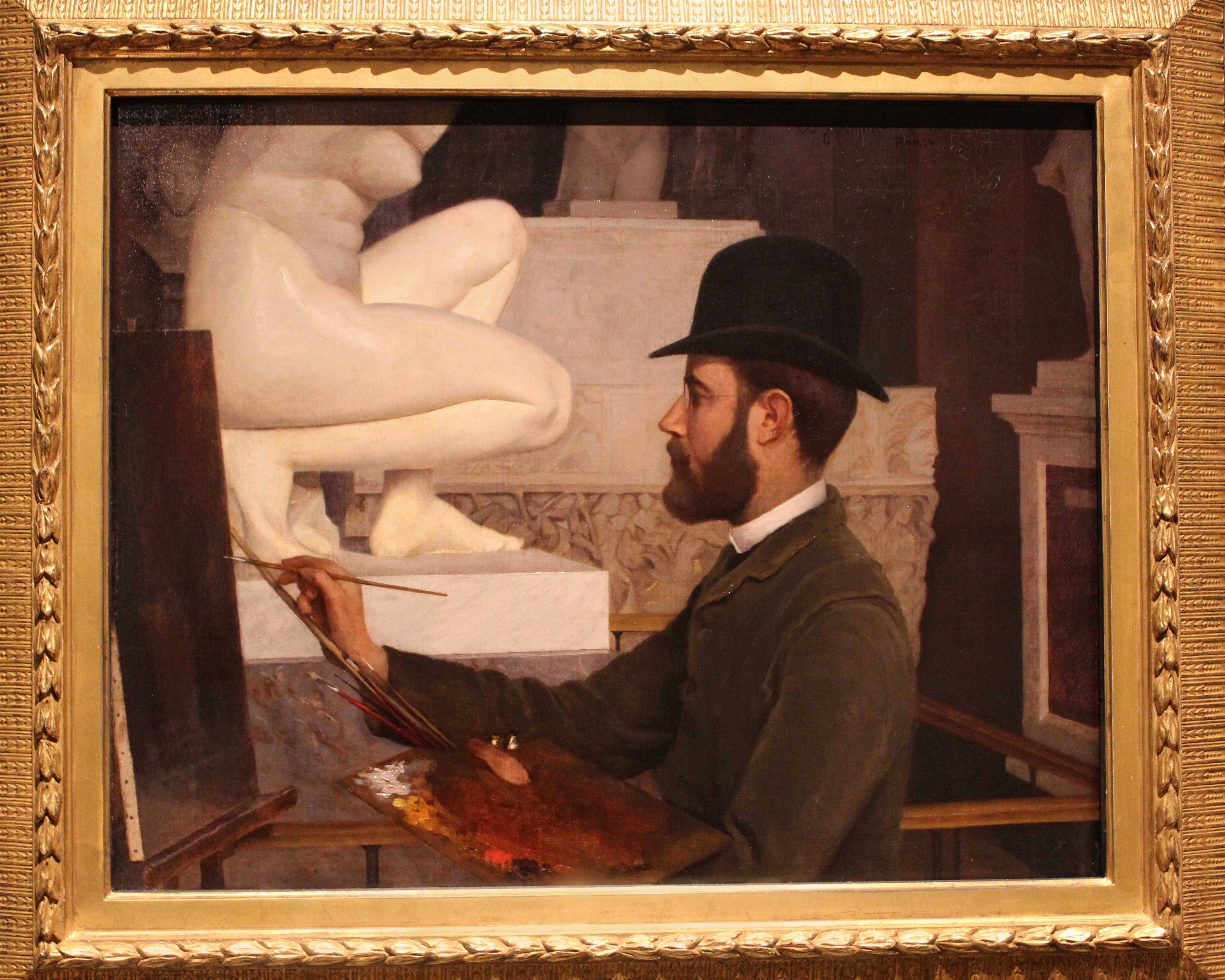 For America: Paintings from the National Academy of Design features many portraits and there's a reason for this. In addition to donating one of their paintings, members of the Academy also had to submit a portrait of themselves which could either have been painted by their own hand or by another artist. John Singer Sargent did a portrait of Claude Monet, the artist that painted the waterlilies: