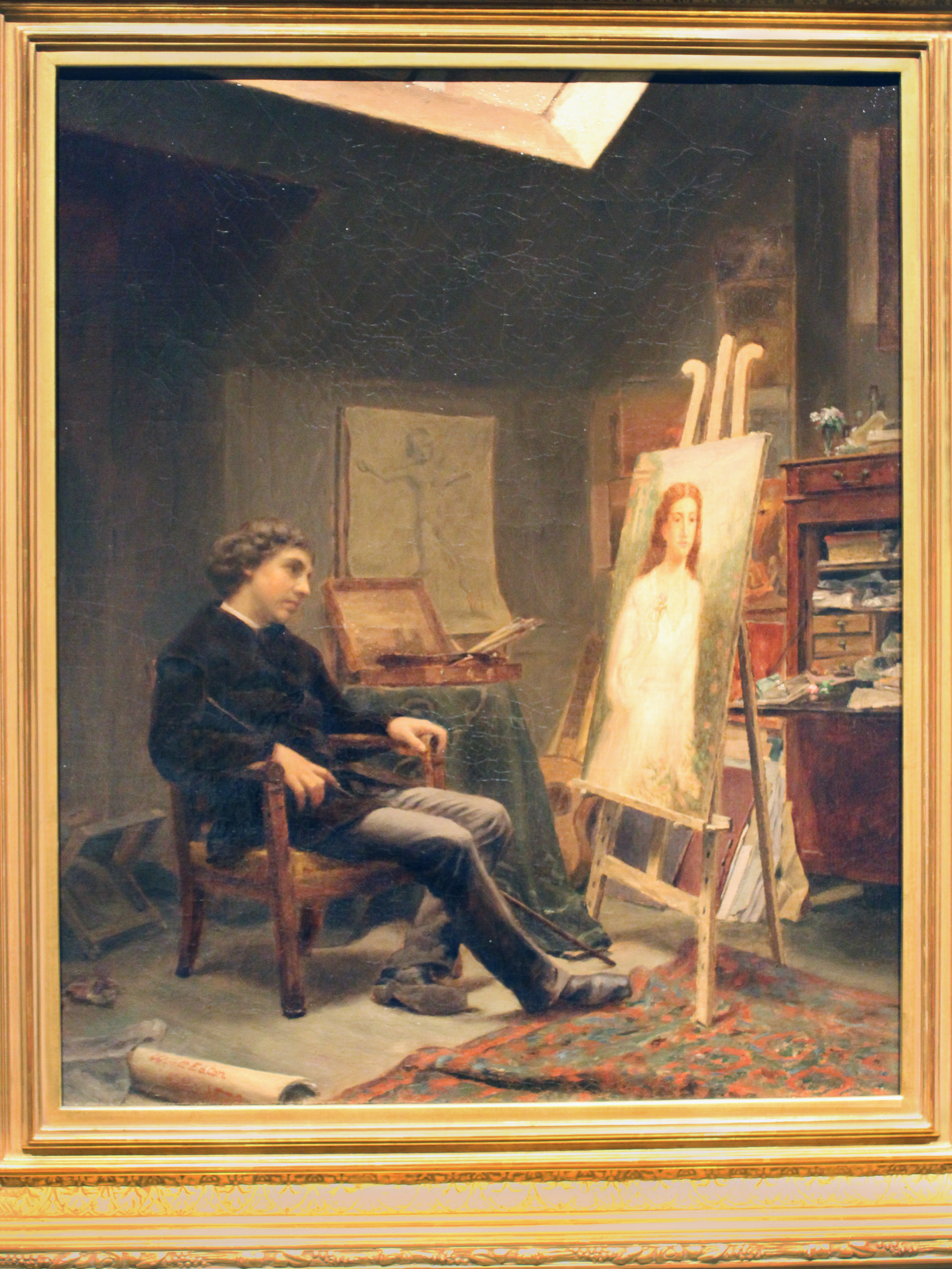Eaton was a student of the National Academy of Design, but in 1872, he moved to Paris, where he studied at the École des Beaux-Arts under Jean-Léon Gérôme. Wyatt Eaton is remembered as being one of the founders of the Society of American Artists, and was their first secretary in 1877. This society "was formed in 1877 by artists who felt the National Academy of Design did not adequately meet their needs, and was too conservative." (Source: Wikipedia)