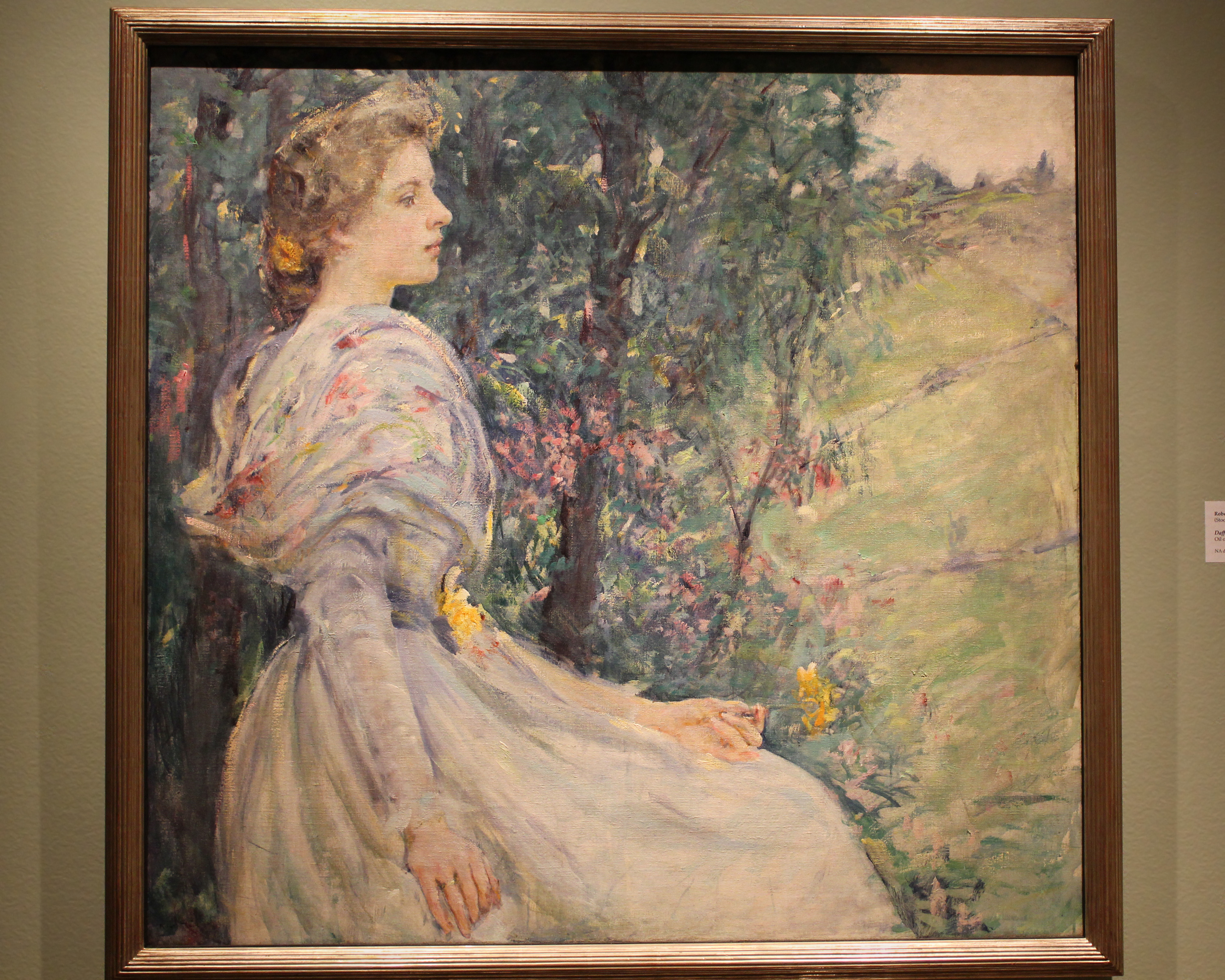 "In 1877, deeming the National Academy too conservative, a group of artists seceded to form the Society of American Artists; twenty years later, a group of artists seceded from that society for the same reason to form the Ten American Painters, better known as 'the Ten.' Reid was the youngest member of the group, and he is best known for the works he exhibited during the Ten's early years, such as Daffodils, which present a synthesis of Academic and Impressionist approaches. Of his style, Reid said,'If my work has any virtue and value, it is because it is mine and does not remind you of any other man's work, either French or American or other. It is of my time. If it has this quality, and suggests beauty, it is art.'" (From info card)