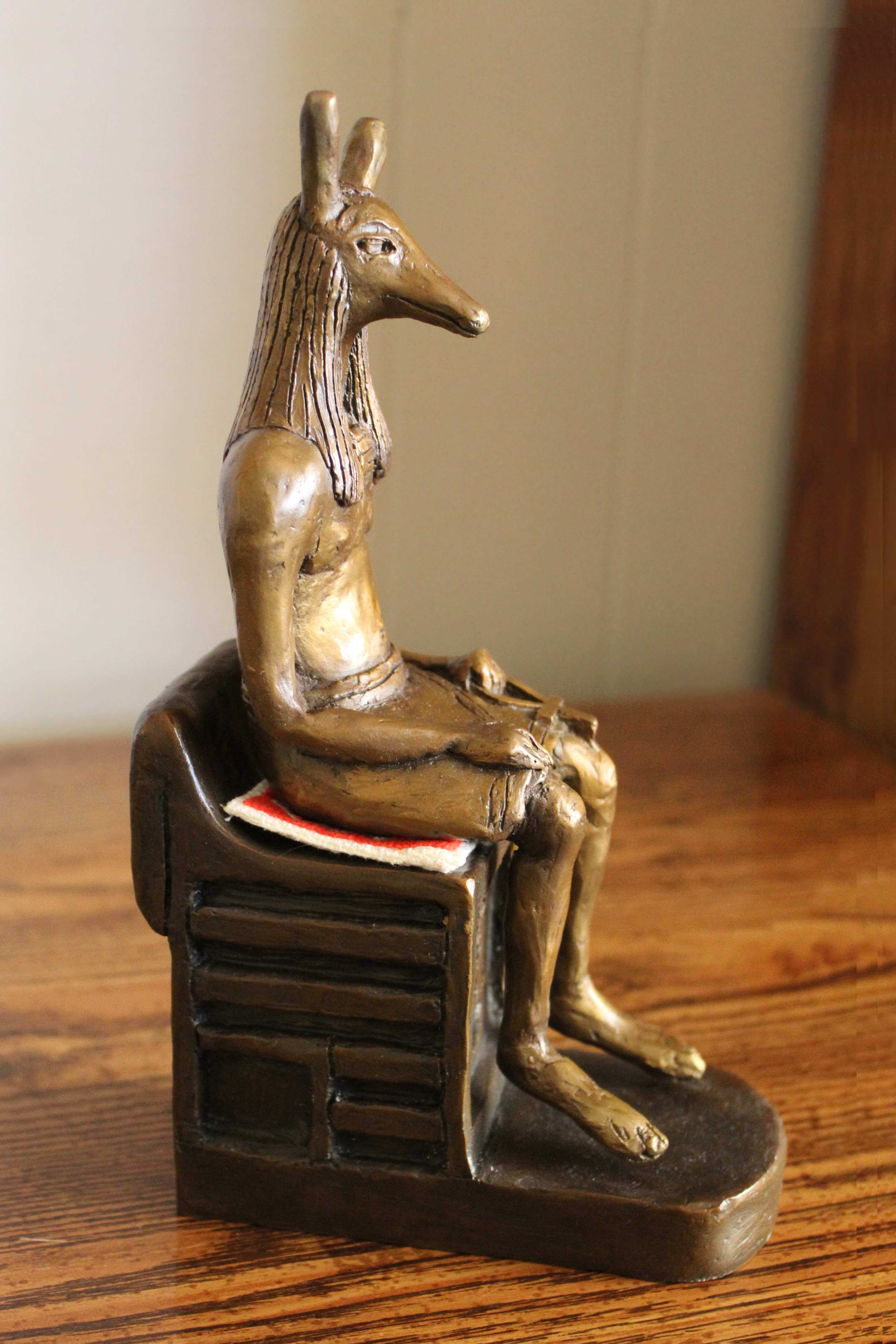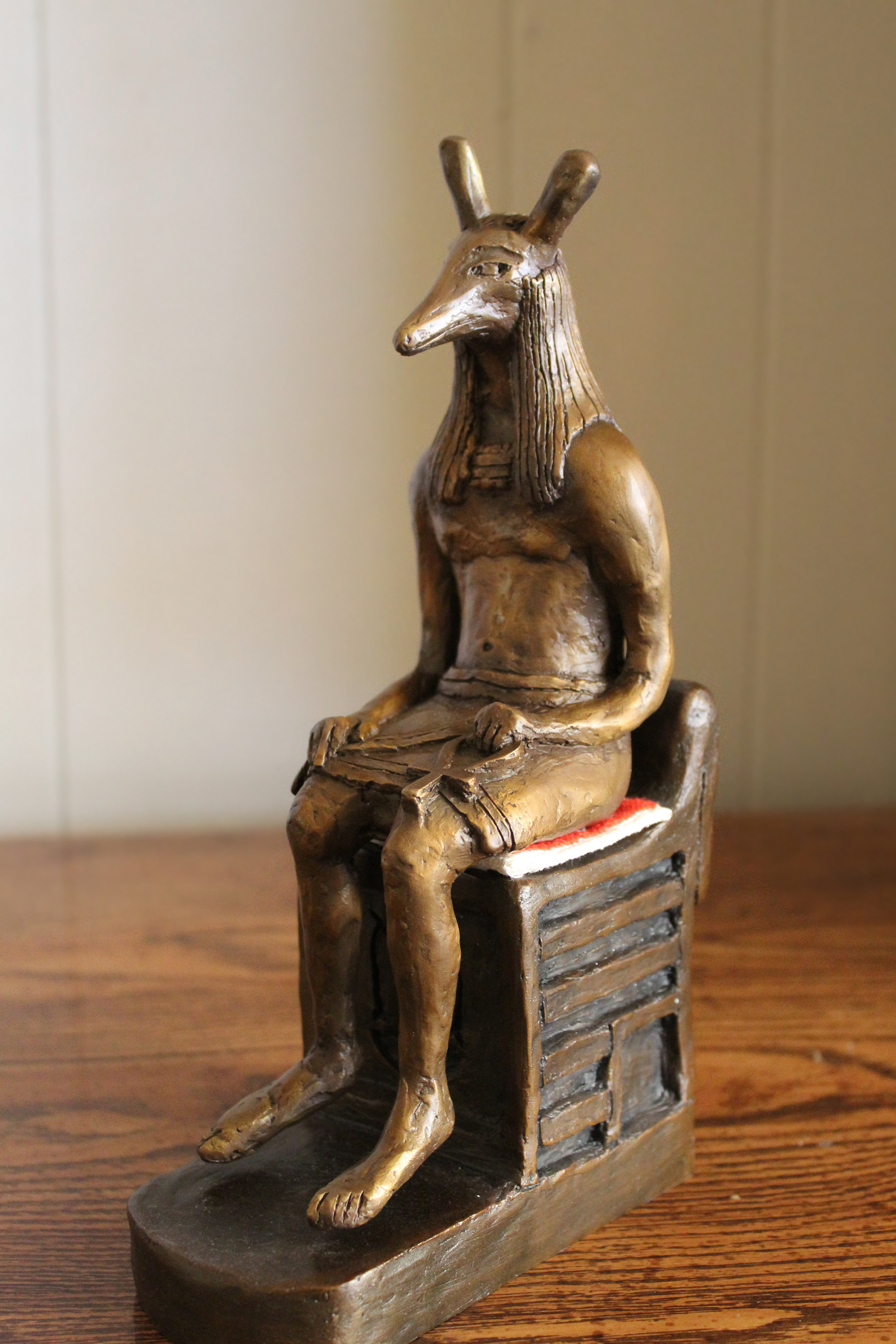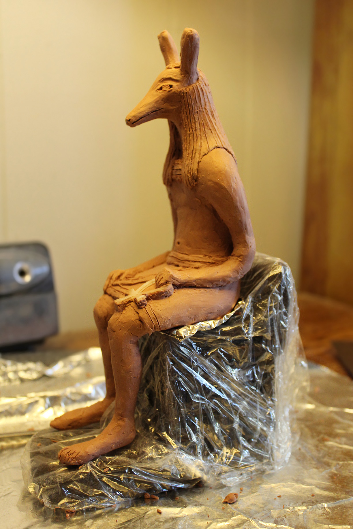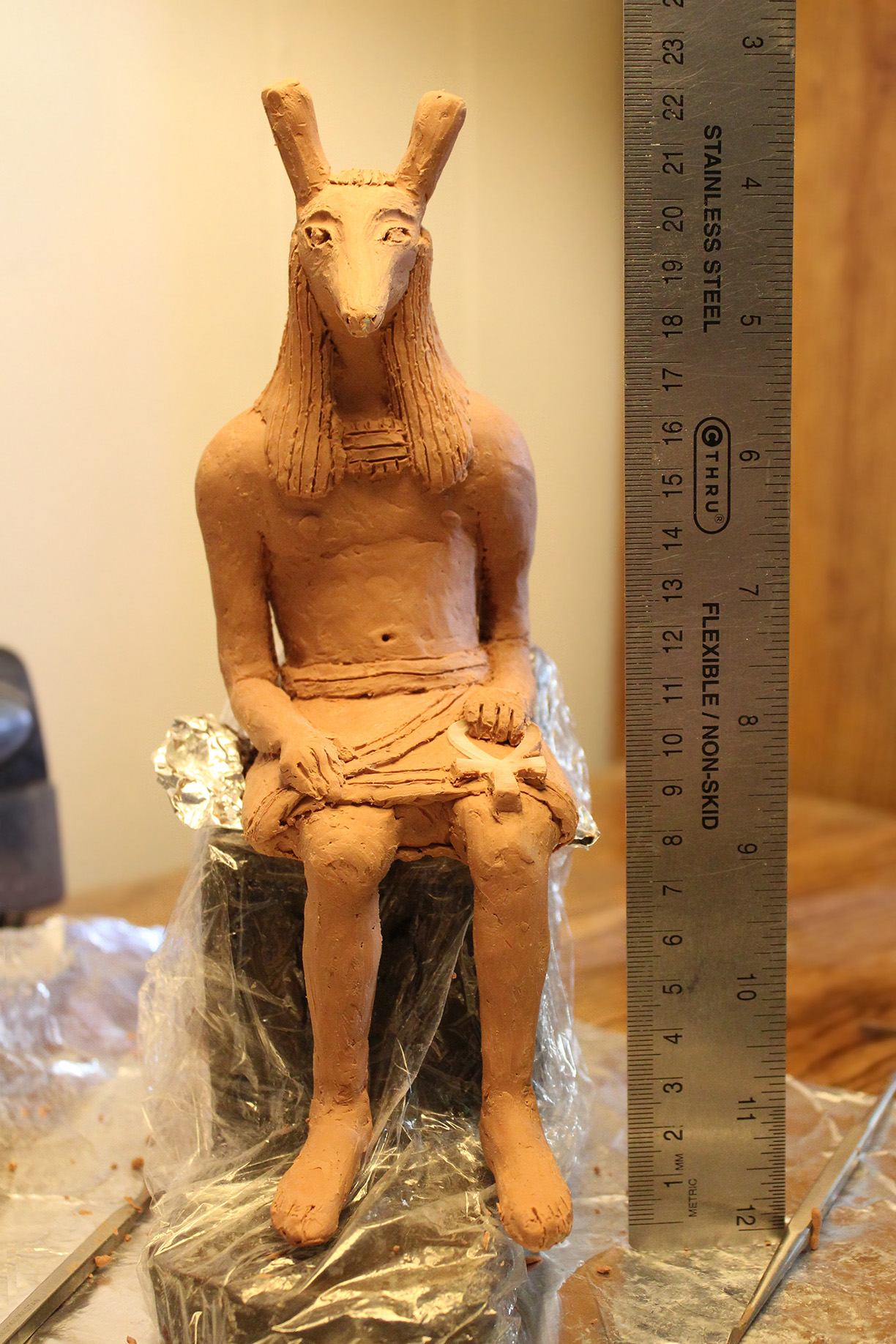 I made armatures for both Set and Horus at that time, too. For a long time, the "bony" armatures sat on their respective thrones. Finally, early this year, I faced my fear and got sculpting, at least on Set's statue.