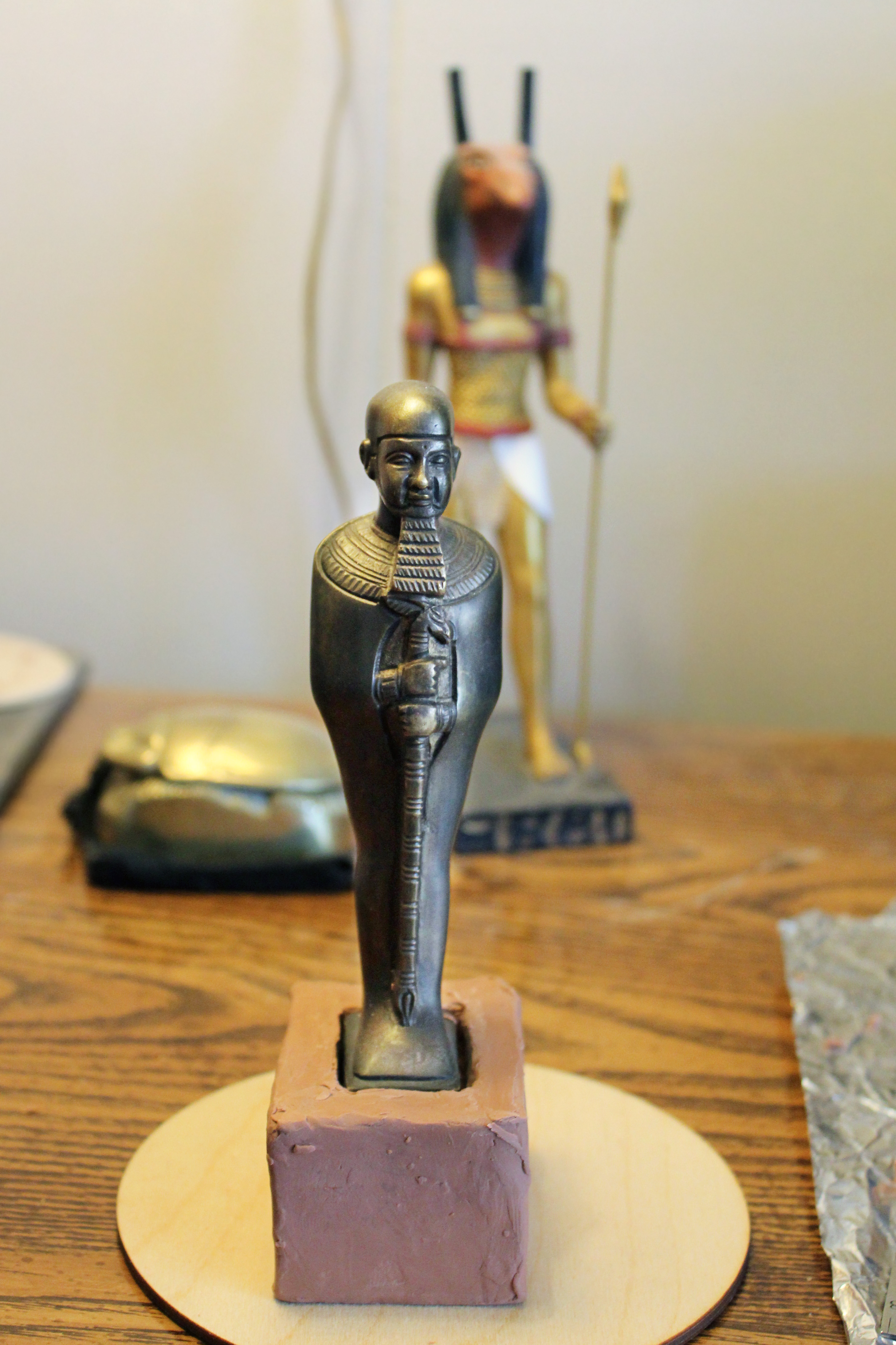 I finally got over the scared inertia and got into the clay. My poor little statue of Ptah has a bad case of the wobbles. He's beautiful in every other way, but.... ![]() The small 'brick' now has a pit in which the statue can sit.