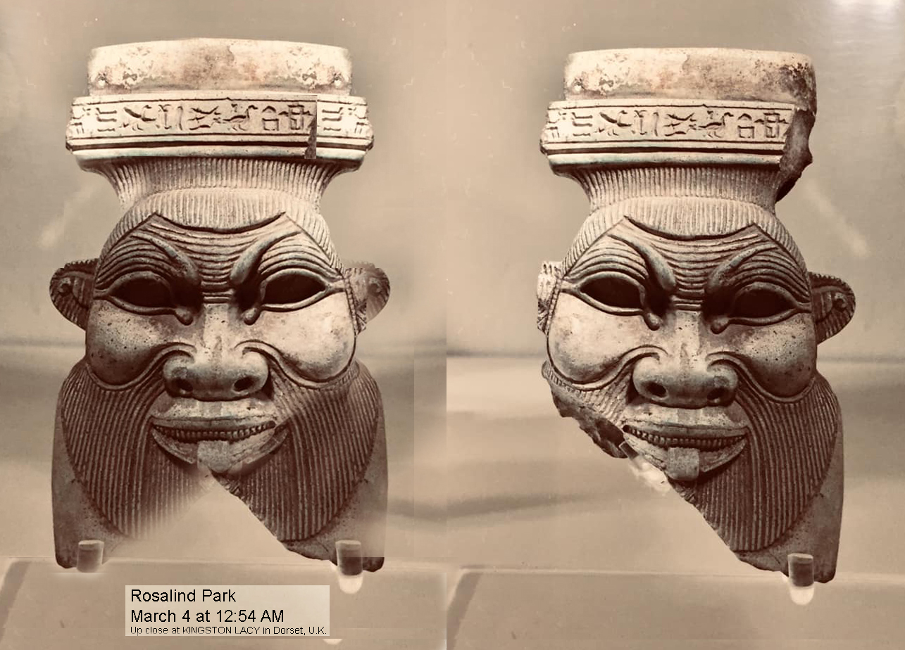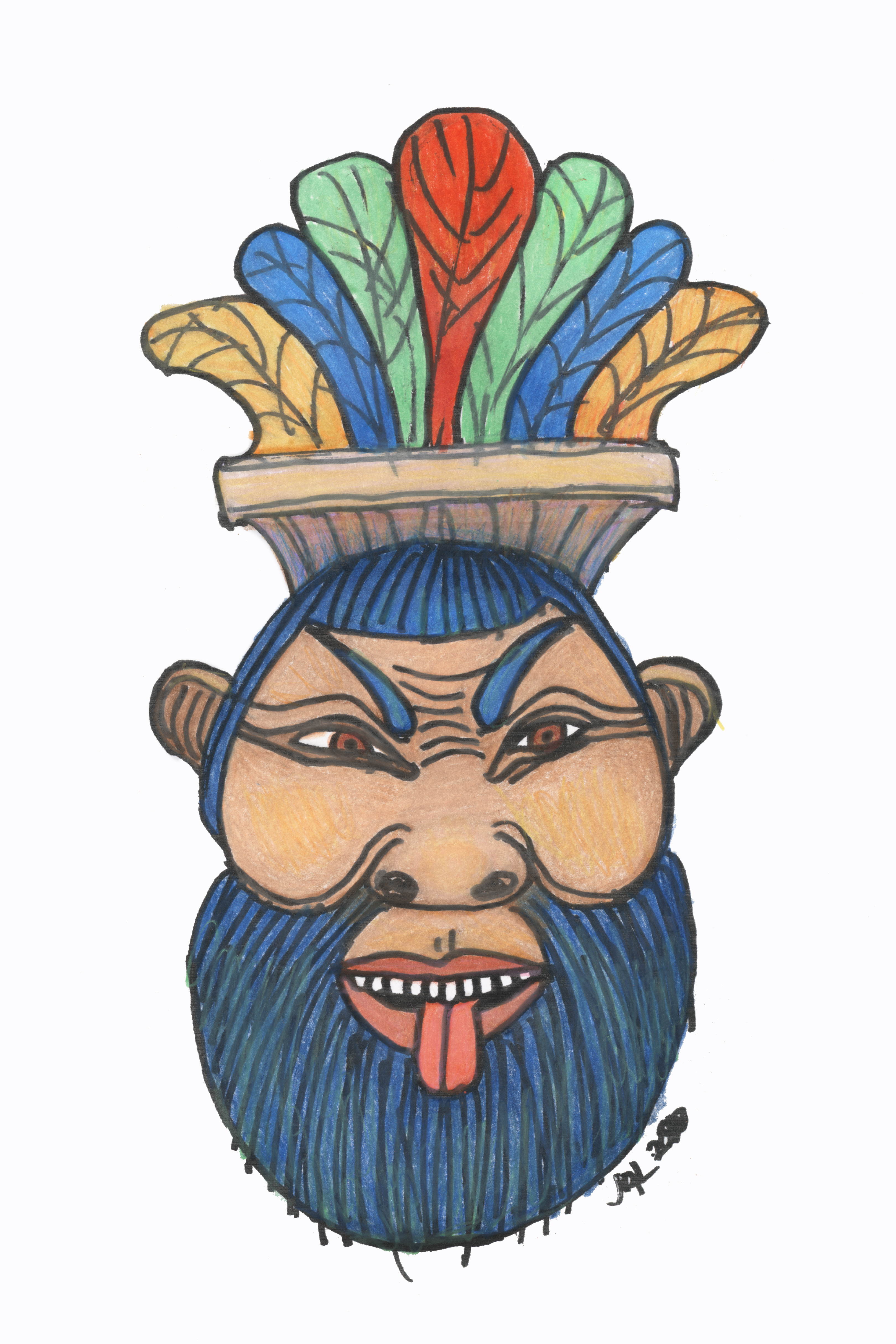 ![]() "an intimate protector throughout life, warding off demons of disease and venomous animals. He is also a God of music, of dancing and of good cheer, especially in association with the Goddess Hathor and her son Ihy. Hathor’s temple at Dendara hosted an annual festival for Bes, and reliefs depict him playing music and dancing for Hathor, having accompanied her on her return from Ta-Sety (a term for Nubia or for a mythical place to the south of Egypt). Bes has the role, in particular, of appeasing Hathor in her wrathful aspect." (Source: Henadology) During these scary days of the coronavirus, we need whatever warding off of the demons of disease that we can get. Even though my sketch inspiration was much broken, I found a way to augment it by flipping it over horizontally:
