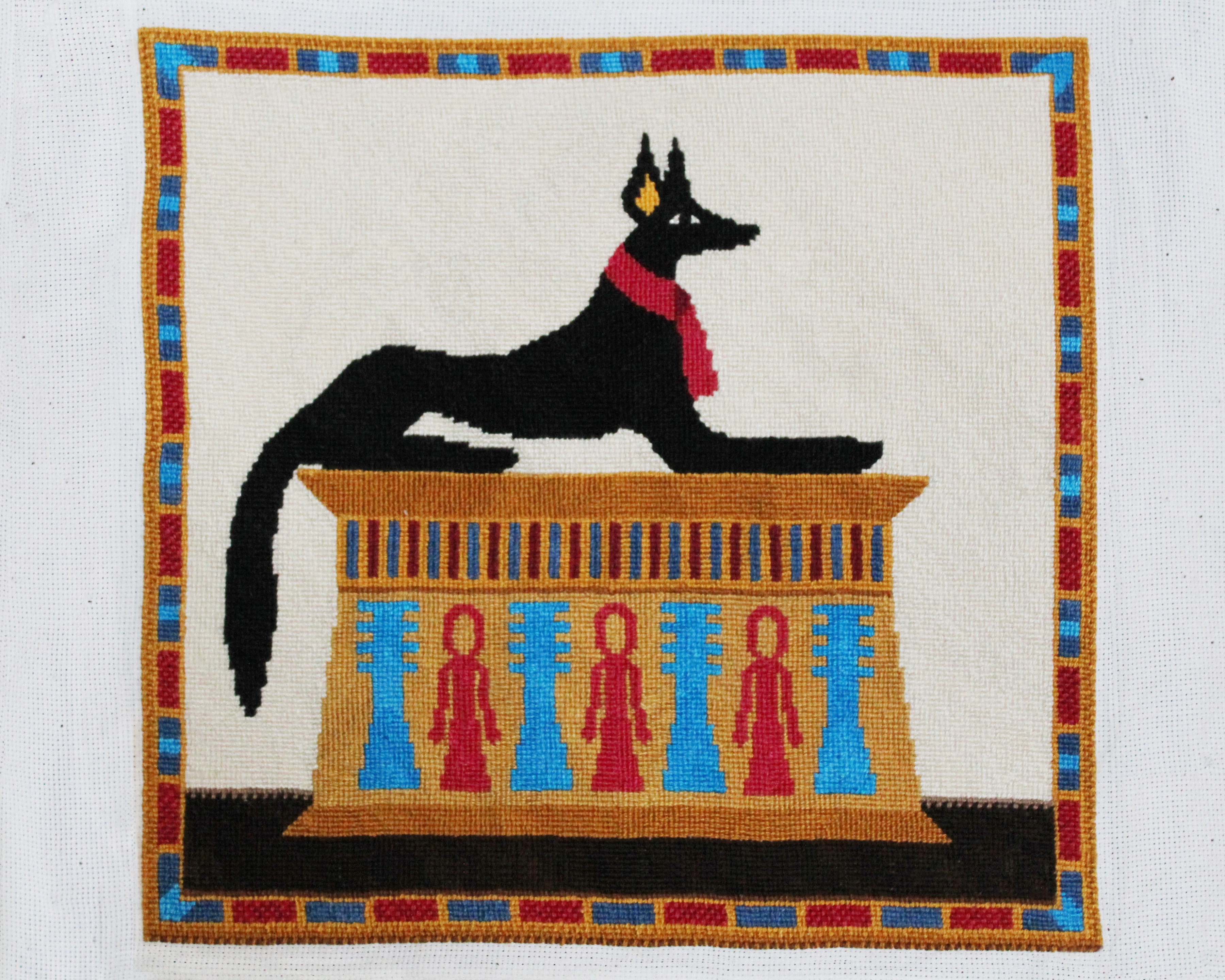 Then I started in on a fairly large Yinepu, seen below. When that project was well underway, I turned to making a matching Yinepu for this Wepwawet. I am thinking I will hem each of the small Jackals separately.