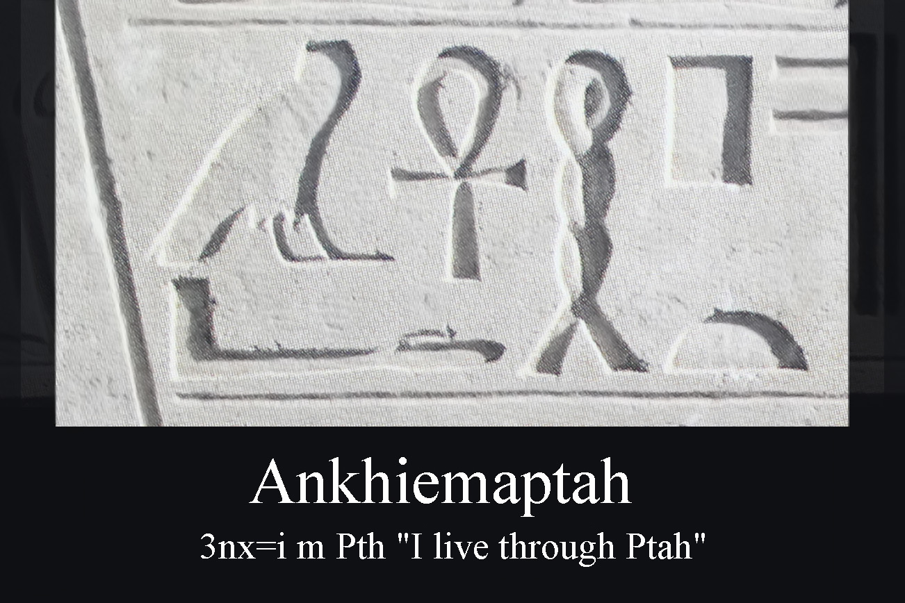 Ankhiemptah: 3nx=i m Pth "I live through Ptah"