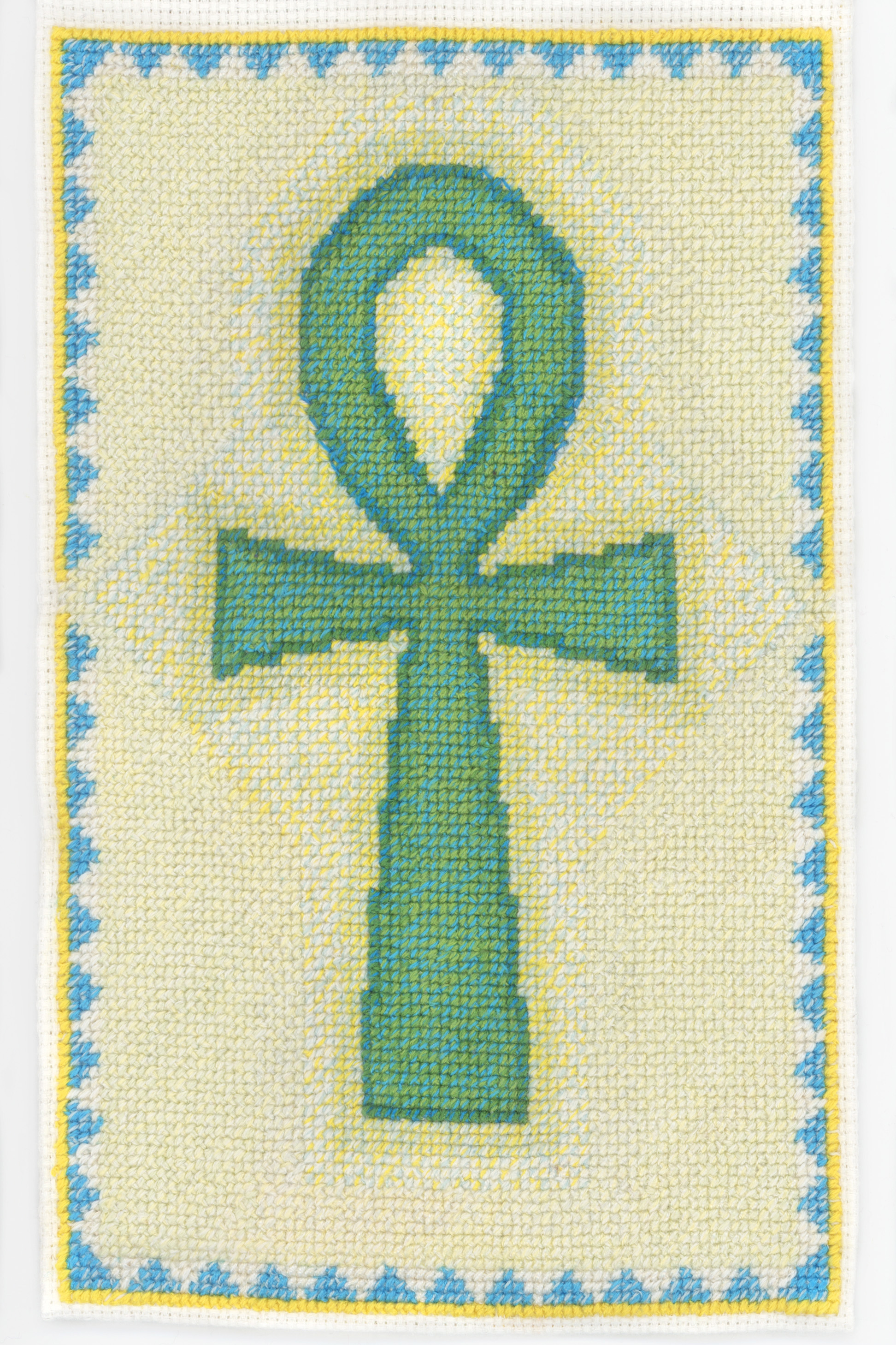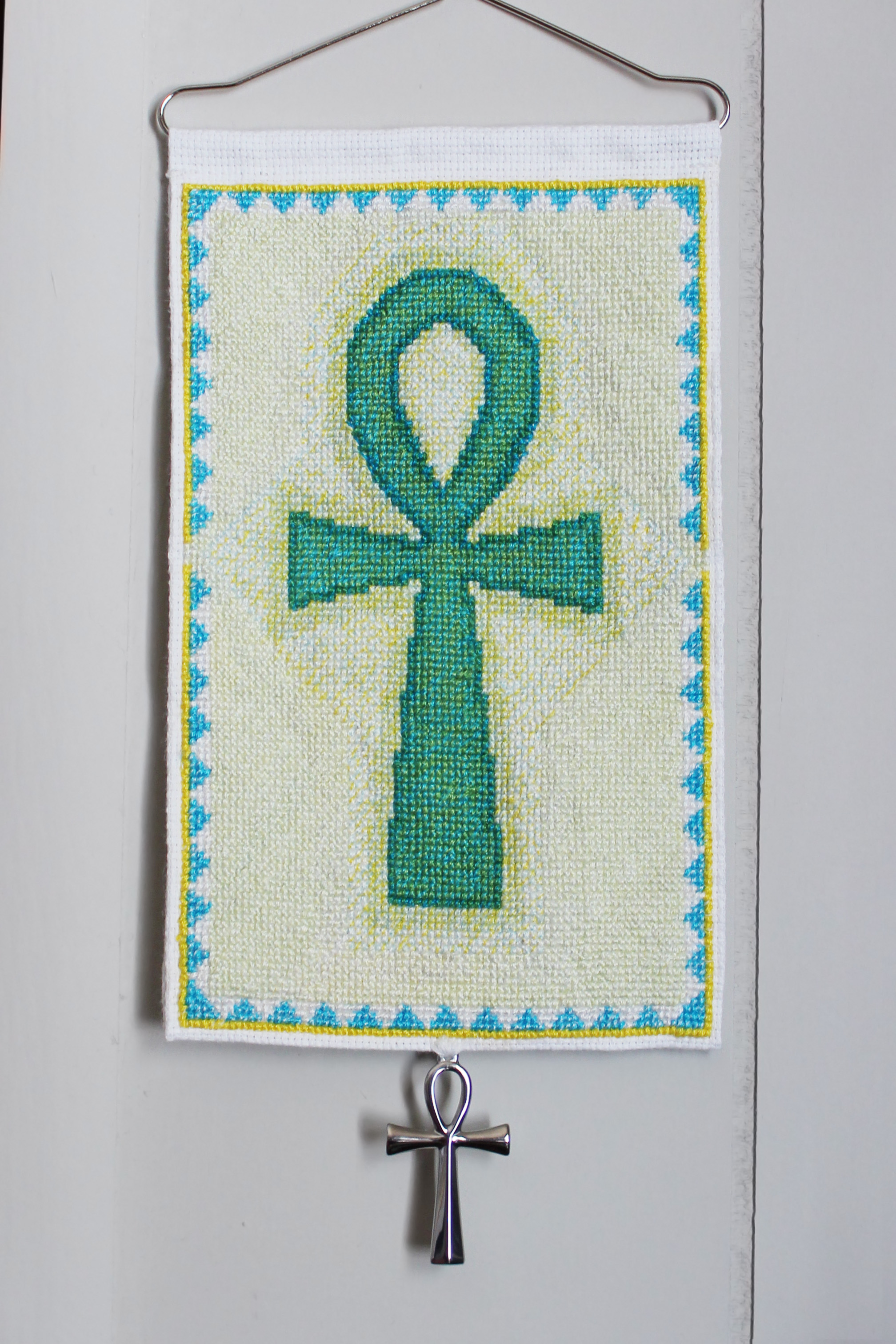 Exactly 11 cm wide (4.33 inches), and 19 cm long (7.48 inches), not including its little ankh pendant.