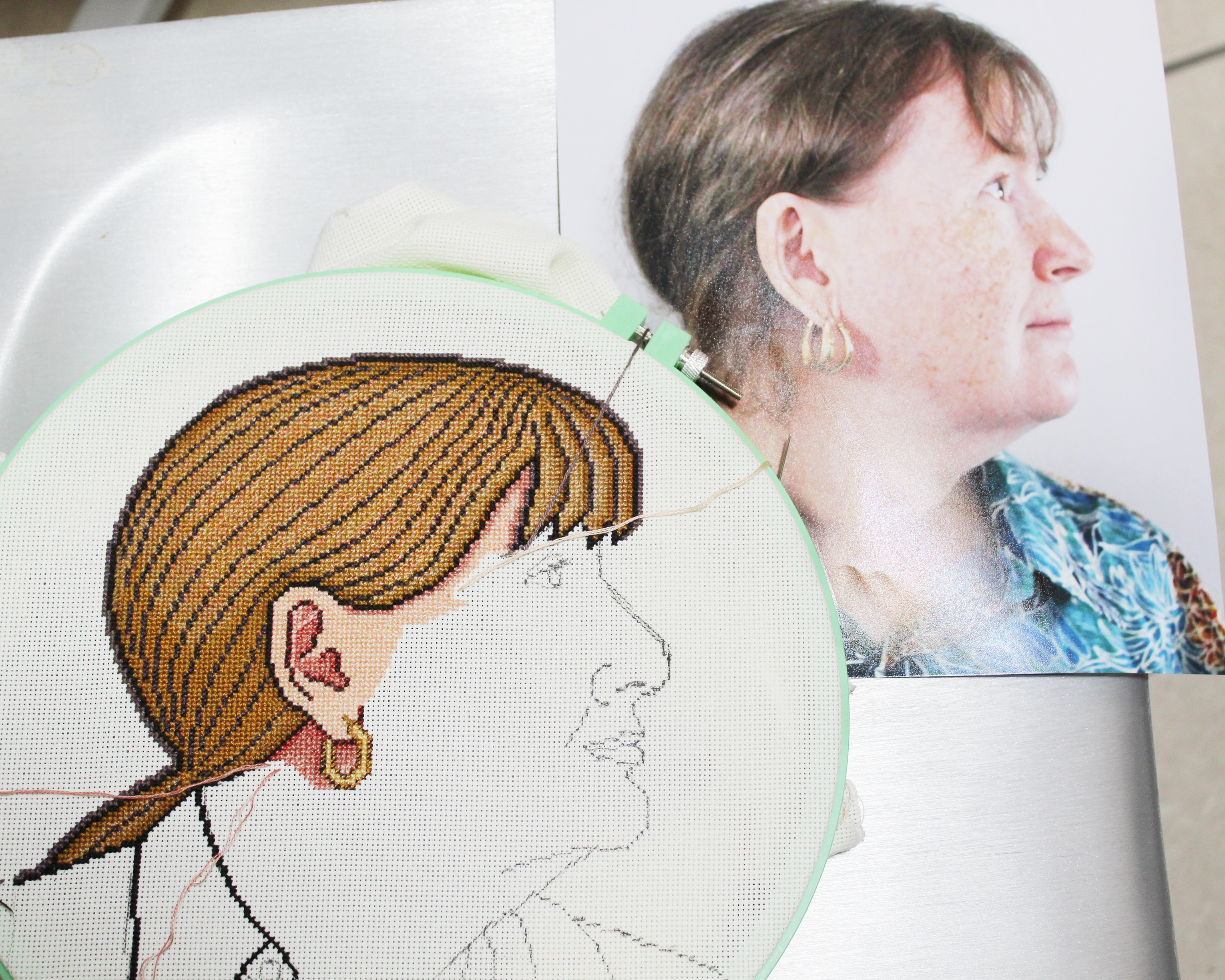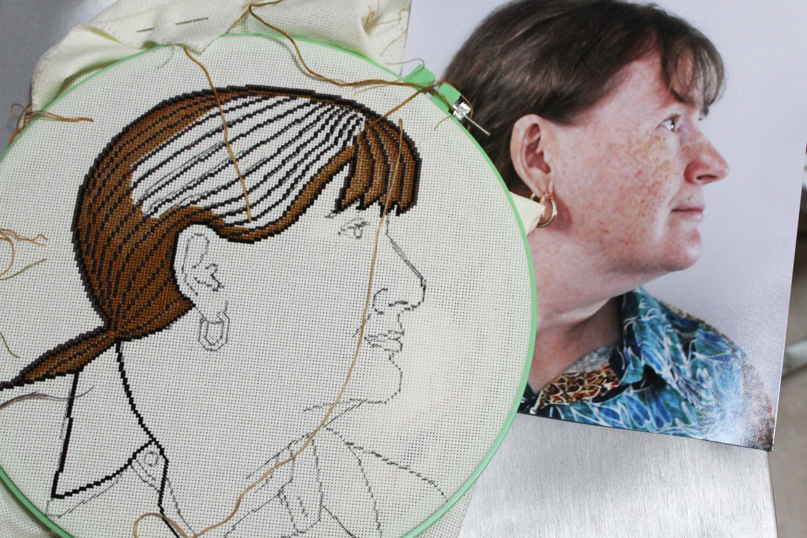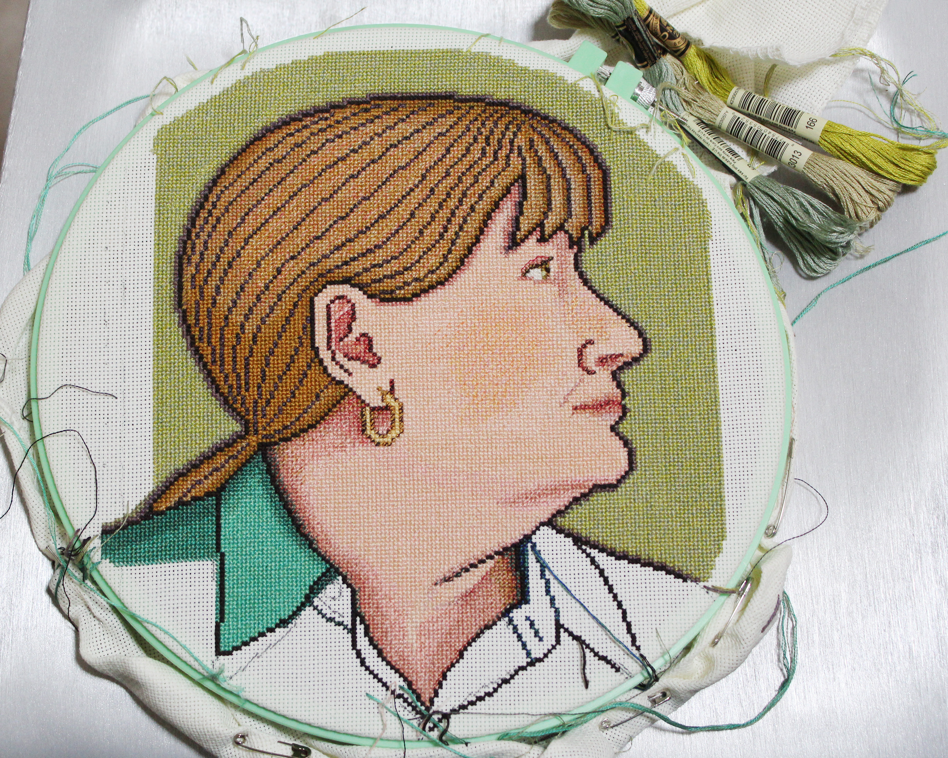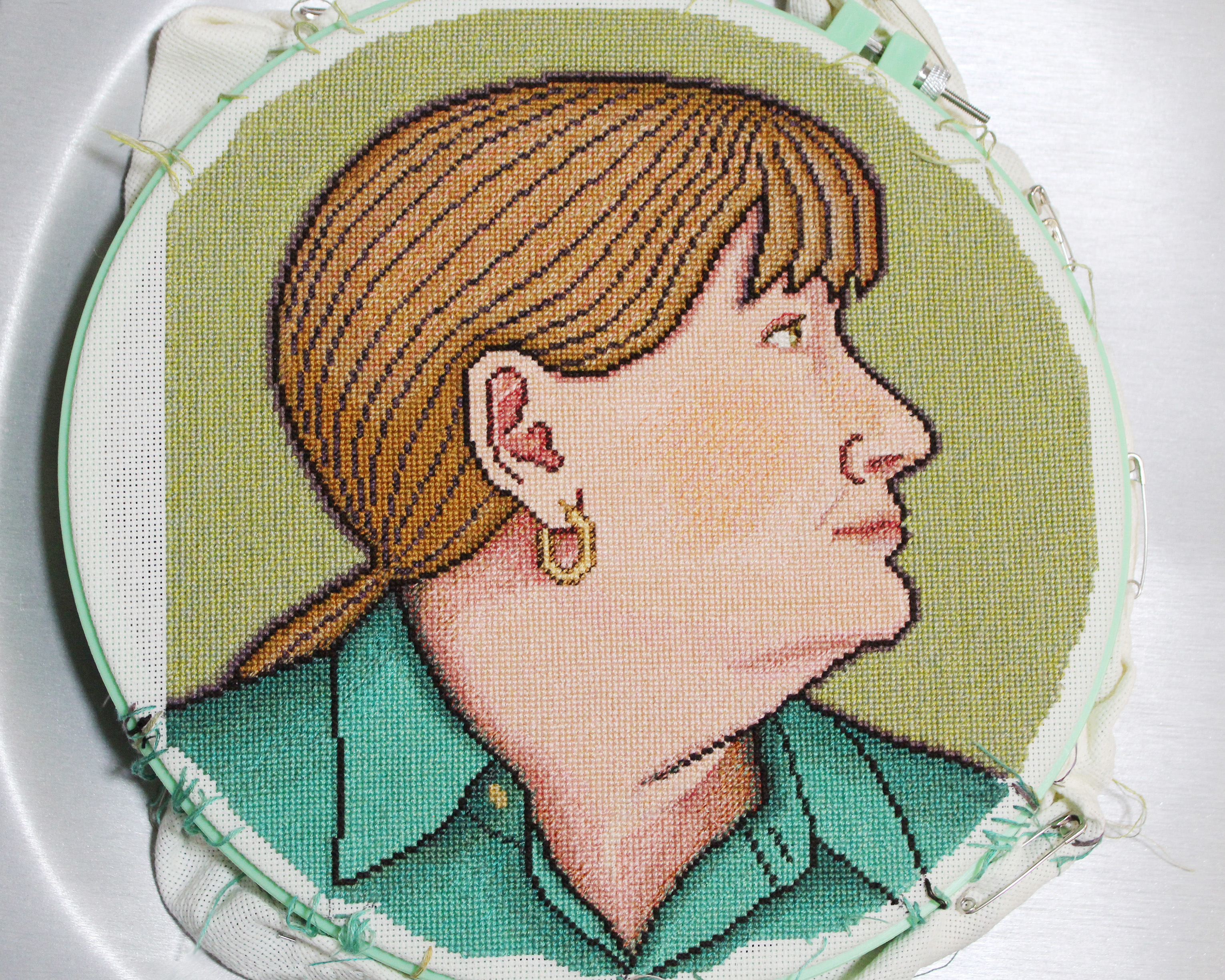 Debating adding a few more rows of space behind the face, before it's off the hoop for further work.