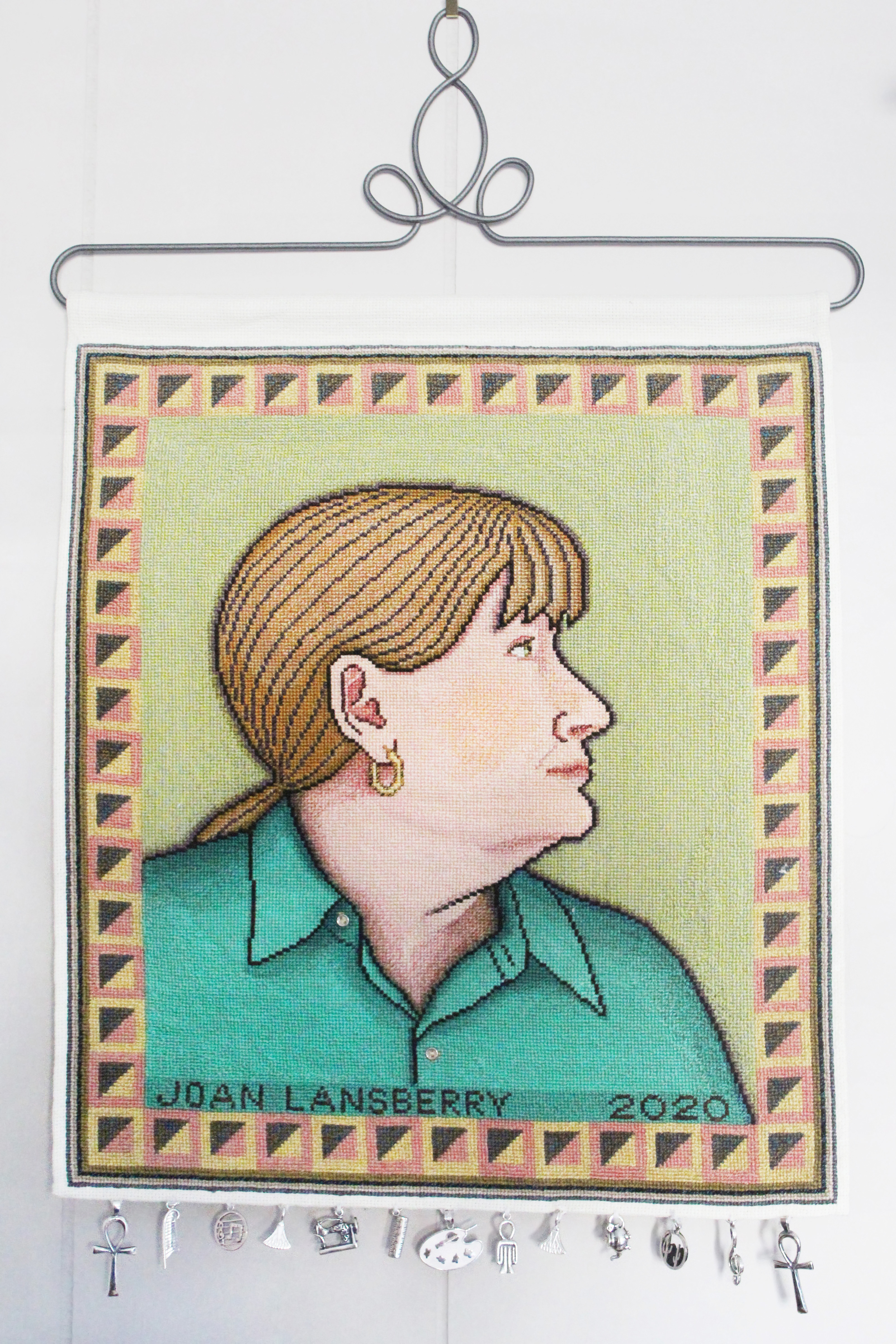 Ankh, feather of Ma'at, round with musical notes, silver lily, sewing machine, ruler, artist's palette, Tyet, the other lily, tea pot, desert scene, musical treble clef, the other ankh