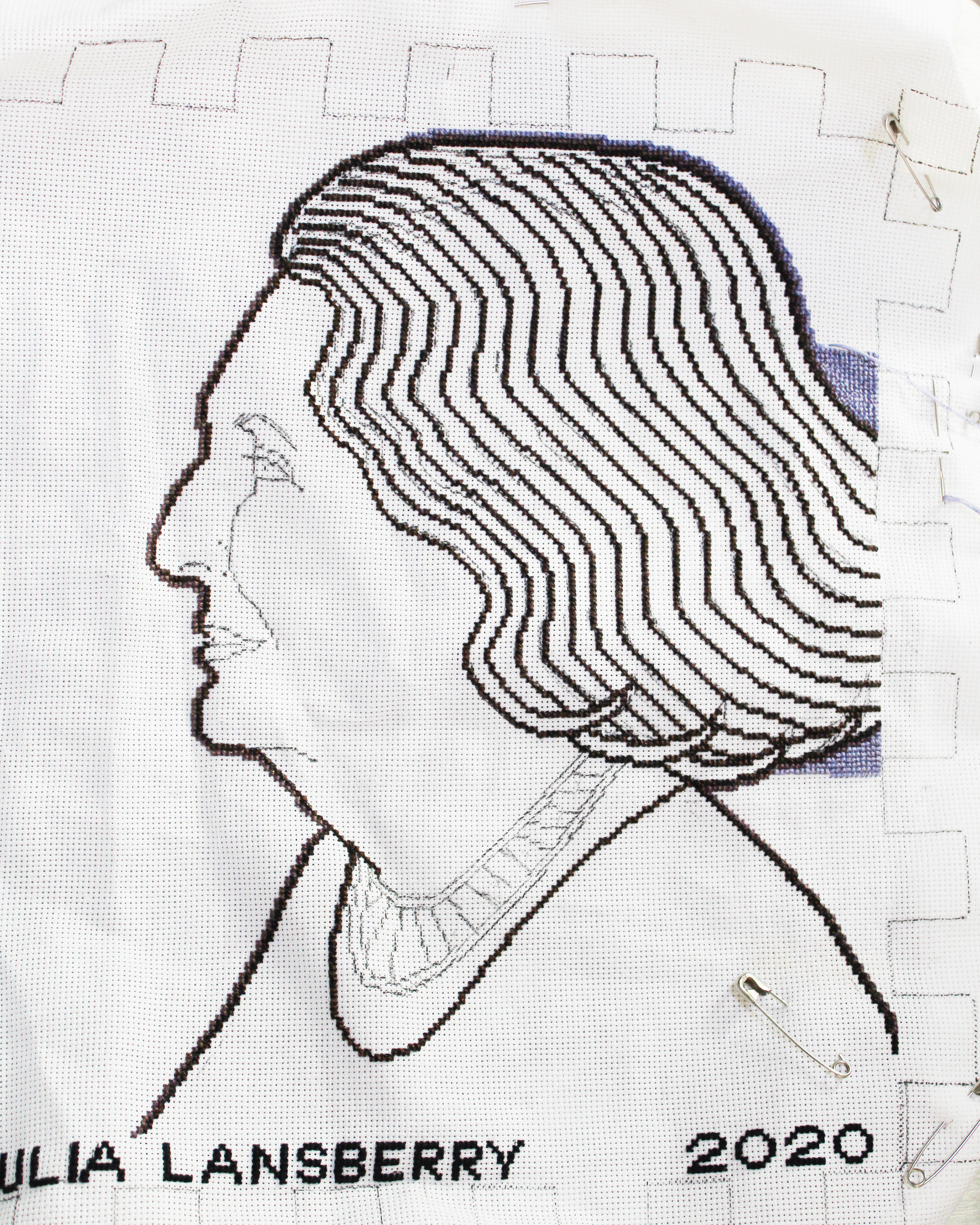 I am going hoop-less, because my own portrait has a 'hoop ghost', which may not be obvious to others, but of which I am keenly aware. I checked the online advice. While the hoops are necessary for the needlepoint, they aren't so necessary for the cross stitch. The nature of the "continental" stitch, used 'coming' and 'going' to make the X neutralizes the tendency to warpage.