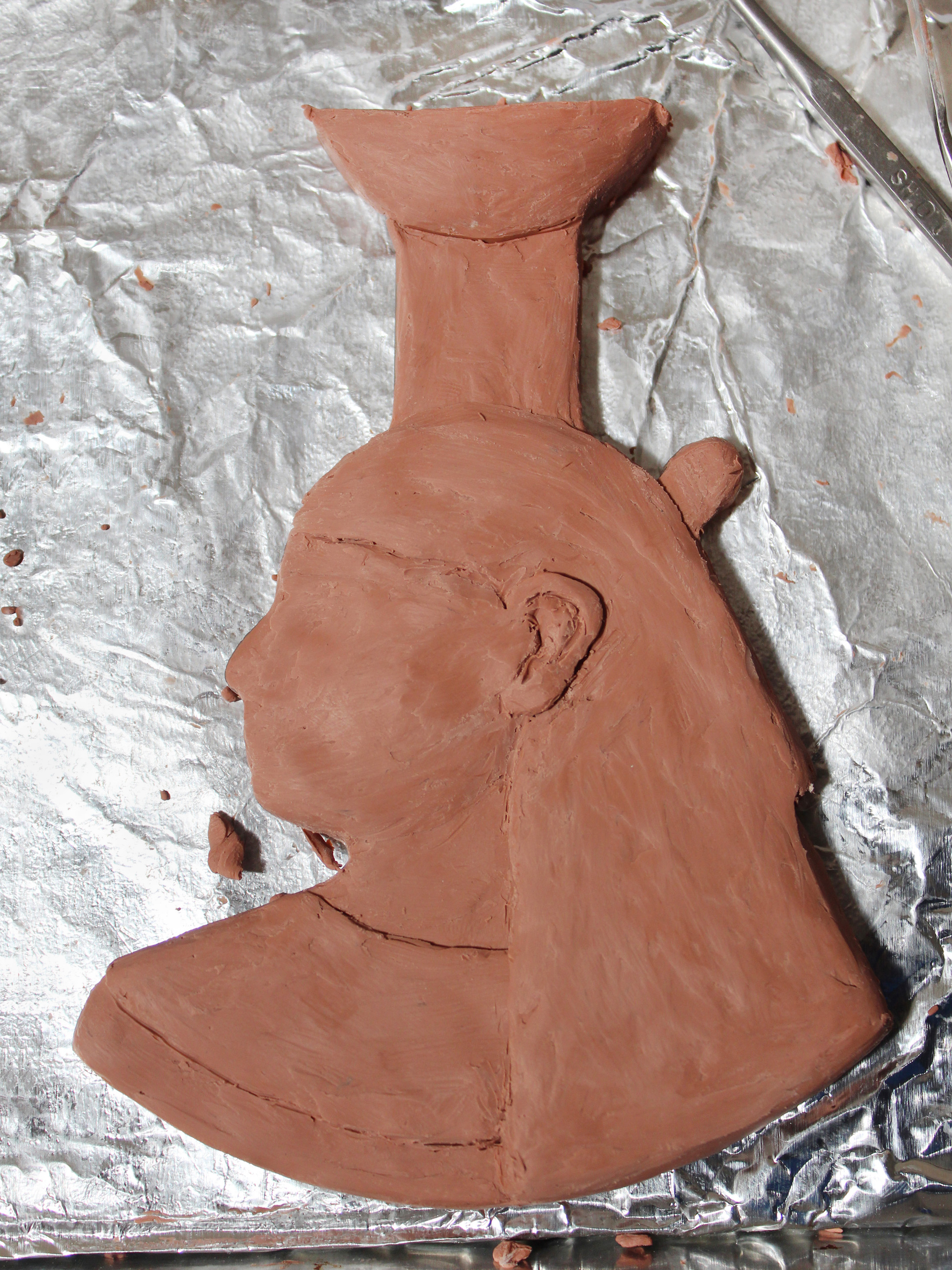 Monday, March 15, 2021 B Clay Application is Happening! 2:23pm I have way more hope that the plans for bronze casts will actually come into fruition. Friday, March 19, 2021 She Has a Face! 7:05am I feel such relief, as the eyes are the hardest part. The reference photo, to compare.... And Nebthet's relief has AN EAR!