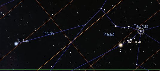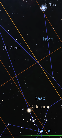 The sky thirteen hours and thirteen minutes after Julia's birth, where Aldebaran is four degrees about the western horizon.