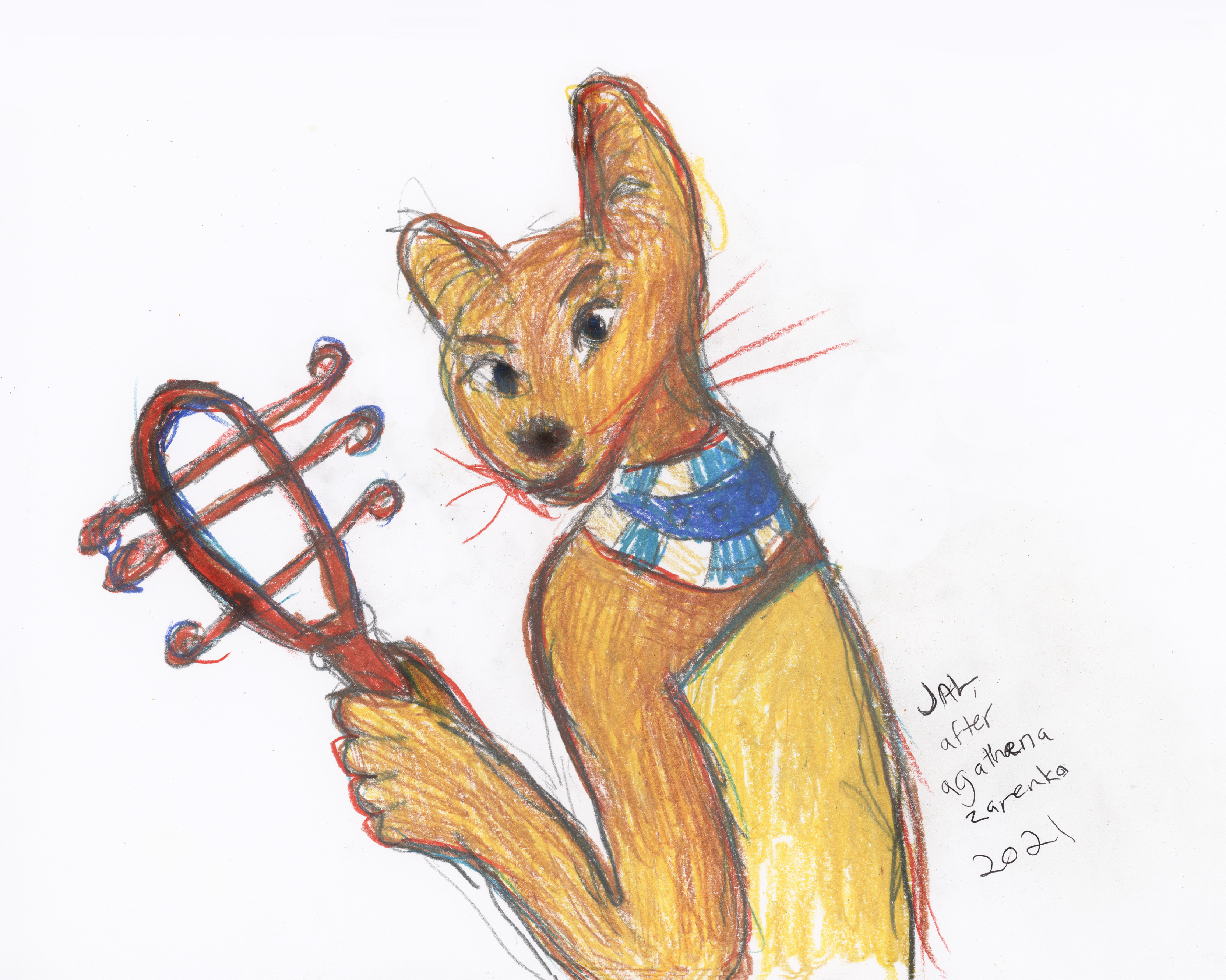 Saturday, October 23, 2021 Playful Sketch of Bast 3:07pm Inspired by https://agathenazarenko.com/les-compagnes-d-isis Sistrum inspiration: Bronze Sistrum at Met Museum
