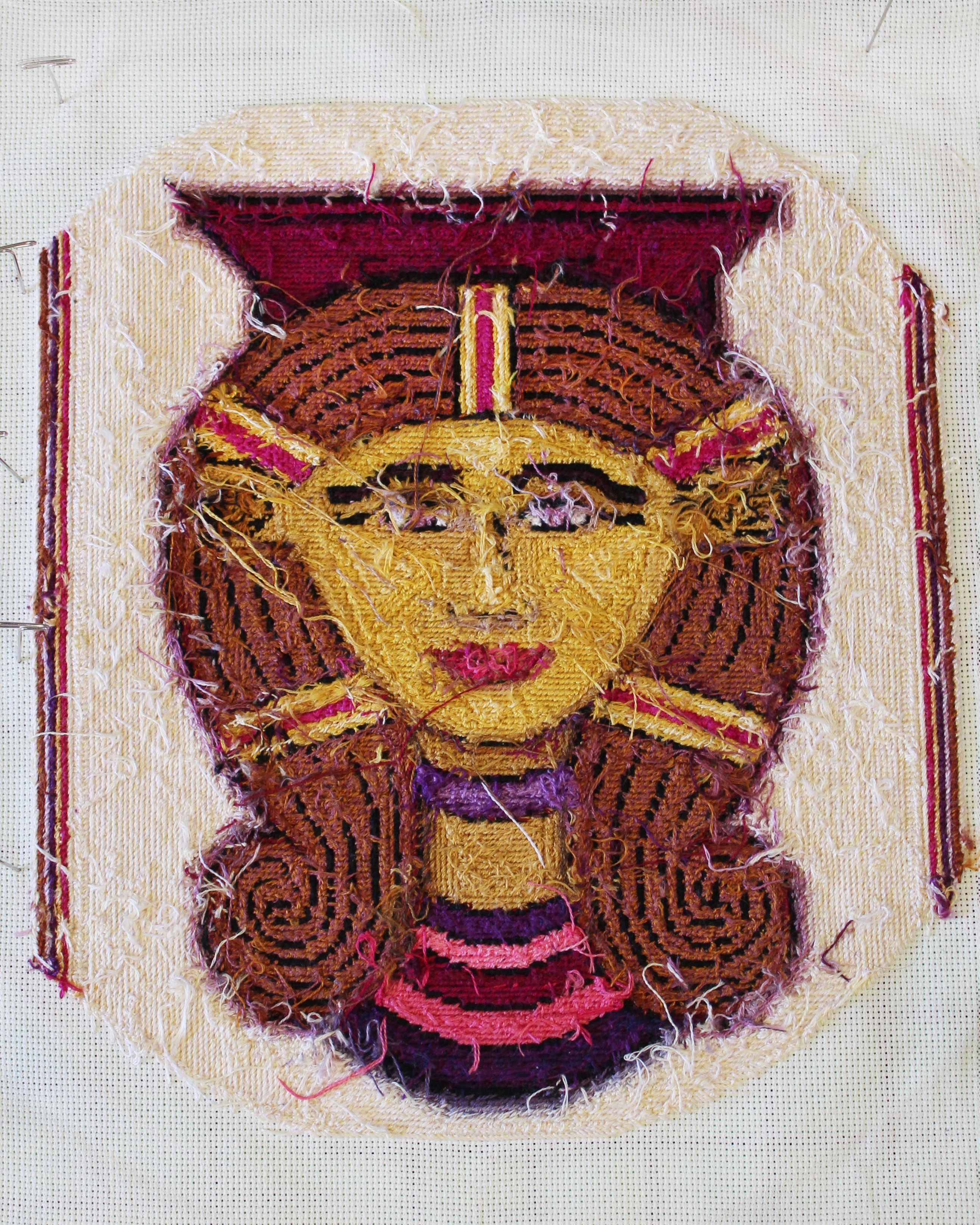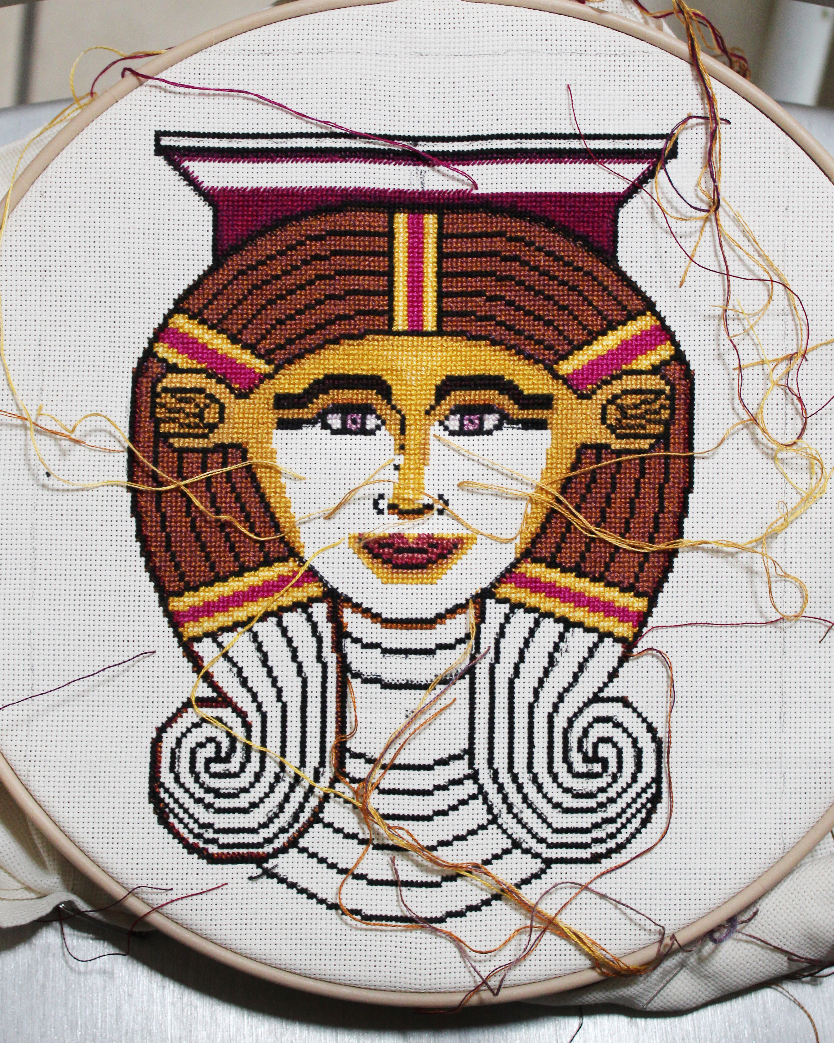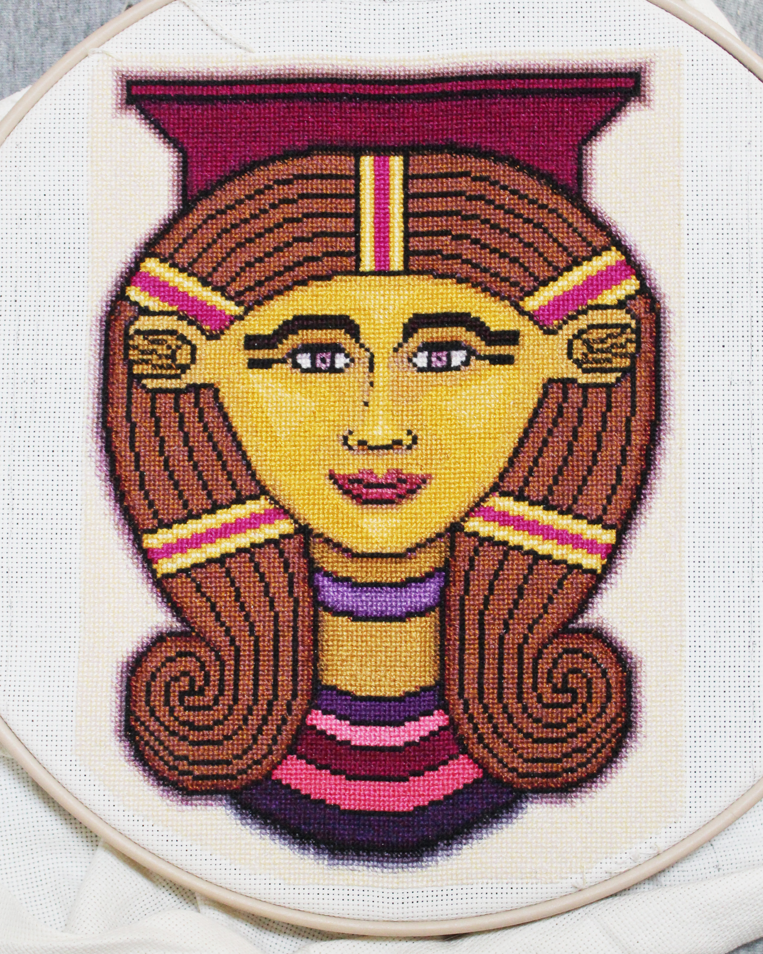Sunday, December 19, 2021 More Progress on Purple and Gold Hathor 8:39am I even like her from the back side! Now to finish the corners, borders, hemming and....