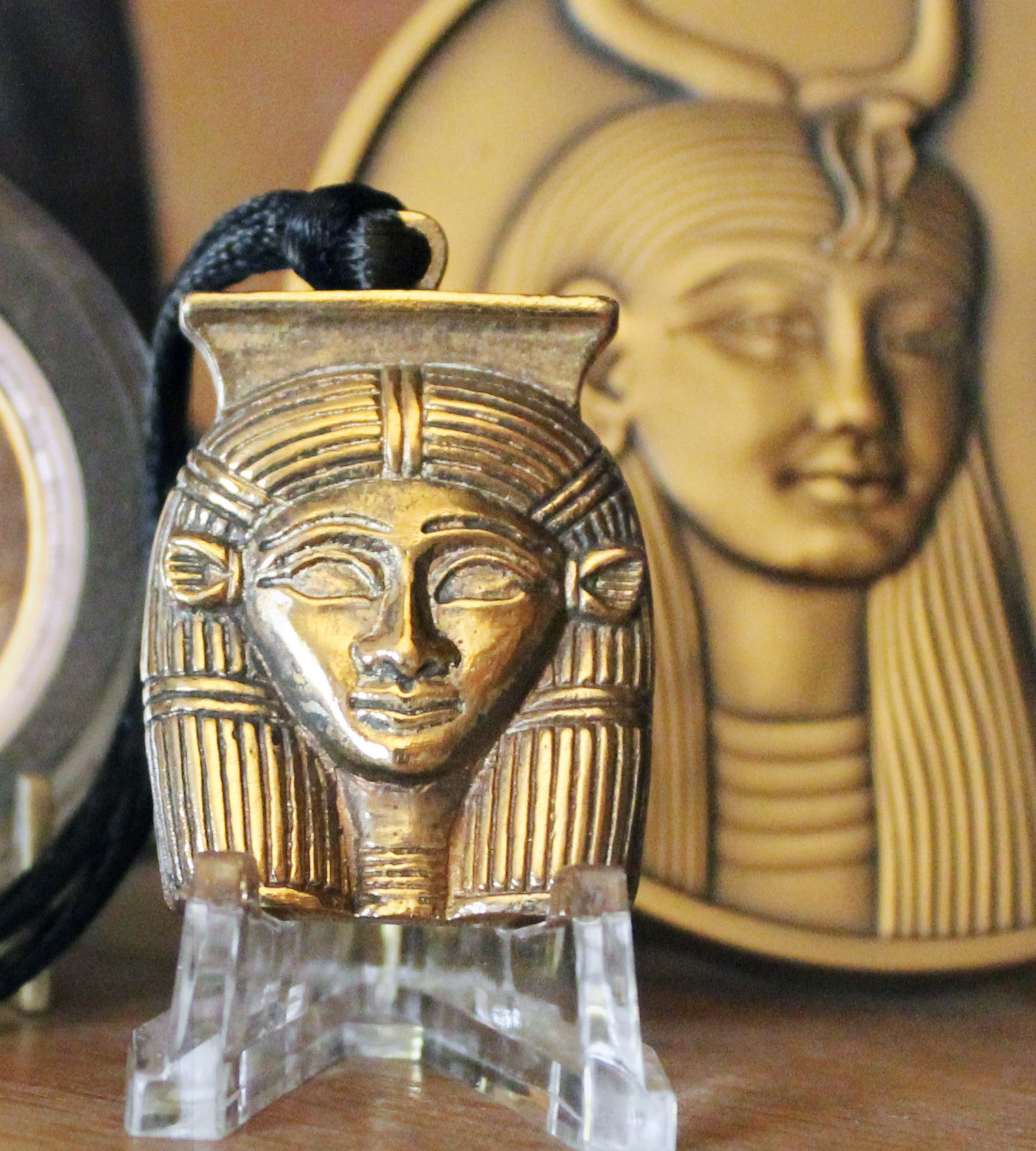 This lovely Hathor pendant inspired me, (by Tematika on Etsy). (It wanted a special display spot.)