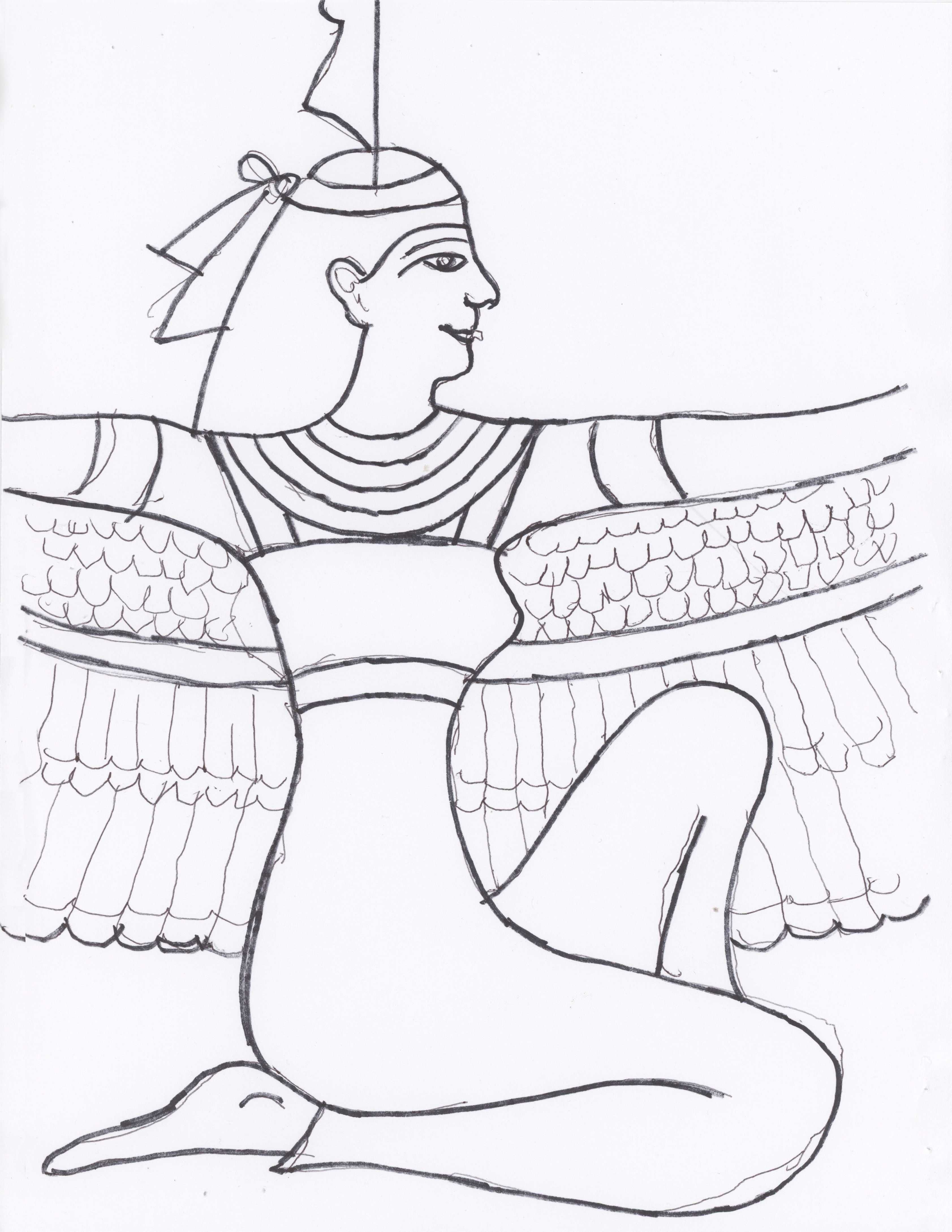 The middle feathers are a 50/50 blend of the lighter and darker blend, while the lower feathers are 3/4 lighter mixtures, and the feathers closest to Ma'at are all the lighter 826/304 blend.