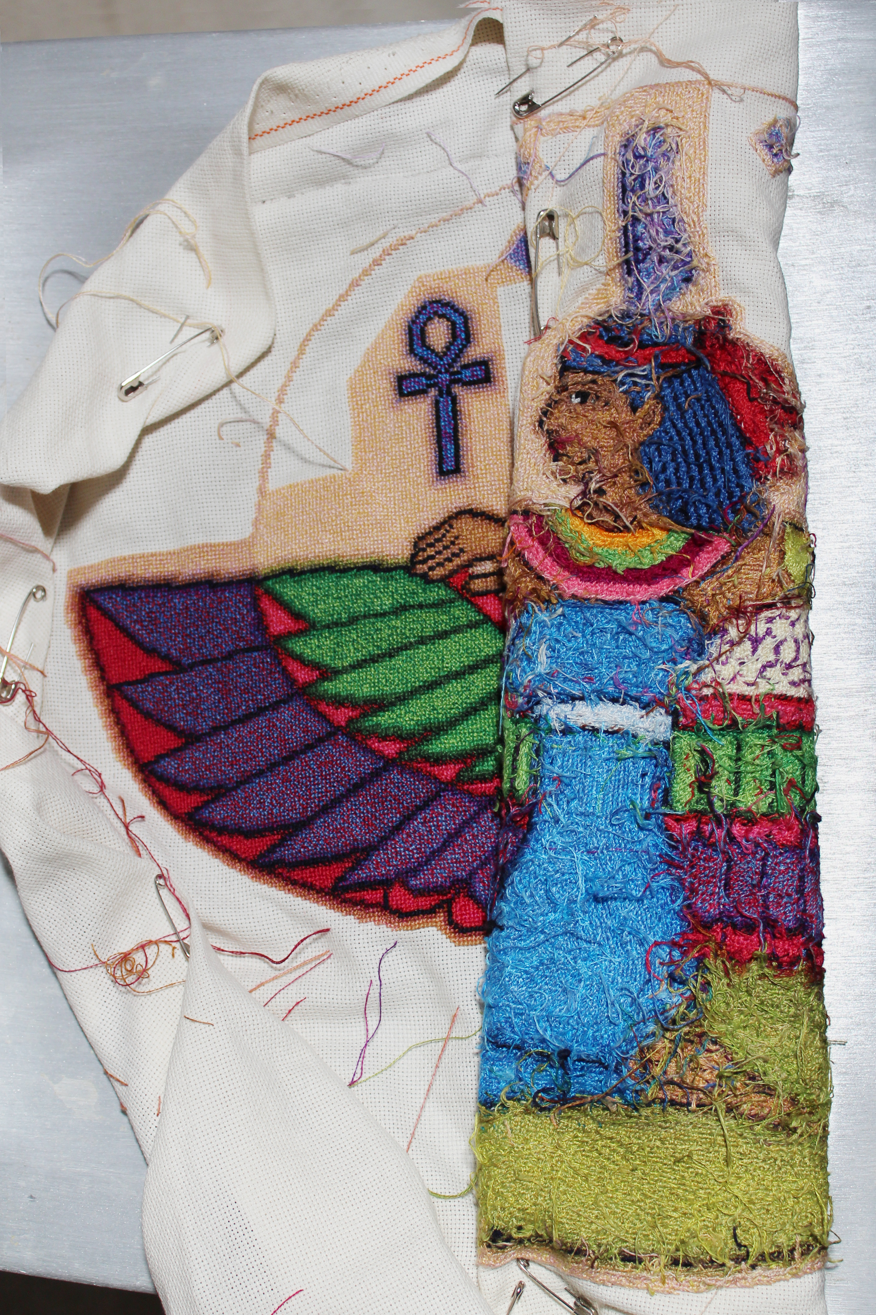Above is the last progress photo of the winged Ma'at tapestry. It's been a long while, but finally, I have a new progress photo: