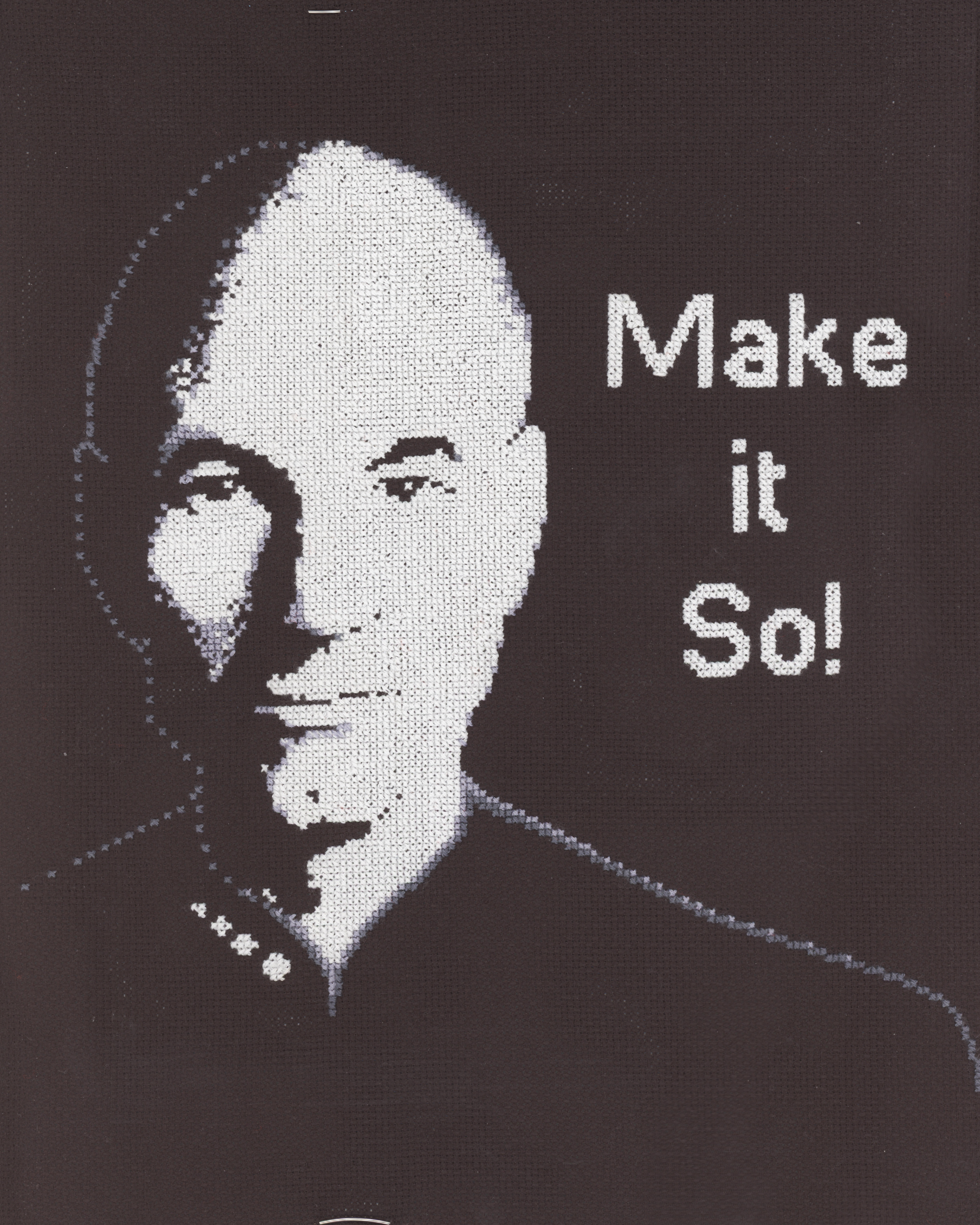 I'm almost finished. I'd hoped to have Picard's face on our wall before the end of the year, but... soon!