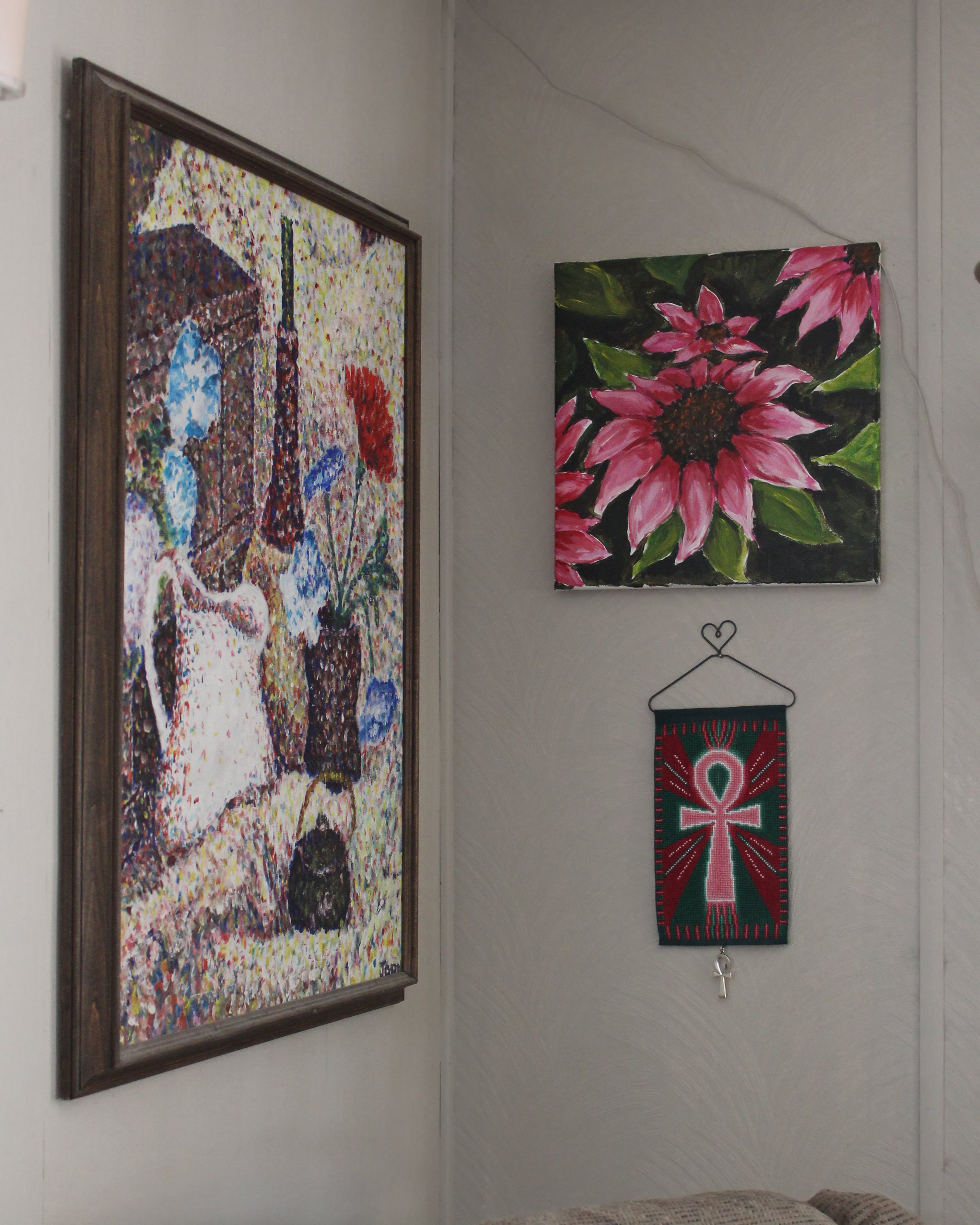 I thought this ankh would be the last of them, but then I glanced at the pink flowers I painted in a "Sip and Paint" held last year, and thought PINK! I've done a pink ankh before, but that one was in tones of pink and navy.