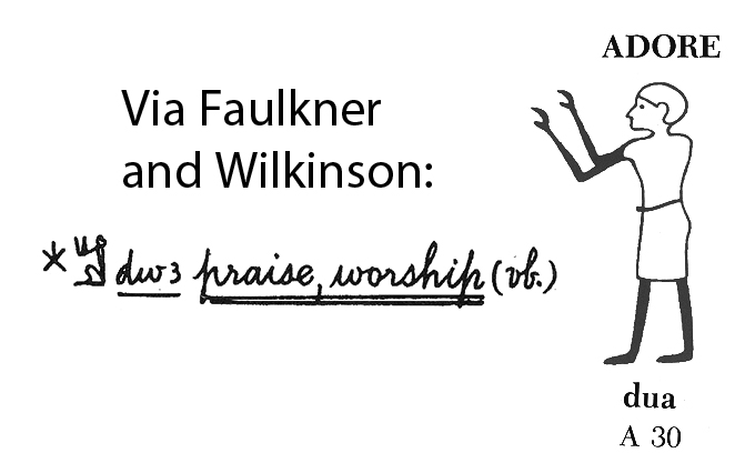 Lisa Manniche describes the scene to the left of the hymn: "Preceding the whole group are two ladies adorned with flowers. One, who raises her hands [in “Dua” position], is called 'the one who sweetens evil'. a phrase which must surely proclaim the role of music in this particular scene. The caption for the drummer and harpist is unusually eloquent: 'The members of the choir take up their instruments and play them. The songstresses in full number adore the Golden Goddess and make music to the Golden Goddess: they never cease their chanting.' The lutenist and gesticulating lady are accorded the following lines: 'We dance for you, we dance for you, the words required by the adorers'."