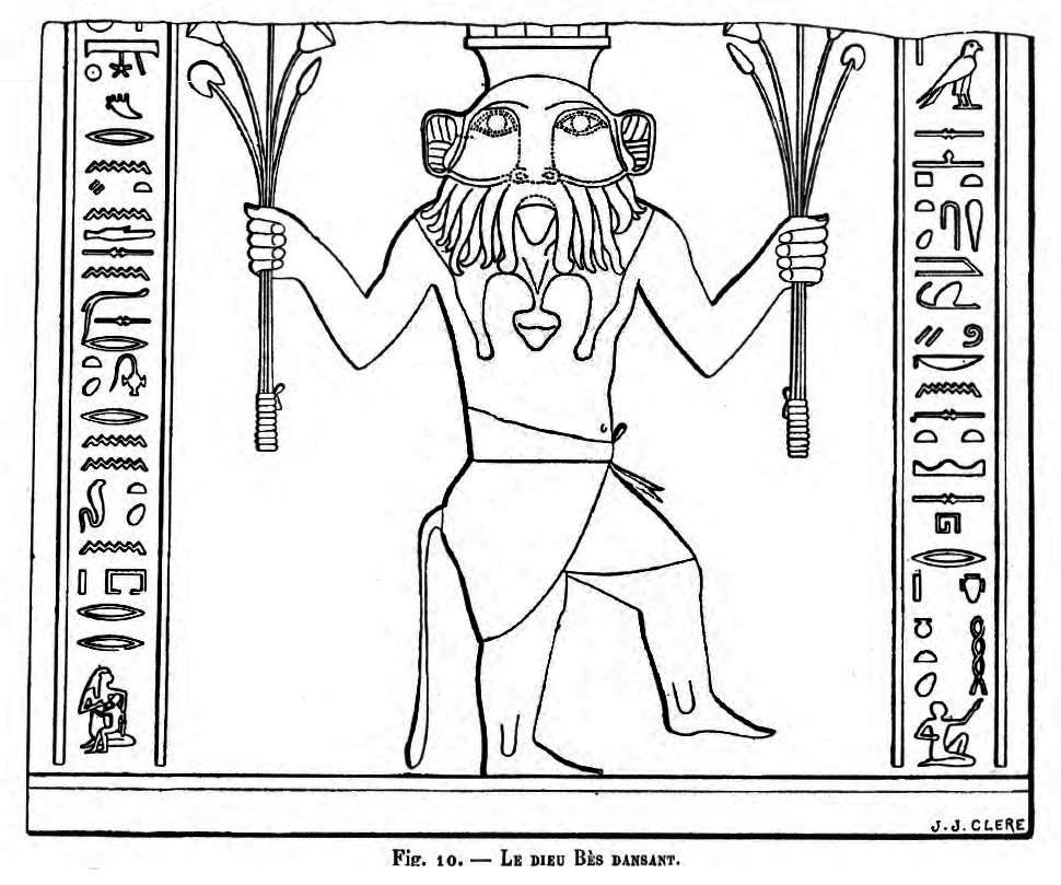 The drawing is from “Rapport sur les fouilles de Medamoud: Les Inscriptions, Etienne Drioton”, (1926 FIFAO), page 29. If it weren't for Drioton's publications, much of this would be now lost to us. This image of Bes accompanies a hymn to Hathor as the returning Eye of the Sun as she returns at winter solstice. John Coleman Darnell explains: