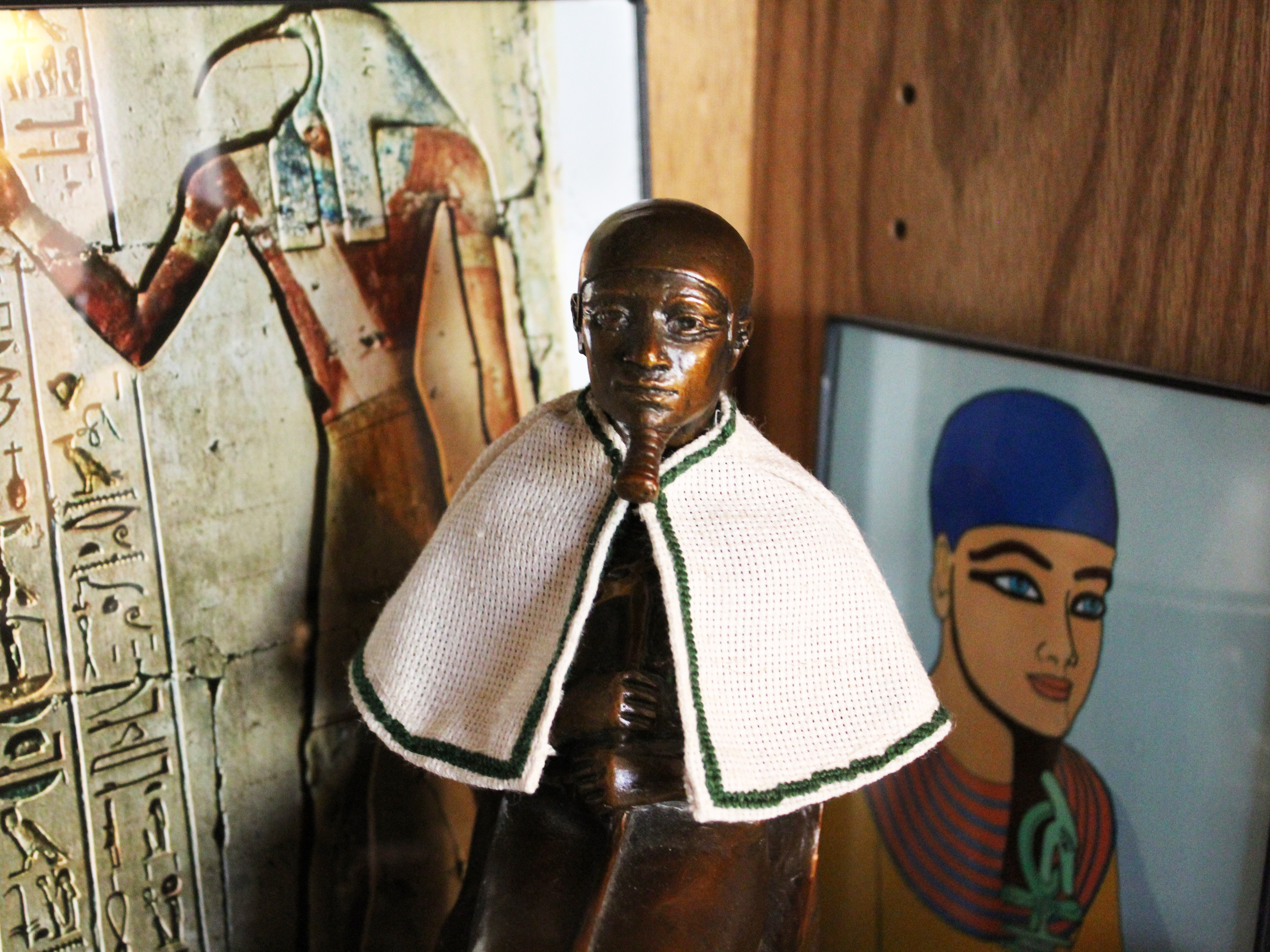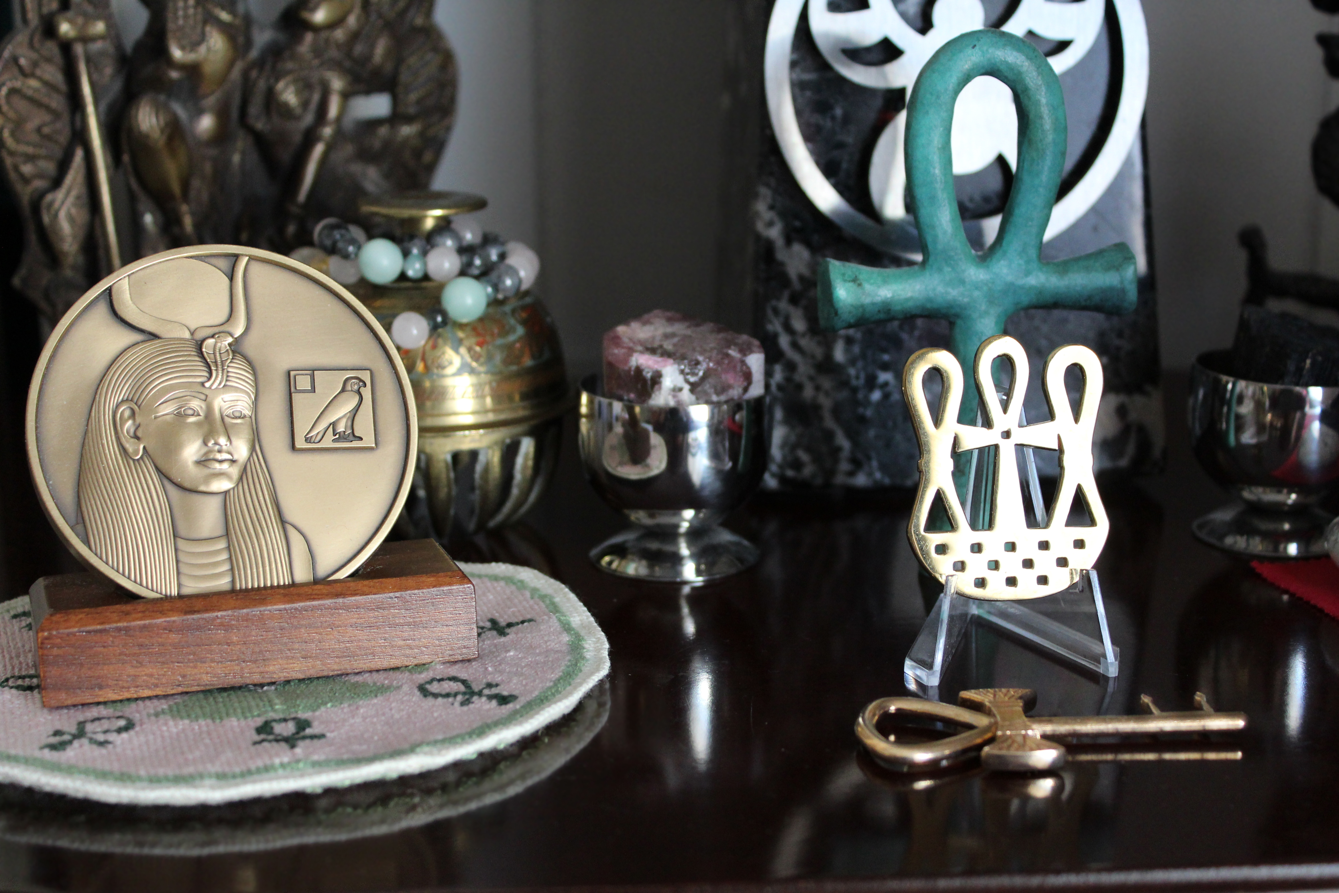 There's been just a few new additions to the shrines. The above was inspired by the key to the door of the temple at Abu Simbel, which is the shape of an ankh. But the artist made it more fancy, to have the floral ends.