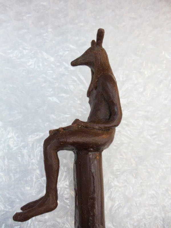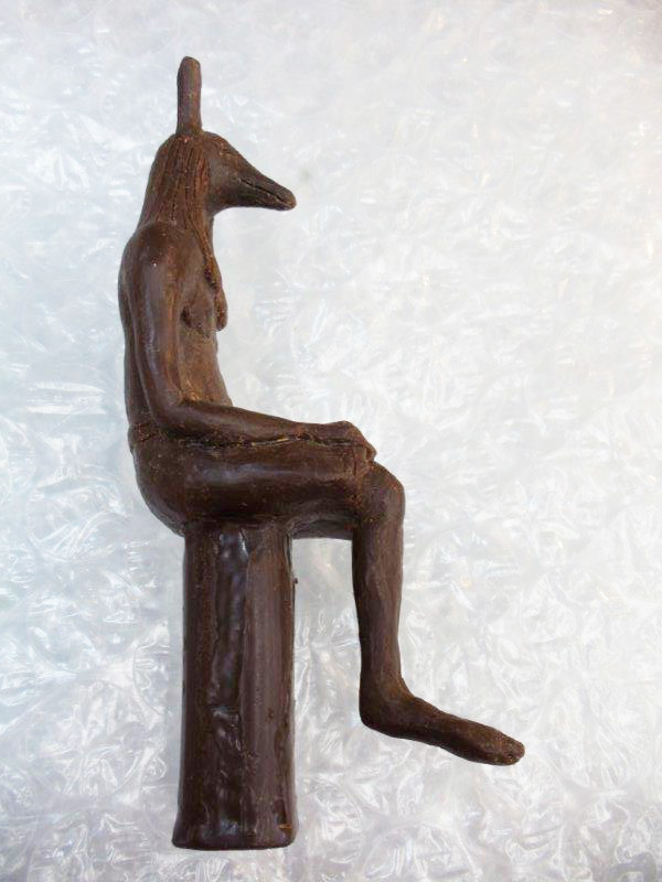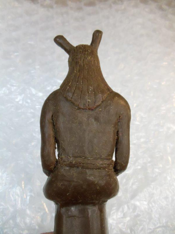 I think the pillar upon which he is seating is necessary to make the channel into which the hot molten bronze will flow.
