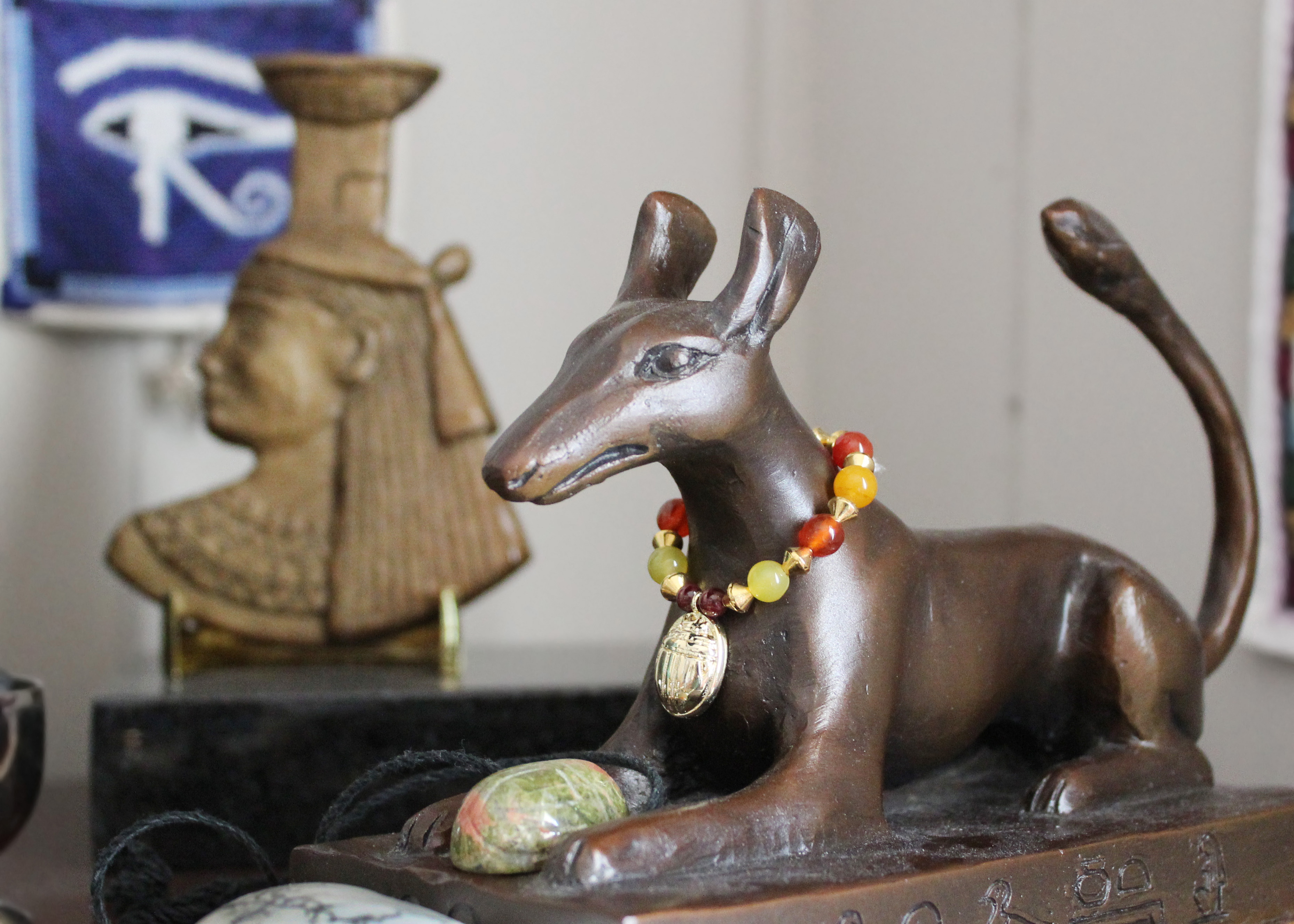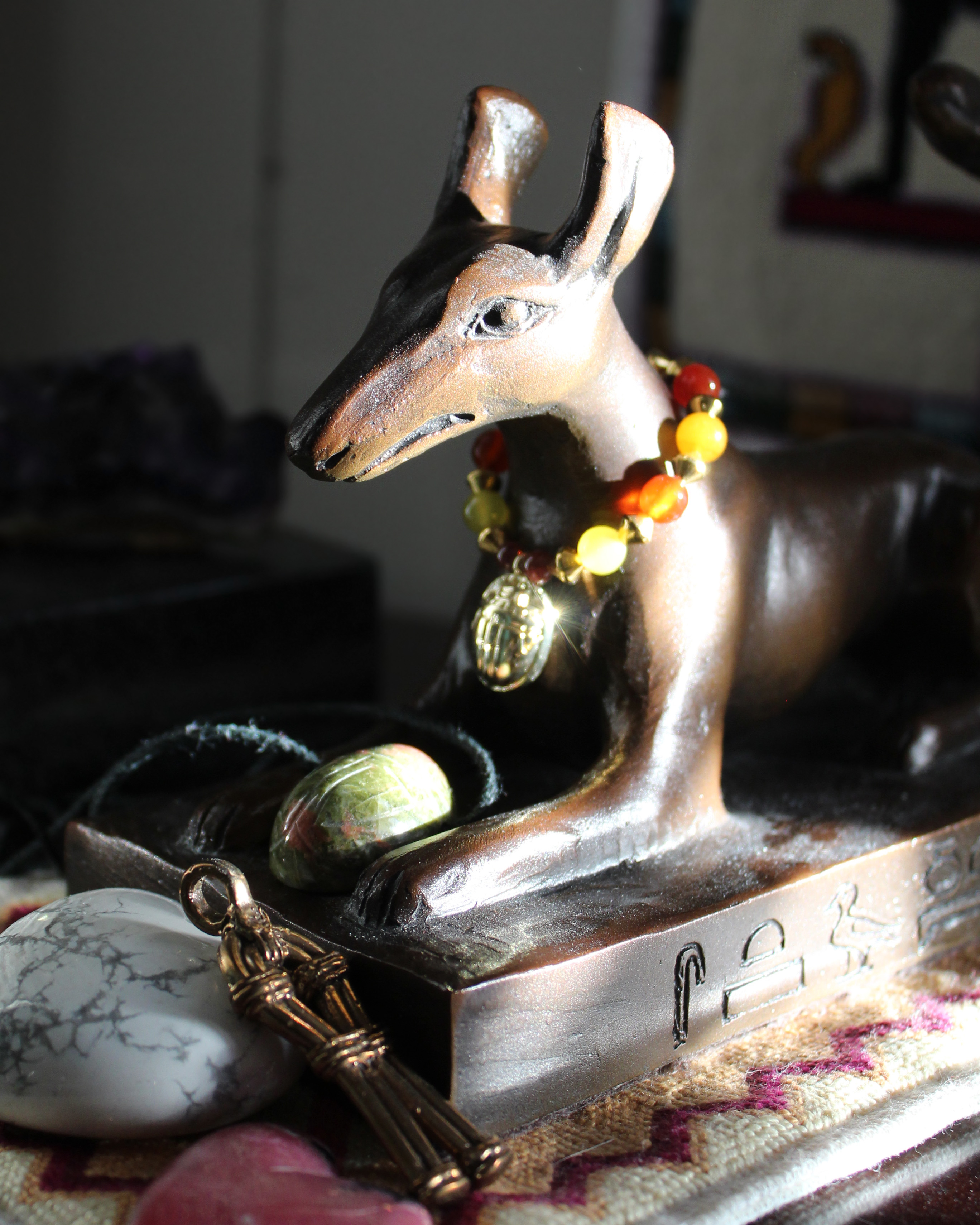 I added to Hathor's pile of pink crystals...
