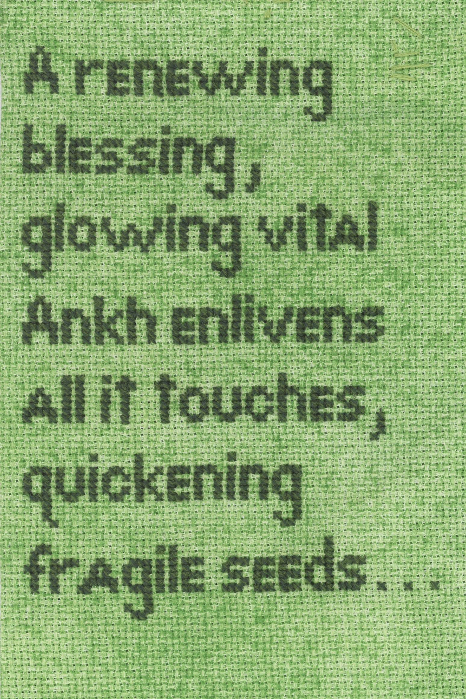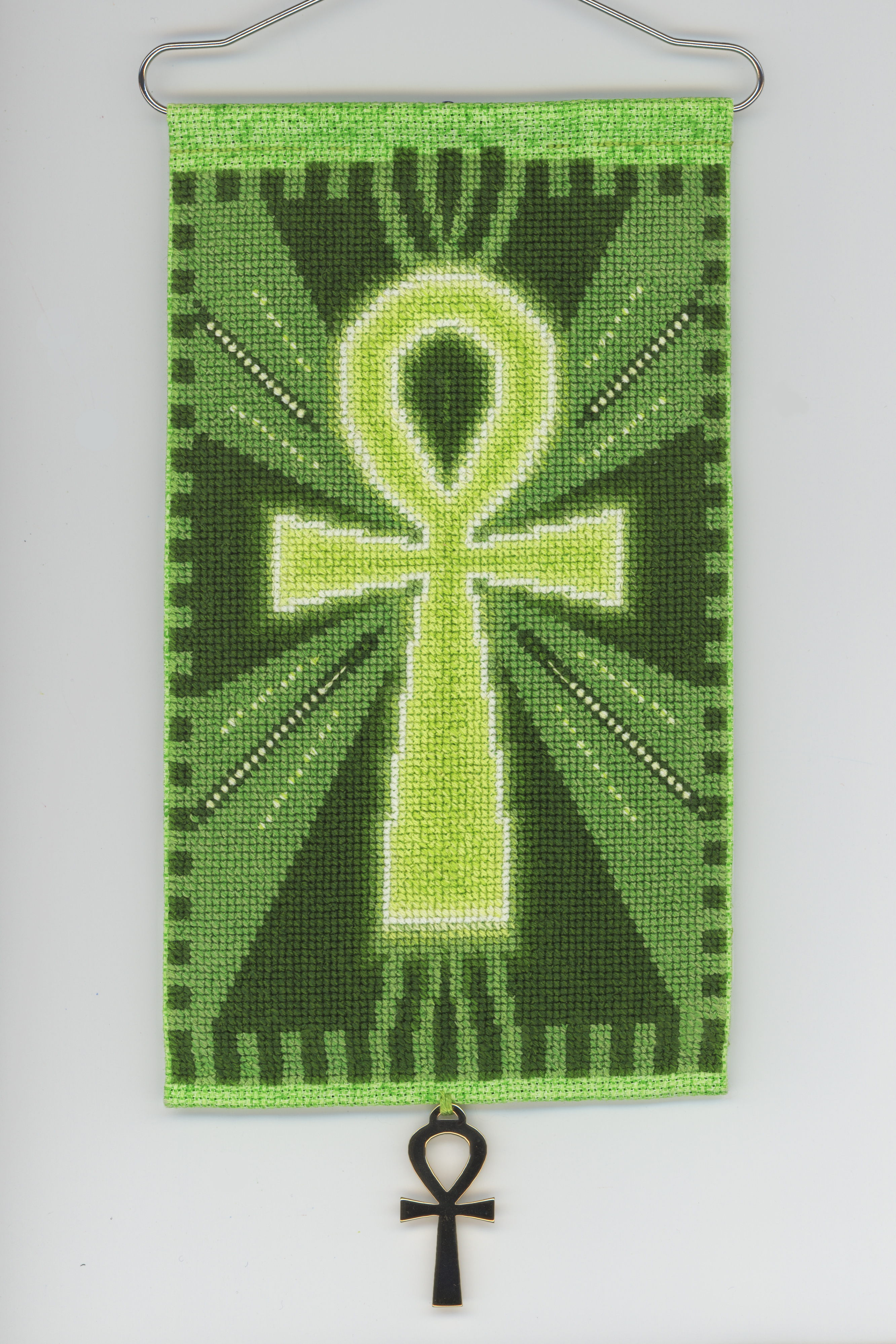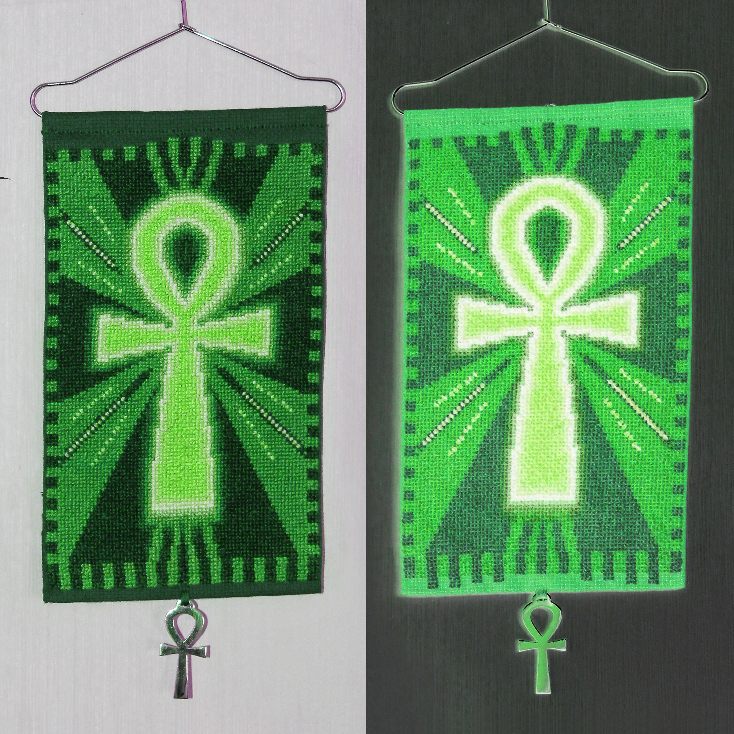 These two ankhs have a poem fragment on their back, owing to using a larger piece of canvas: