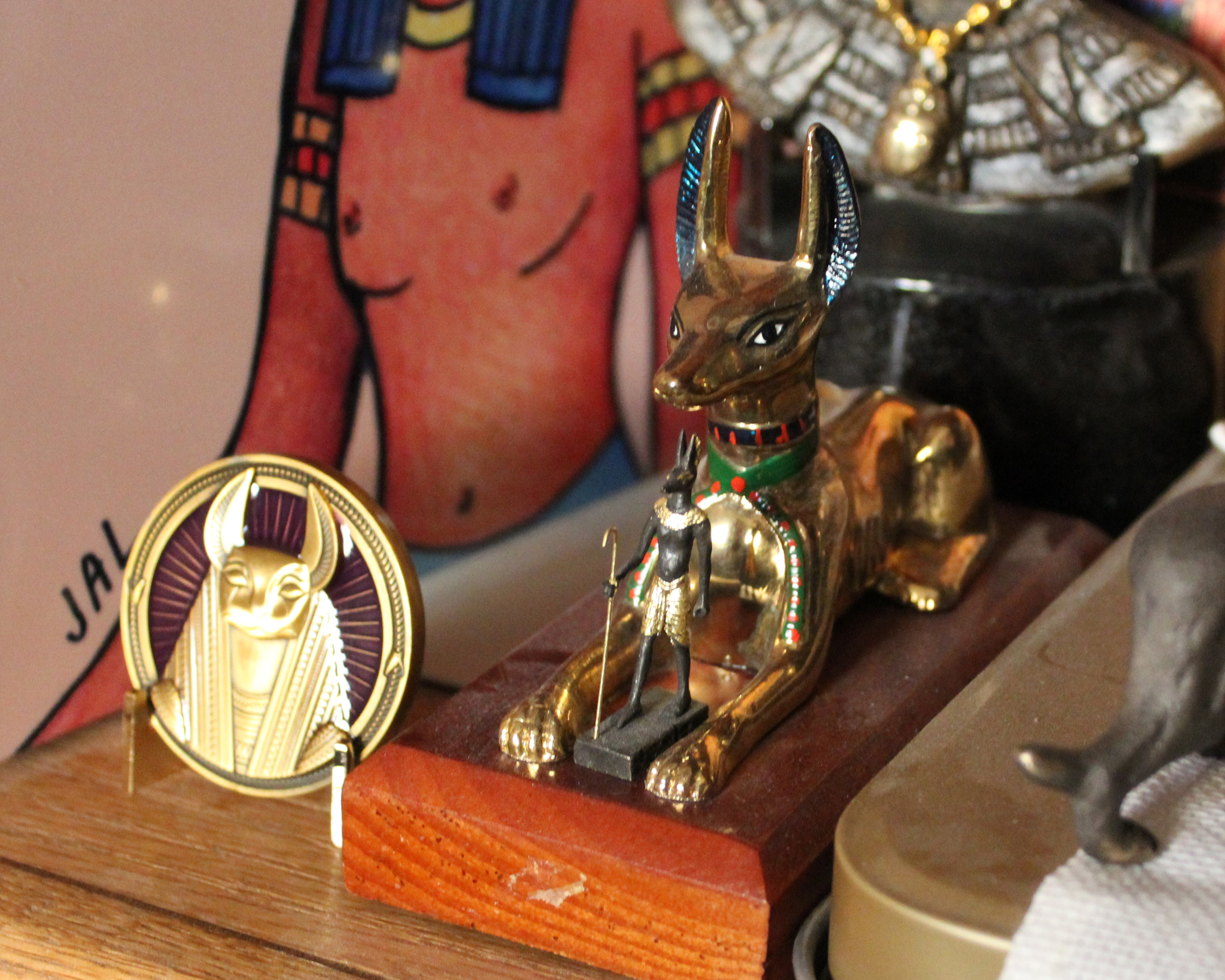 The tiny statuette is by Neil Carter Miniatures, and the larger statue came from Egypt.