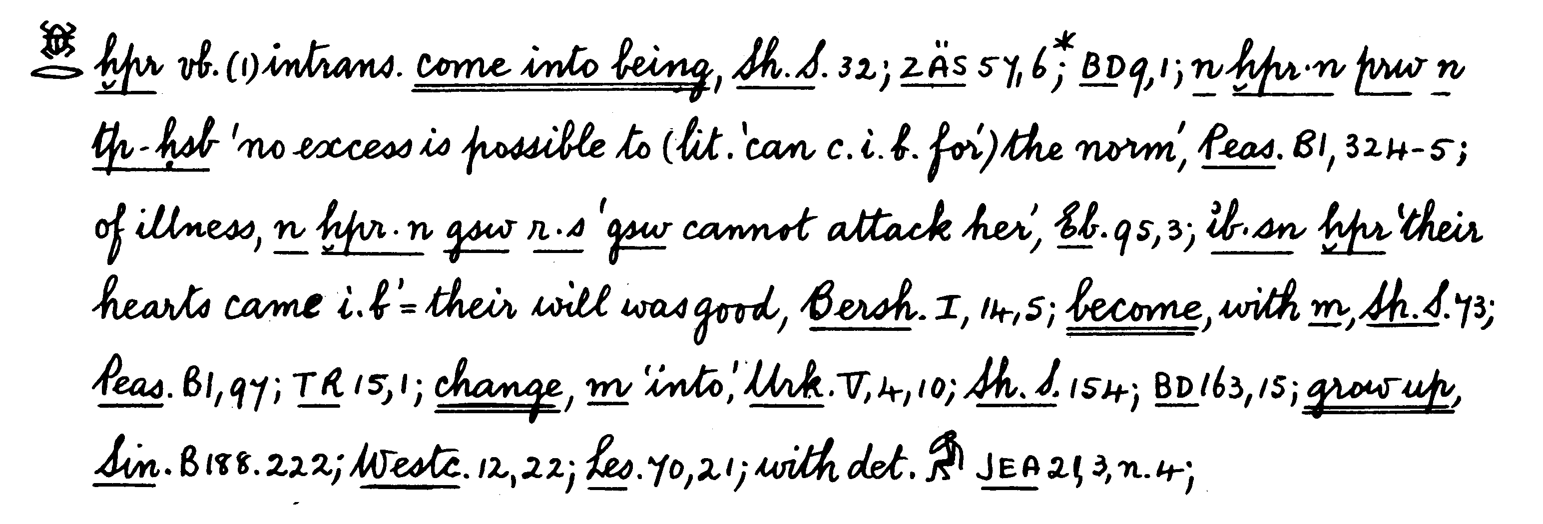 Several kings feature this verb in their throne name, for example: Tutankhamun="Nebkheperure" - Lord (or Full) of the coming-into-being (manifestations) of Ra, Thutmose III="Menkheperre" -"Eternal are the manifestatons of Ra"; and Amenhotep II="Aakheperure" -"Great are the Manifestations of Re".