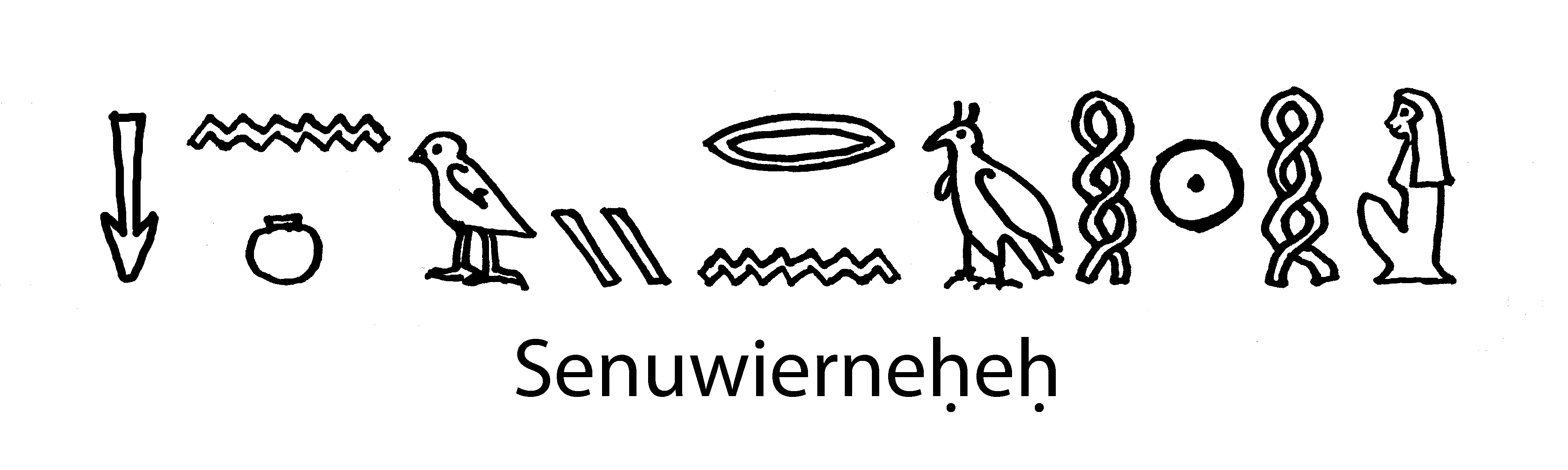 There's a lot wrong with my attempt, so... (Edited 10:01pm, May 29, 2015. I got doctorate level help in putting this name into glyphs. :) ) I had the 'neheh' part right, a short version of neheh, but one the ancients would have understood. The Senu part wasn't right, and I was missing the glyphs referring to 'my'. The full name, thanks to Bestekeni, is: